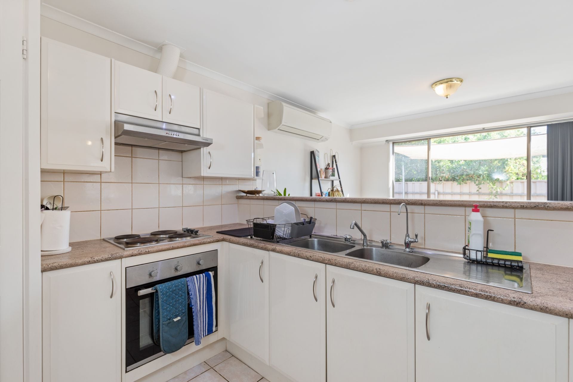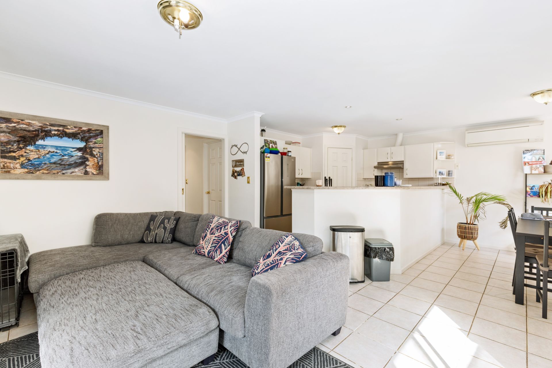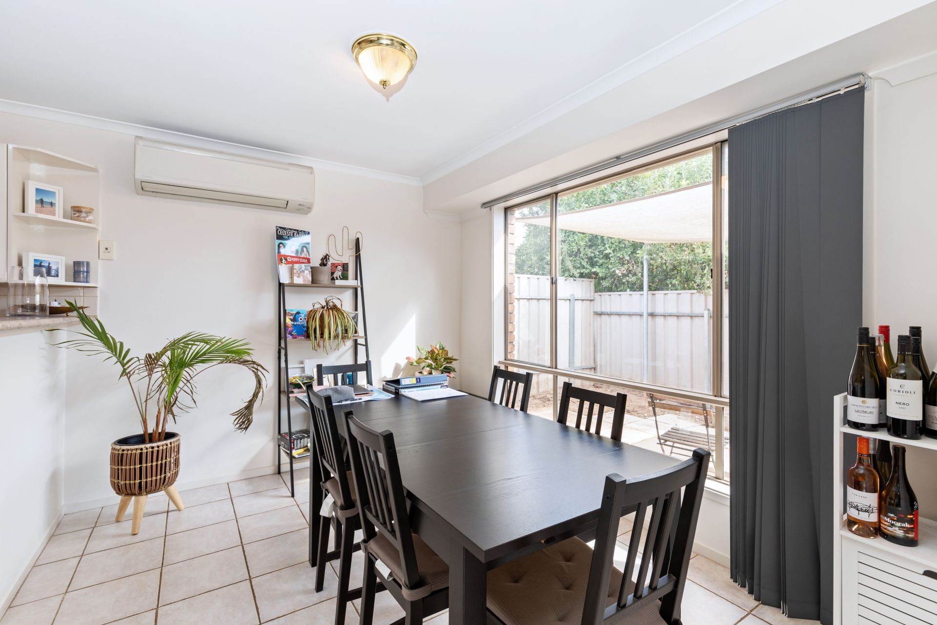 > light and airy open plan family / dining room with split system