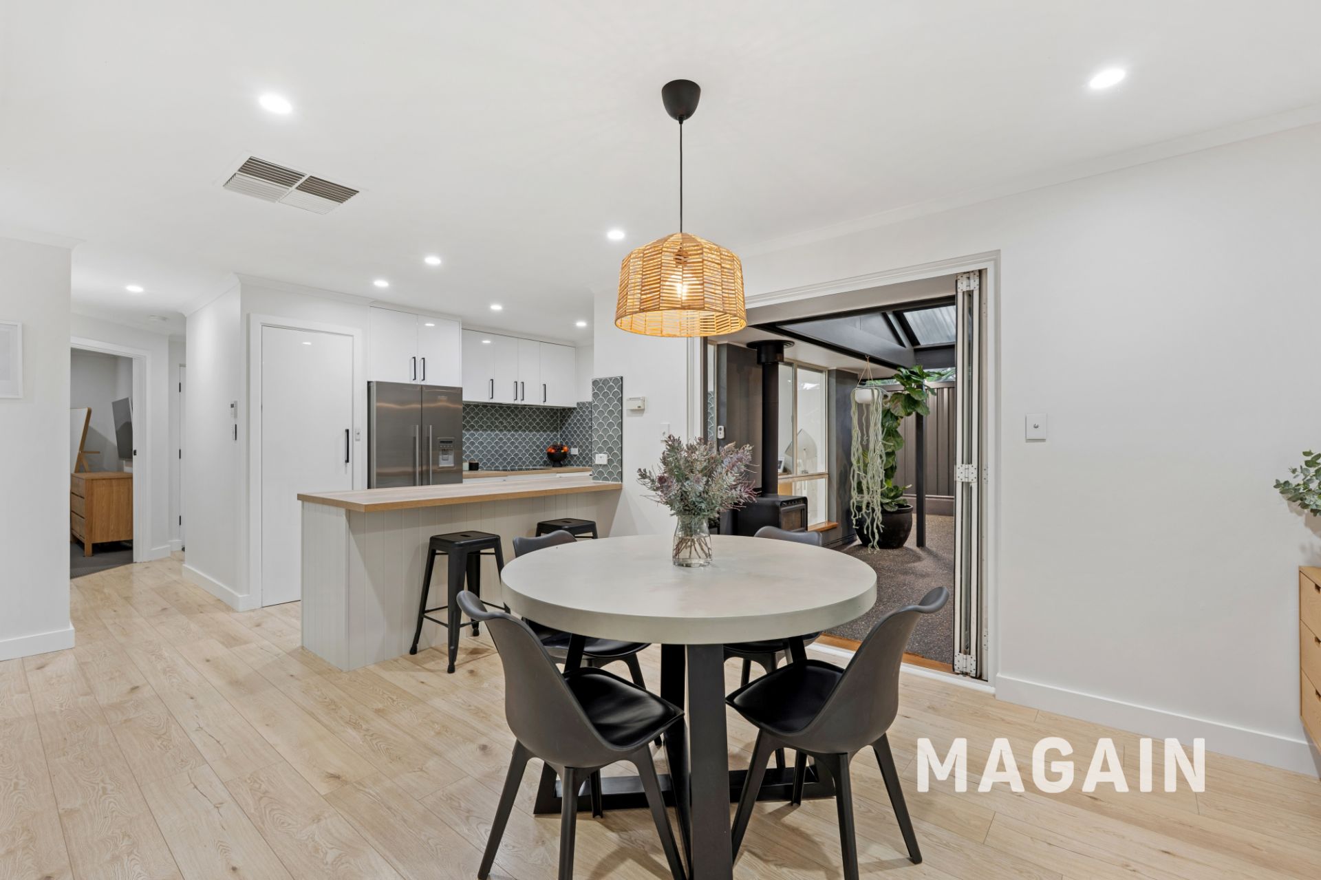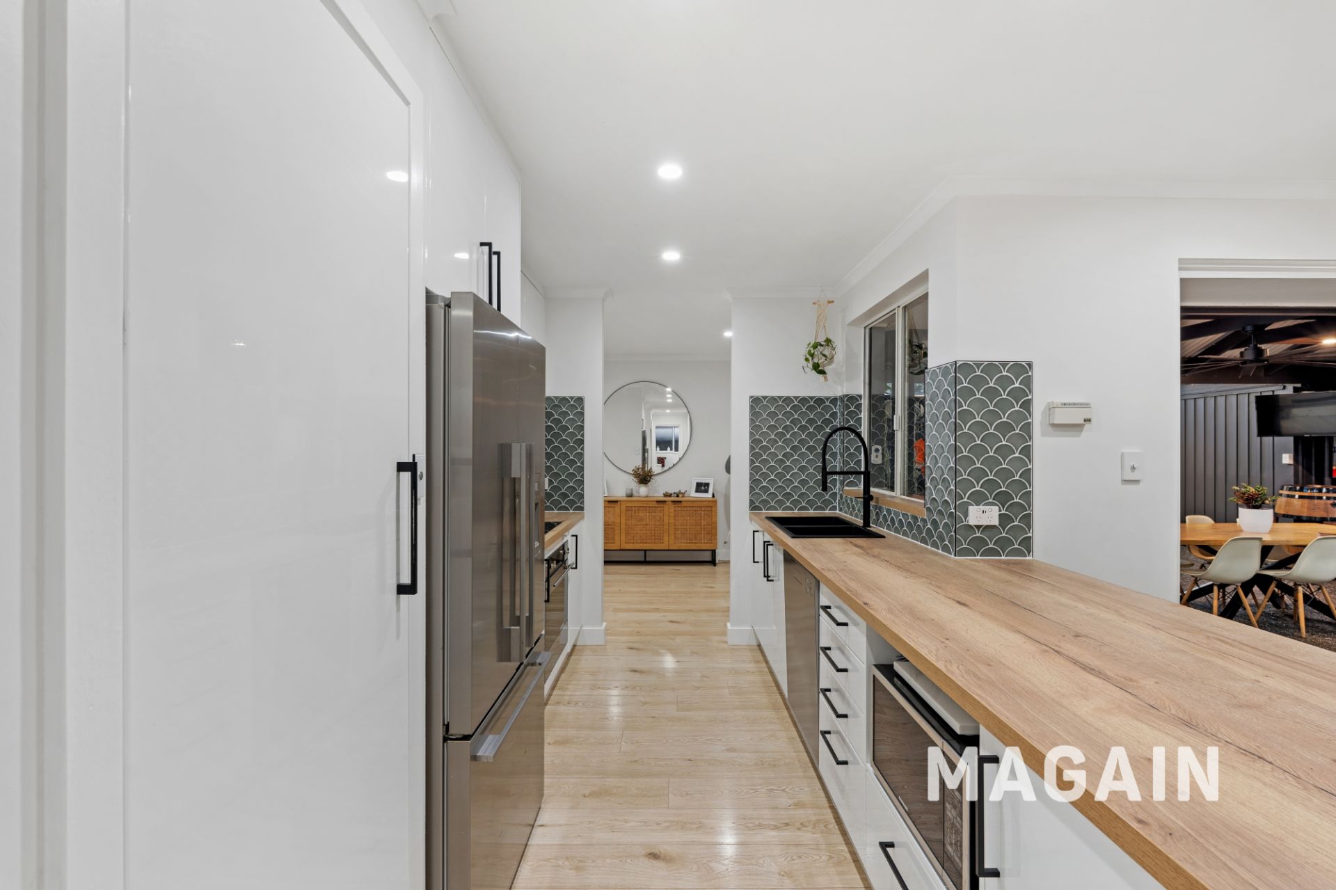 The recently renovated galley-style kitchen is a standout feature of the home. Showcasing timber benchtops, impressive tiled splashbacks, soft-close cabinetry and a generous walk-in pantry, it also includes a large double sink, stainless steel Smeg oven with induction cooktop and an under-mount rangehood - perfectly blending style and functionality. The kitchen overlooks the meals area, which could easily double as a second living zone, and connects seamlessly through double-glazed bi-fold doors to the outstanding outdoor entertaining space, ideal for when entertaining friends and/or family.