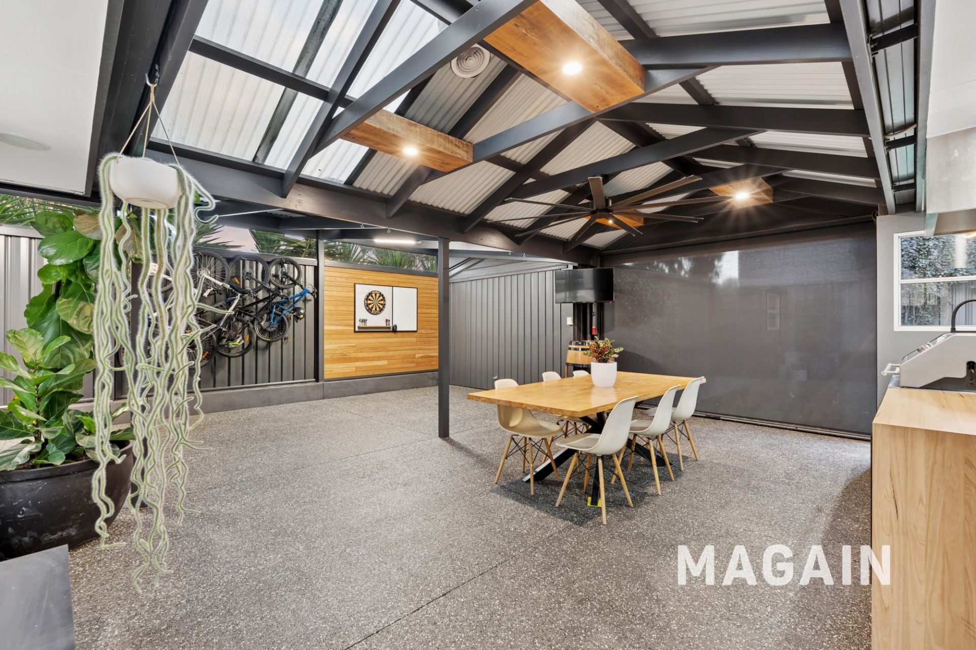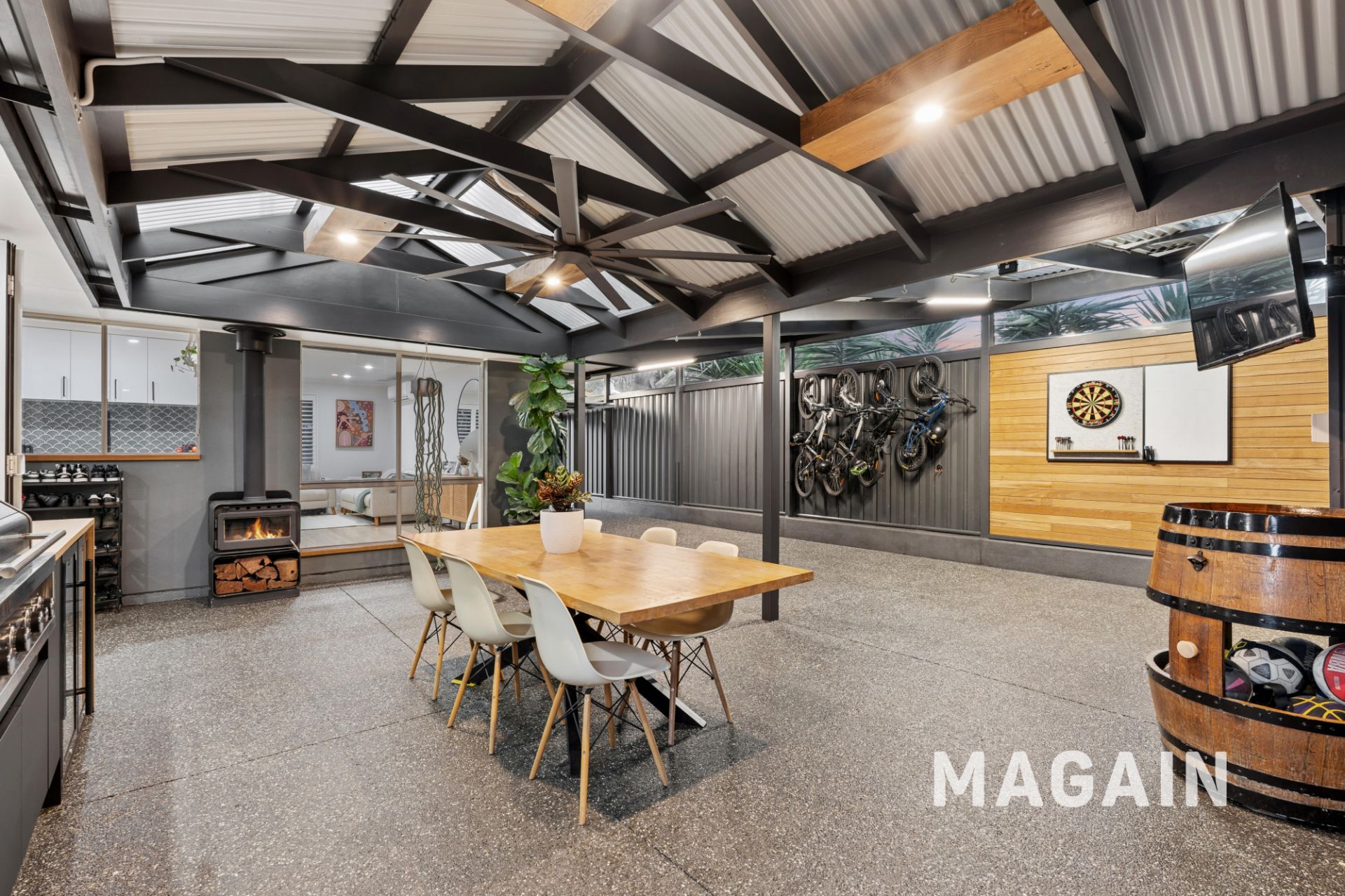 • Drive-through access to a powered garage/workshop