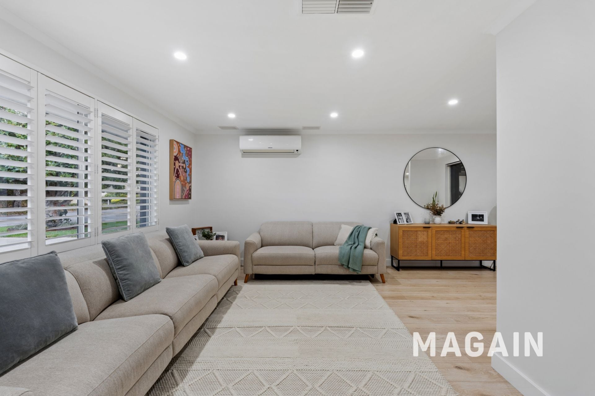 Step inside to a welcoming separate entry that flows into a formal L-shaped lounge and dining area, where a large picture window frames a beautiful outlook across the front yard. A split system air conditioner ensures year-round comfort in this inviting space.