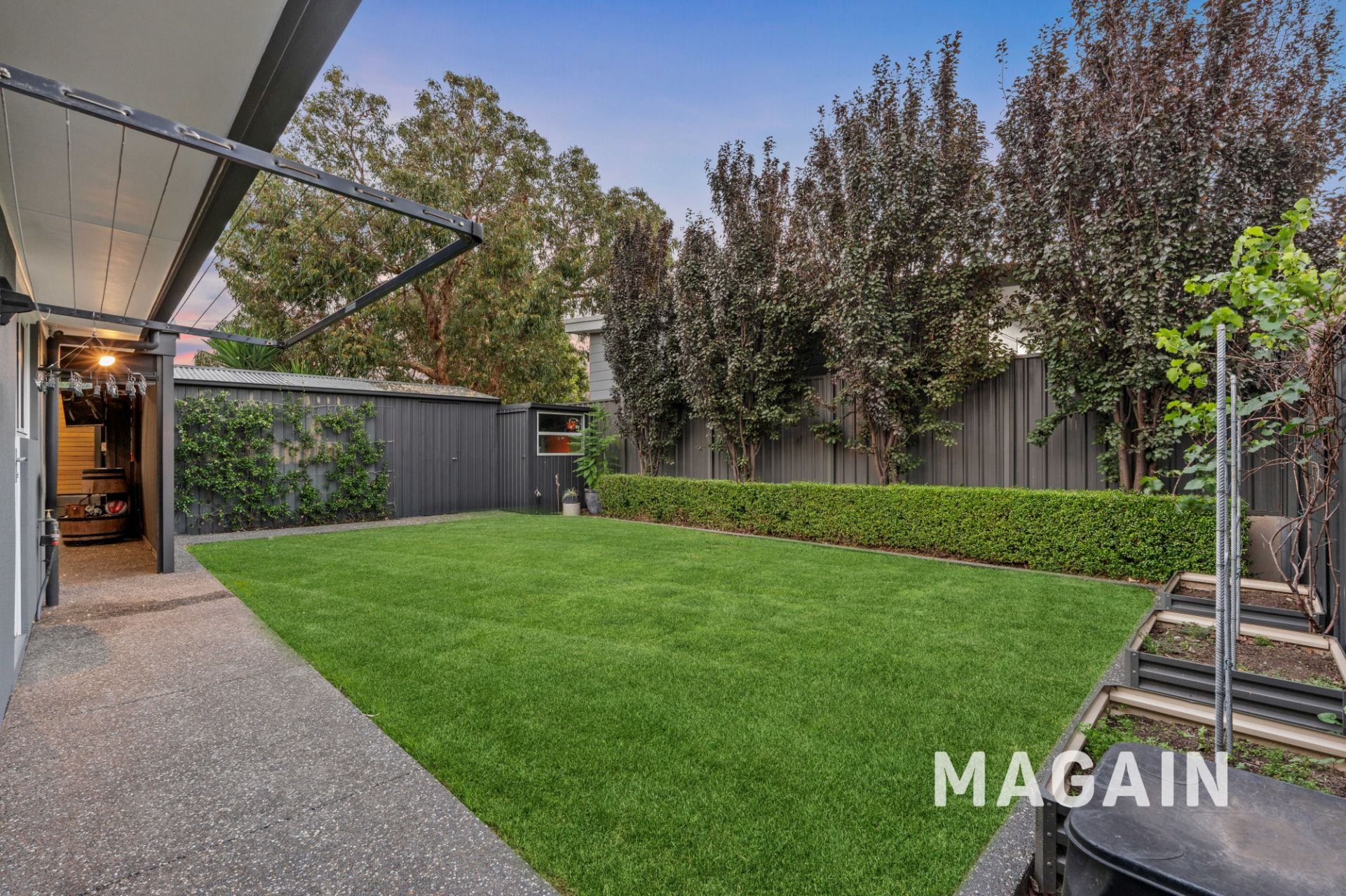 The enclosed carport is accessed via and automated panel lift door and provides extra secure parking and direct drive-thru access into a powered workshop/garage. There is a neat and tidy rear yard with a back lawn and the rear yard is very well fenced and private, ideal for kids and pets.