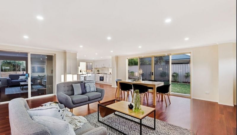 Additional features include a double garage with internal access, solar system, dual-zoned ducted reverse cycle air conditioning, gas temperature-controlled hot water, security system, and an electric fireplace to the central living area.