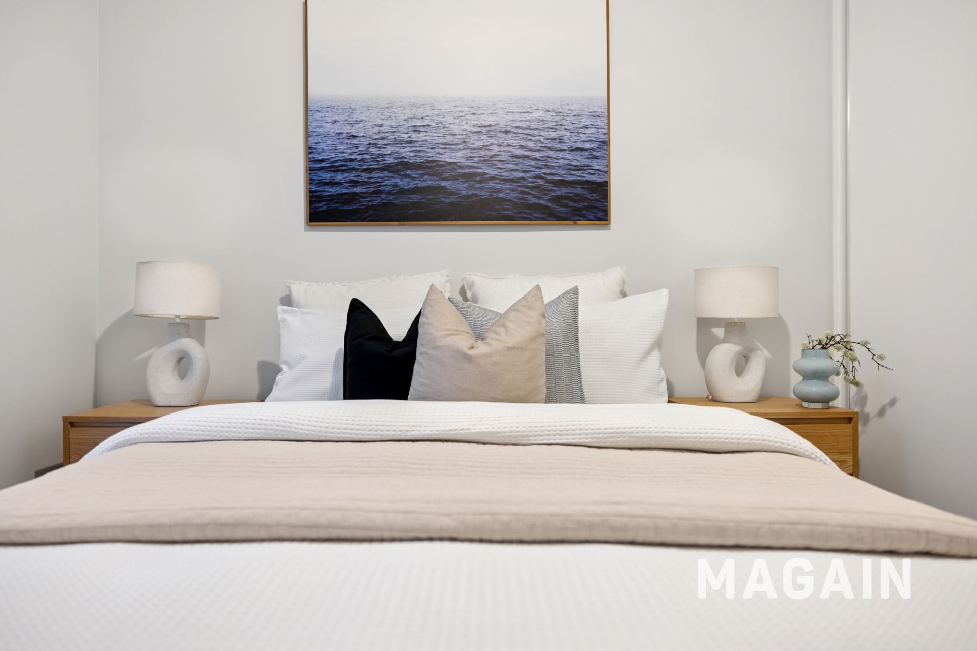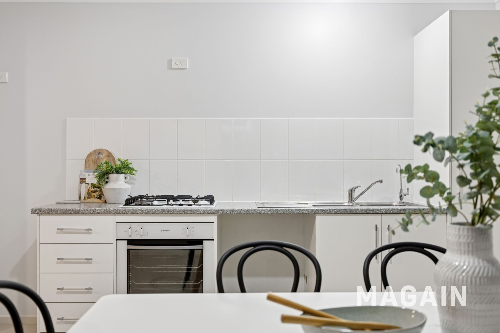 Step inside to an open plan kitchen, dining and living area designed for easy, low-maintenance living. The kitchen is equipped with a gas cooktop, electric oven, stainless steel double sink with filter tap, and practical cupboard and drawer storage. The adjoining lounge and dining space is comfortable year-round with a wall-mounted split system air conditioner and vertical blinds throughout.