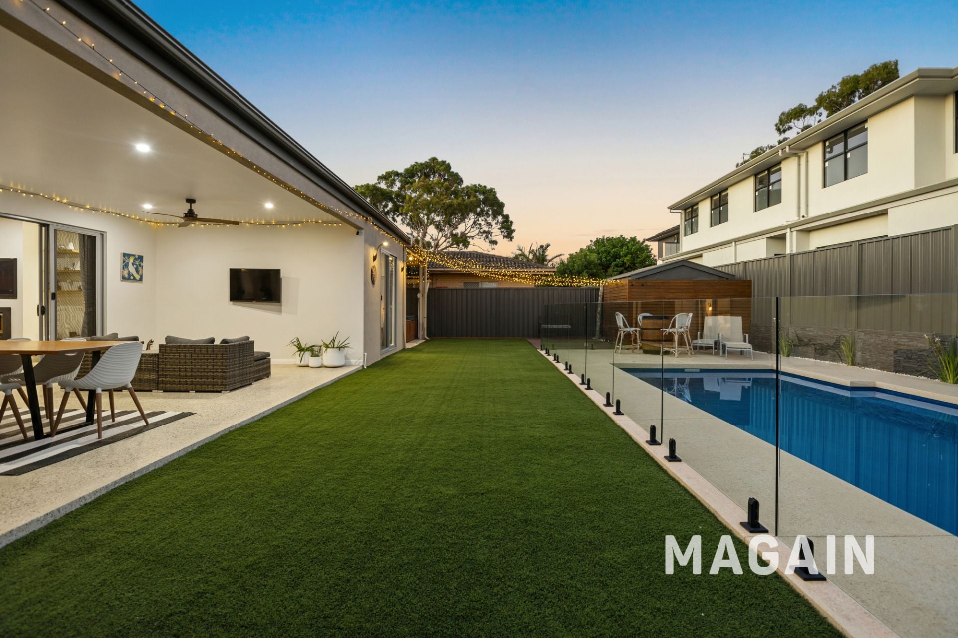 Step outside and the entertaining continues. A well sized alfresco area with its own kitchenette provides the perfect setting for gatherings with family and friends. The backyard offers a large stretch of artificial lawn, a second undercover entertaining space along the side of the home and a solar heated swimming pool. At the front of the property, a small deck and lawn area provides yet, another relaxing space where parents can watch the kids play.