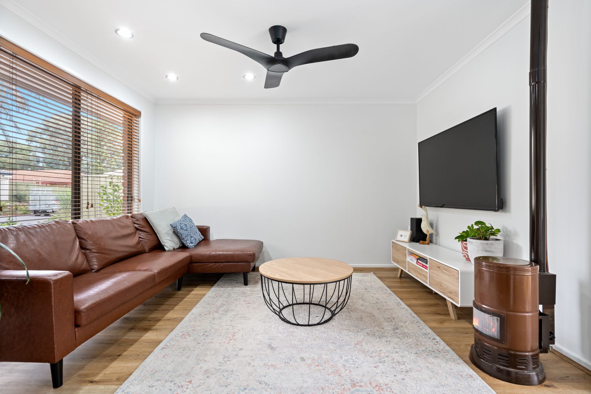 The inviting landscaped garden instantly draws you closer to the home. The home features a living area to the front of the home with beautiful flooring. The pot belly heater provides much needed heating for those chilly nights. The impressive kitchen offers sleek cabinets and ample bench space with adjacent meals area. The picture windows capture the views from the backyard and allows an abundance of natural light to flow through the space.
