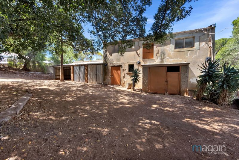 Adjacent the main residence is an original stables area which now consists of a carport, toolshed, laundry, auxiliary storage spaces with original mangers and lofted studio space which once kept hay for the horses.