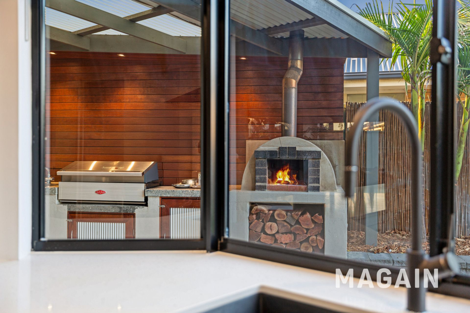Outdoor entertaining is where this home continues to excel-a stunning alfresco area with a soaring gabled roof, built-in outdoor kitchen, concrete benchtop, storage, BBQ and wood-fired pizza oven. The rear yard also offers a grassed area ideal for kids and pets, complete with a cubby house and sandpit.
