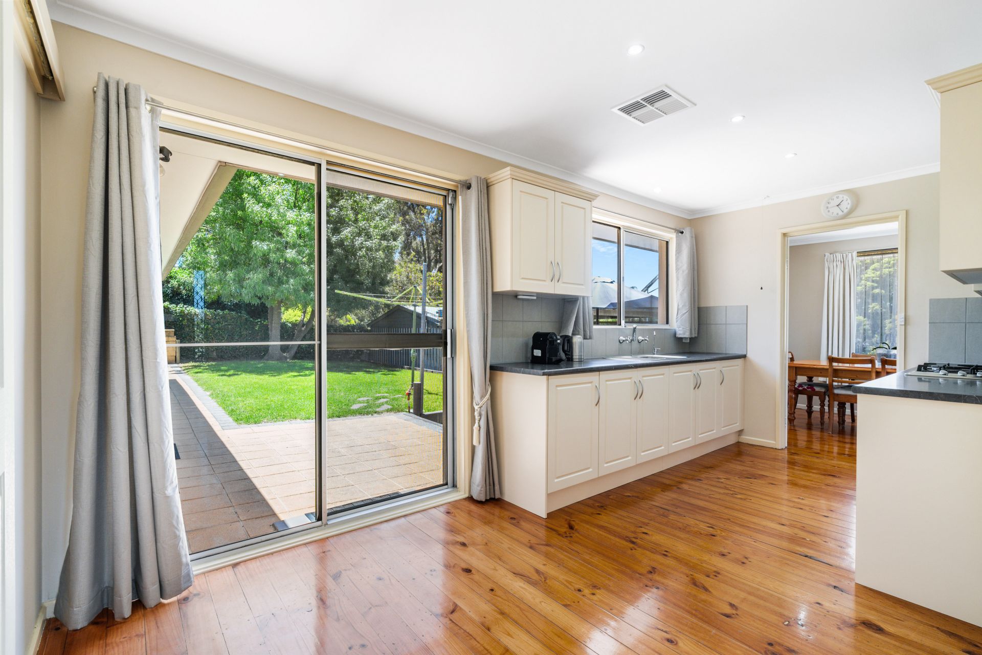 The heart of the home lies in the updated kitchen, which boasts modern amenities such as a pantry, an abundance of cupboards, a dishwasher, and a gas cooktop. The kitchen effortlessly transitions into a casual meals area, fostering a cosy and functional environment for daily gatherings.
