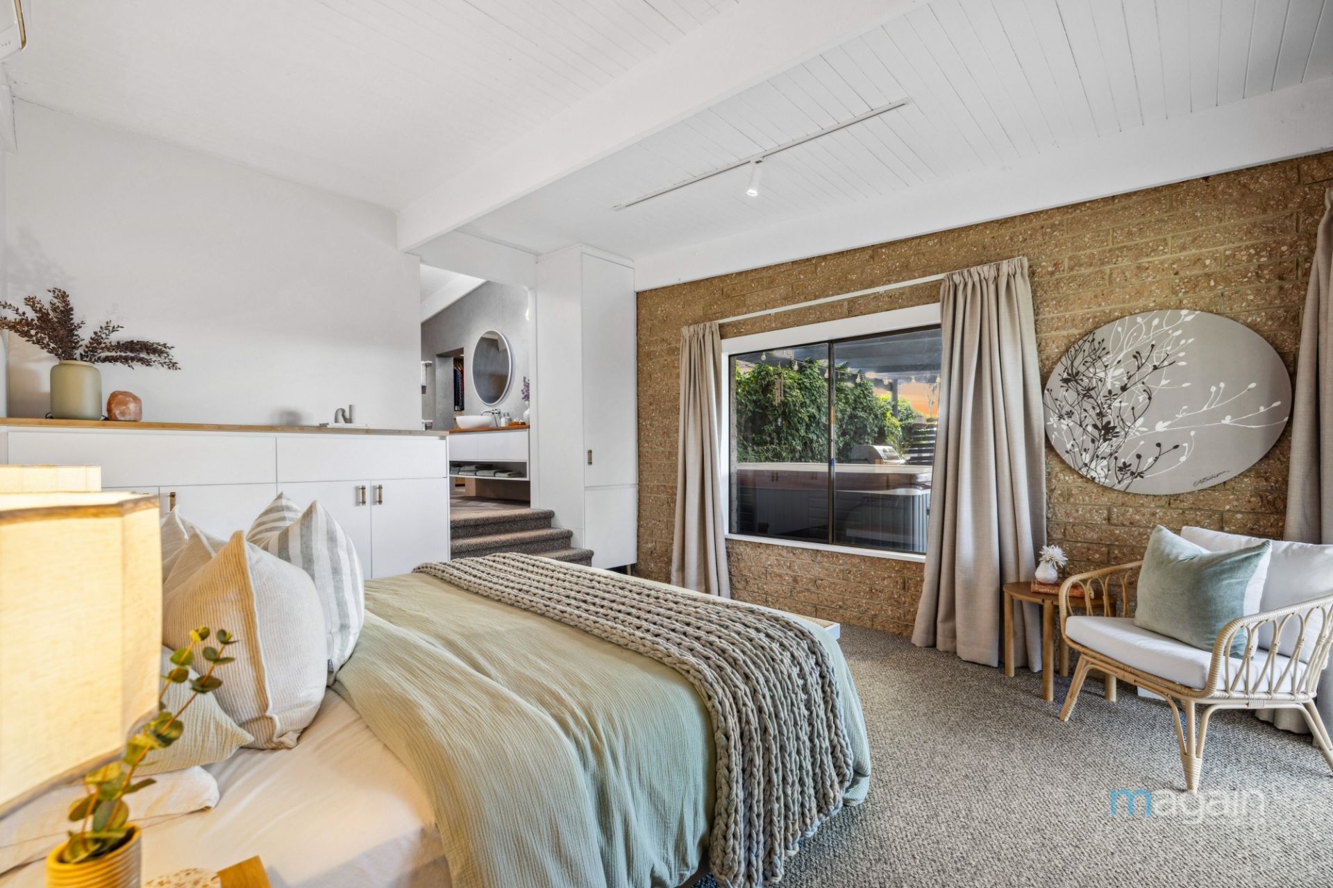 One of the most compelling features of this home is the main bedroom suite. Located privately at the rear/Western of the property,. The split-level bedroom is designed to take full advantage of the stunning views. Step up into the luxurious ensuite, complete with venetian plaster render and heated flooring, a freestanding bathtub, a large shower alcove, floating vanity, and a large walk-in robe. Every detail has been carefully crafted to create a luxurious and private space.