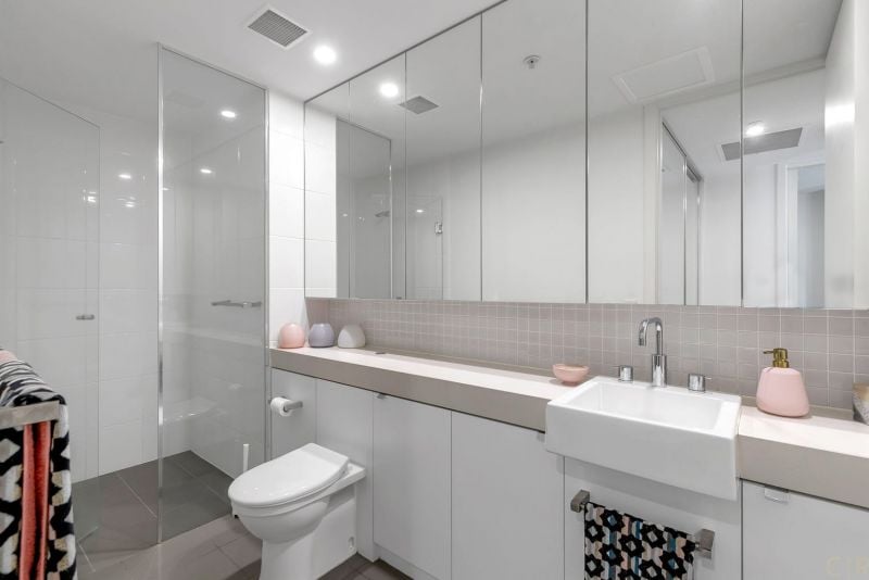 - Spacious modern bathroom with ample storage