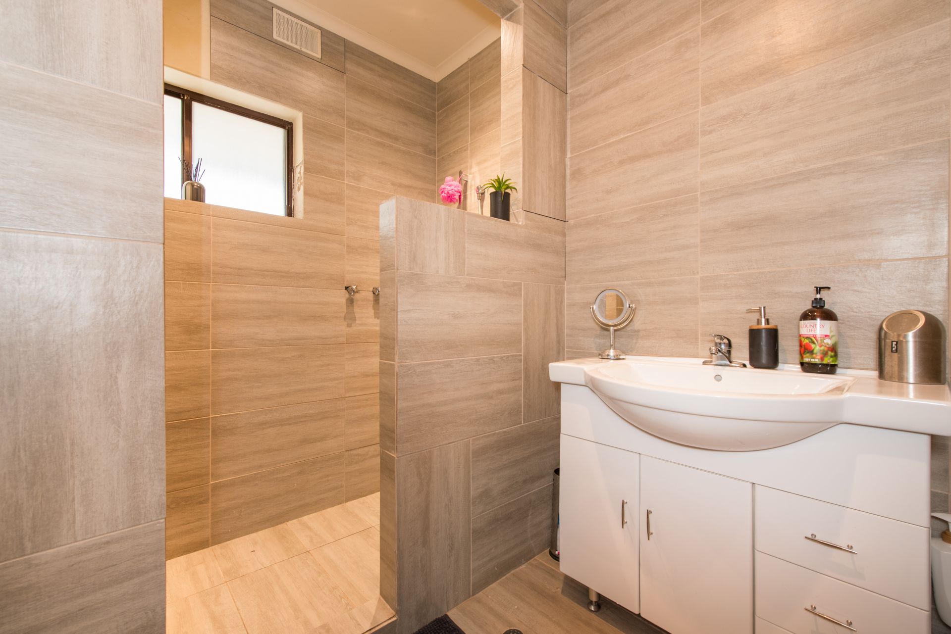 This charming 3 bedroom house has a renovated modern bathroom.