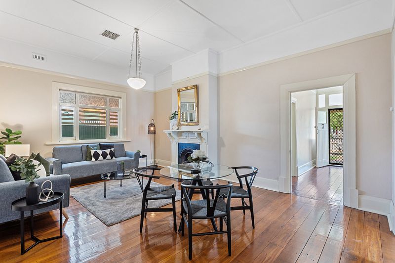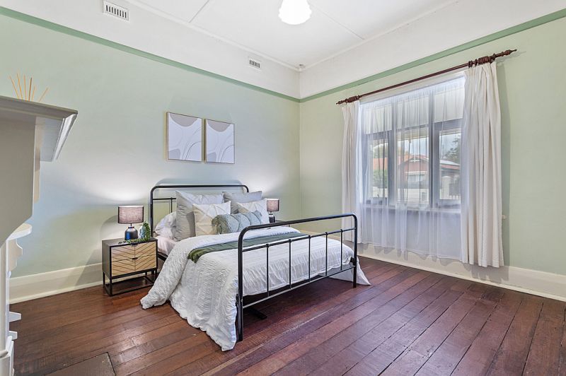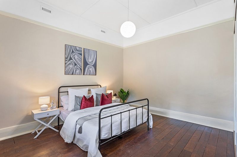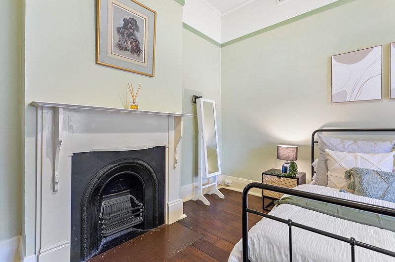 Radiating irresistible warmth upon entry with soaring high ceilings, a wide entrance hall, Baltic timber floors and romantic open fireplaces these are just some of the quintessential features this classic, character residence has to offer. Leading off the hallway are three king sized bedrooms all with built in wardrobes and a spacious casual living and dining room. The living and master both feature the original fireplaces, which create the most inviting and warm ambience throughout the cooler months.
