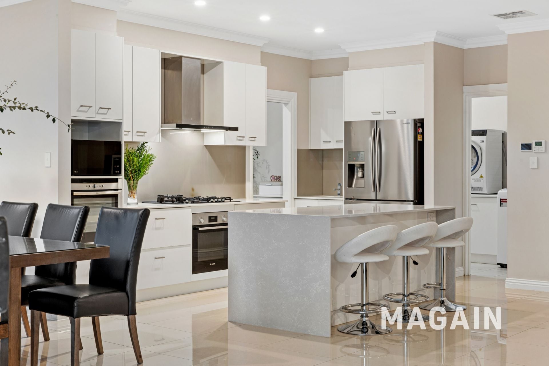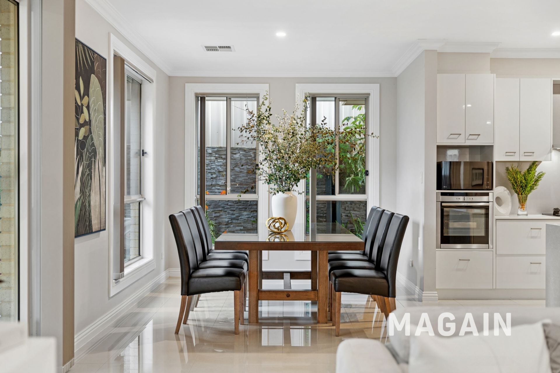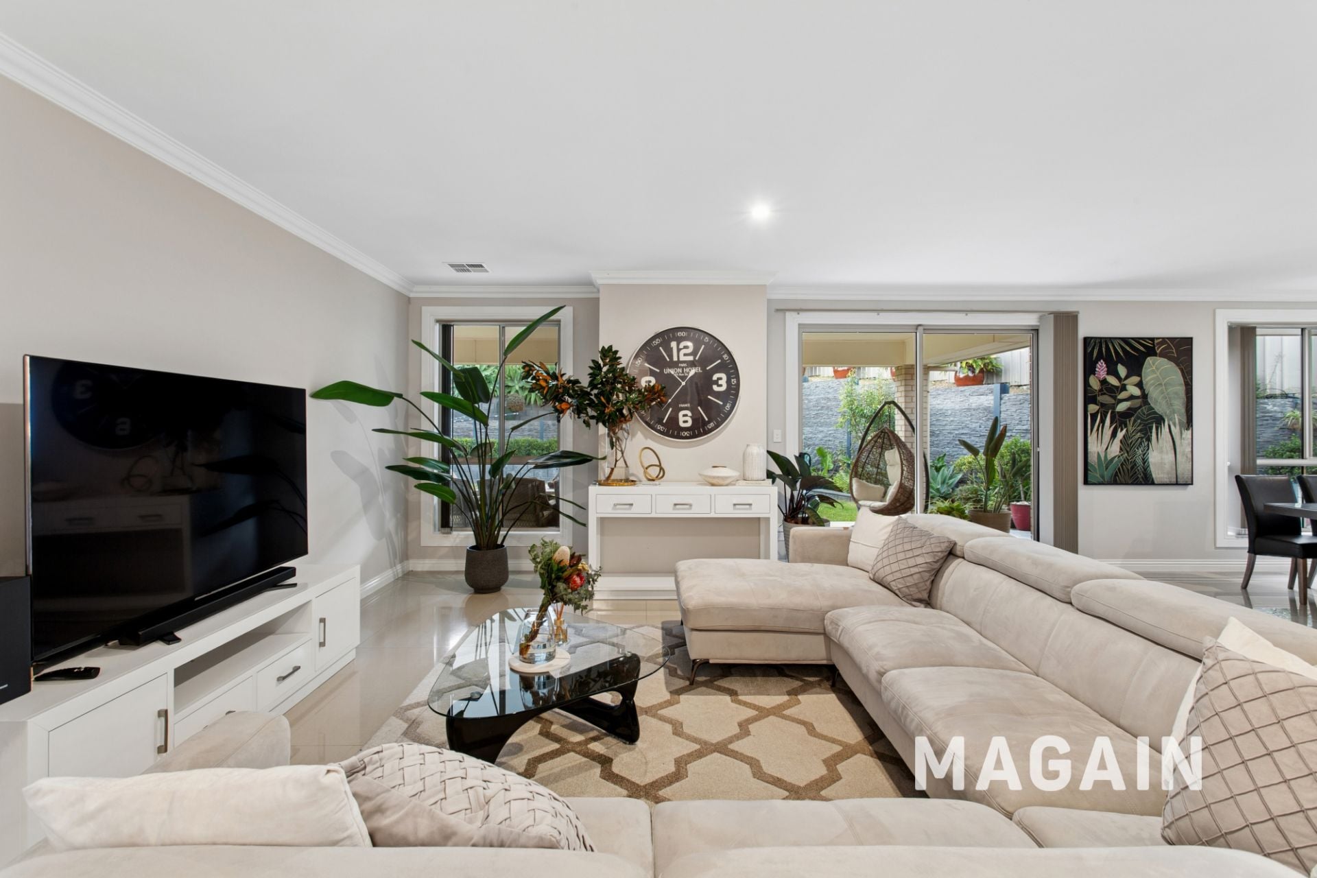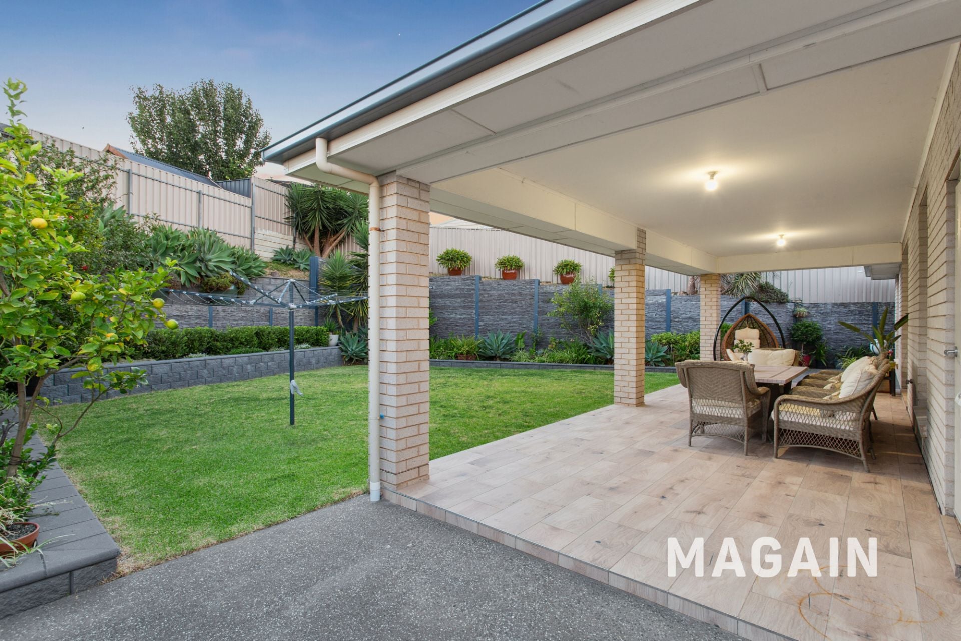 Outside, the low-maintenance and secure backyard offers endless possibilities, featuring a substantial alfresco area under the main roof, expansive lawn space for children and pets, and expertly designed retaining walls.