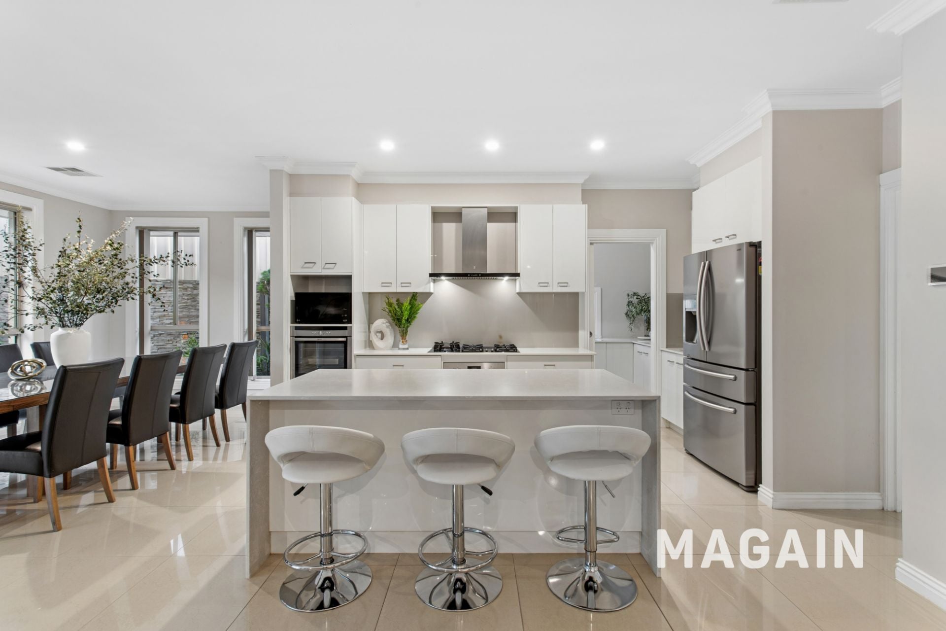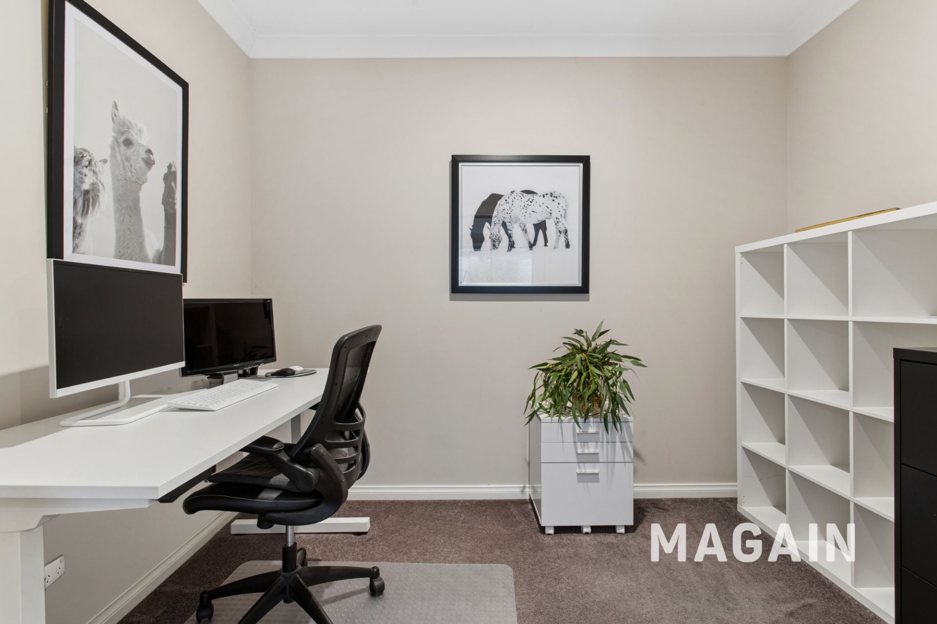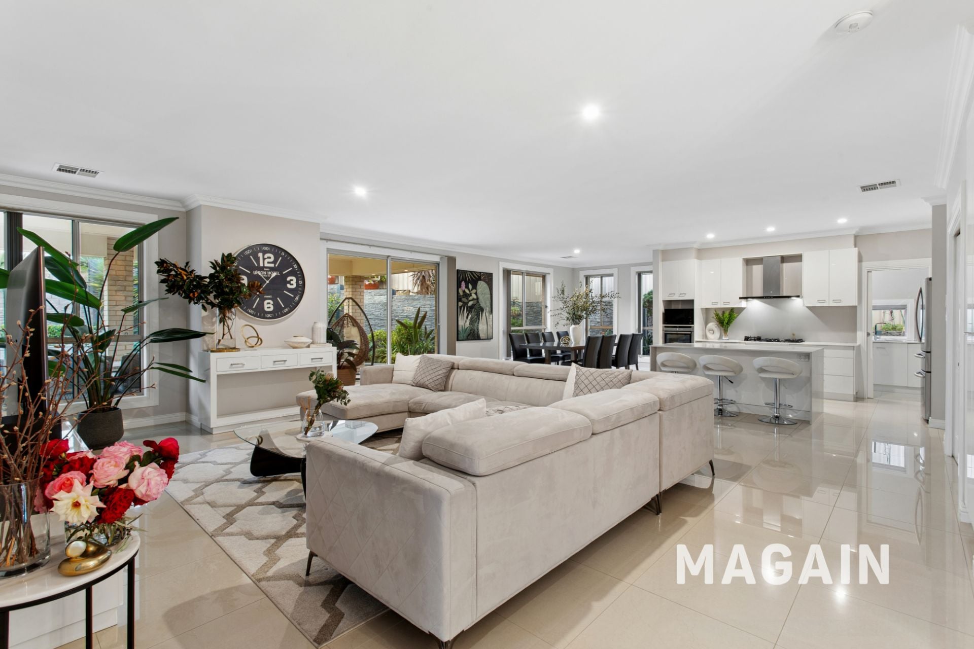 Outside, the low-maintenance and secure backyard offers endless possibilities, featuring a substantial alfresco area under the main roof, expansive lawn space for children and pets, and expertly designed retaining walls.