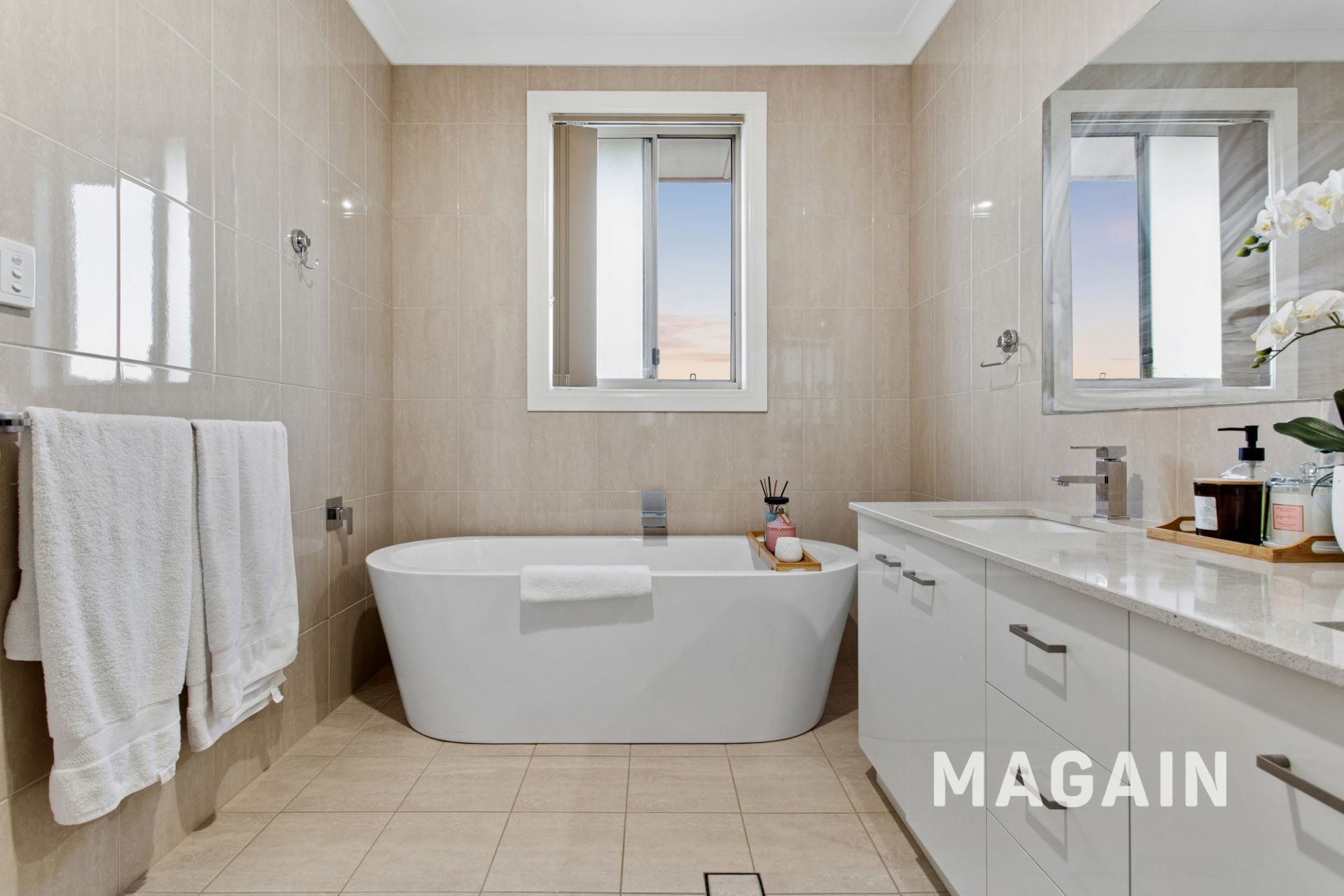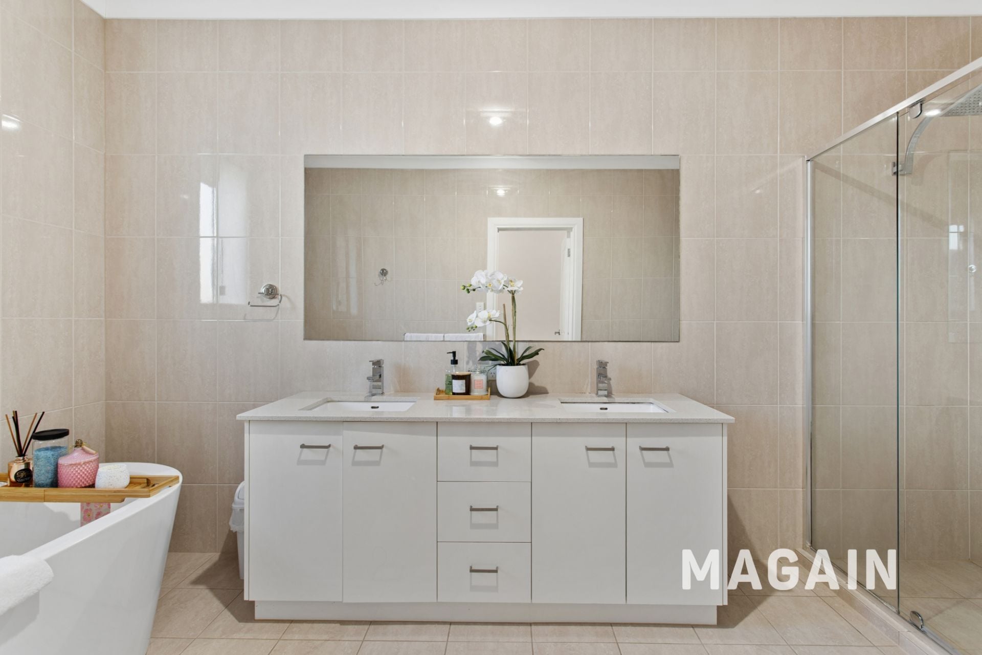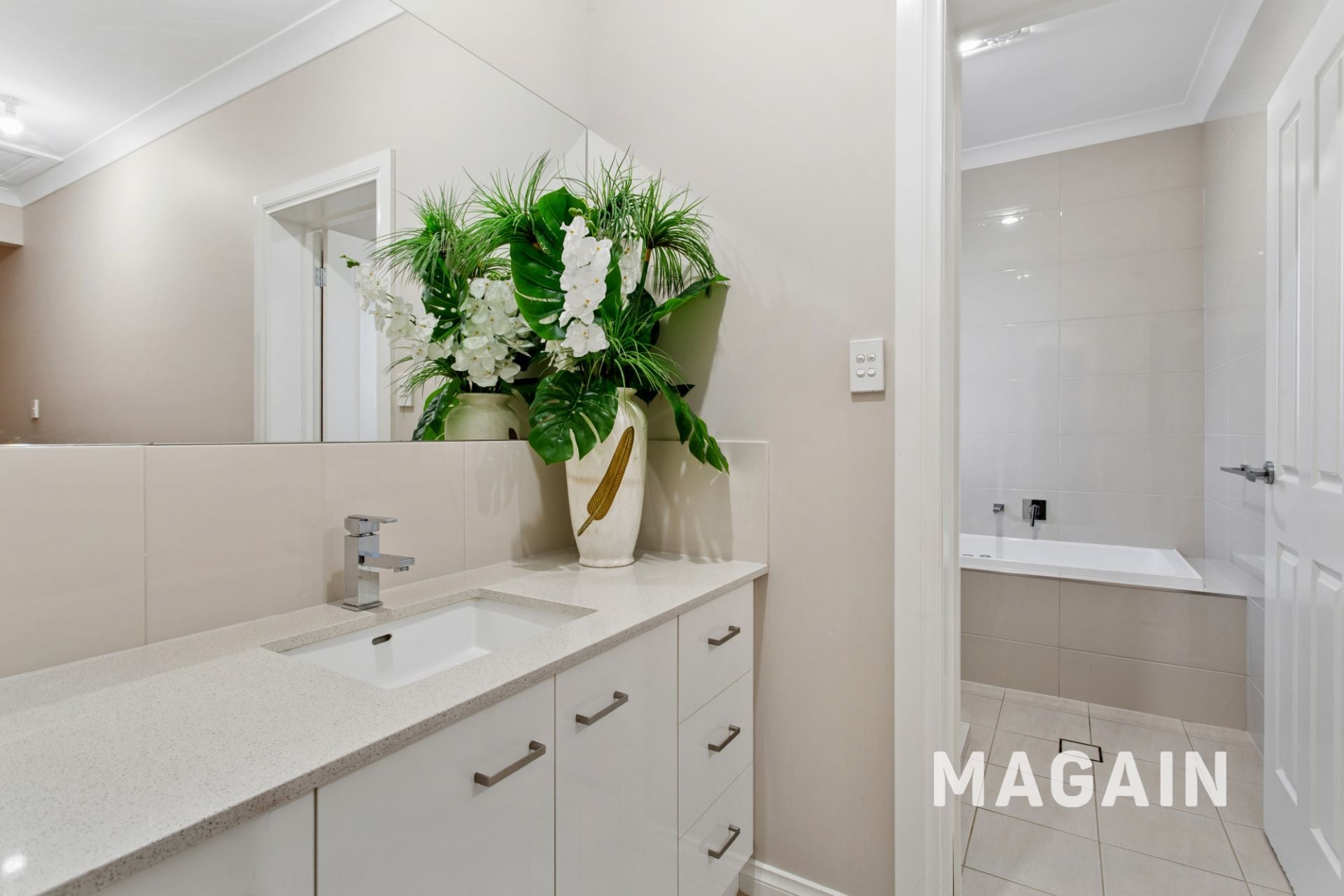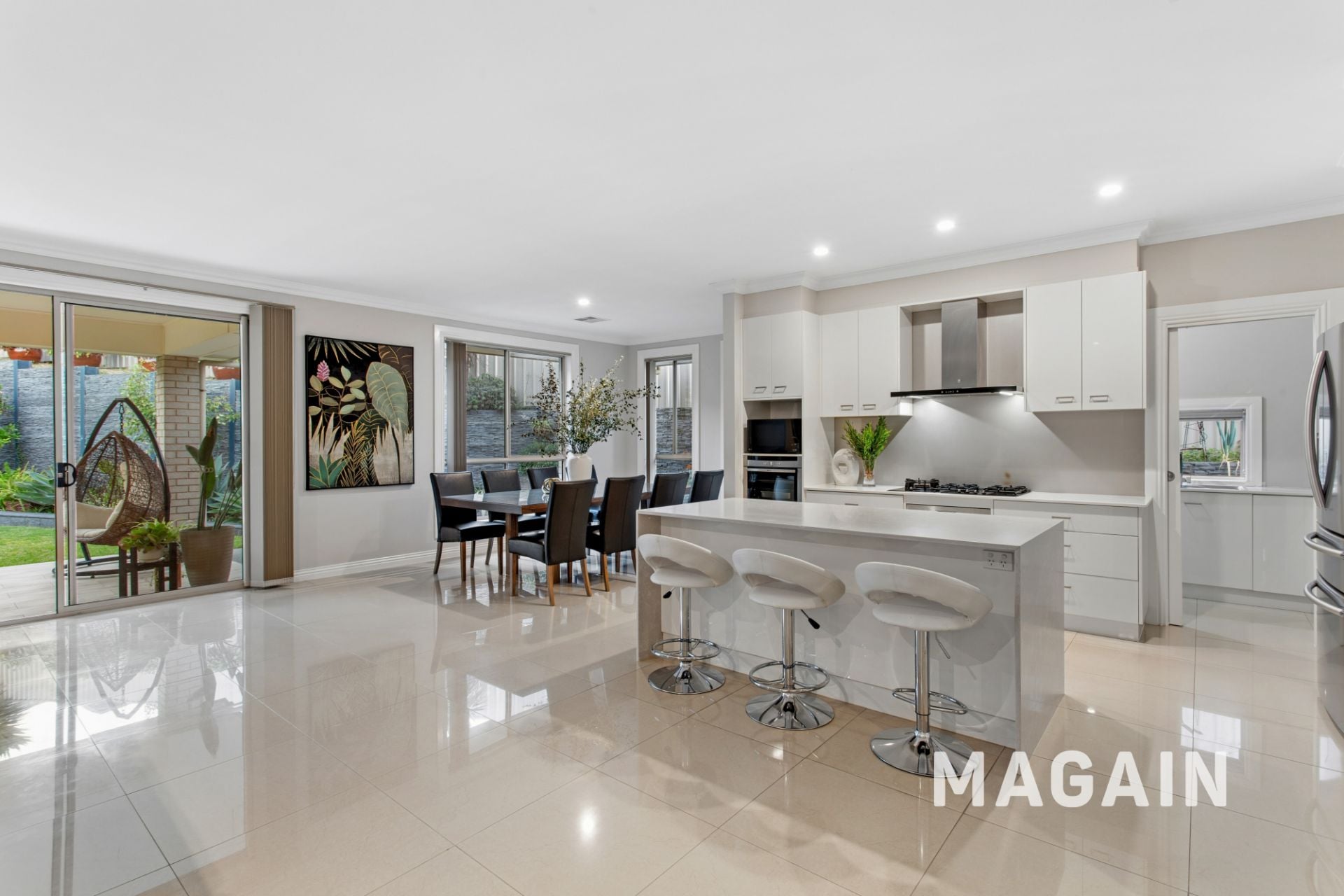 Outside, the low-maintenance and secure backyard offers endless possibilities, featuring a substantial alfresco area under the main roof, expansive lawn space for children and pets, and expertly designed retaining walls.