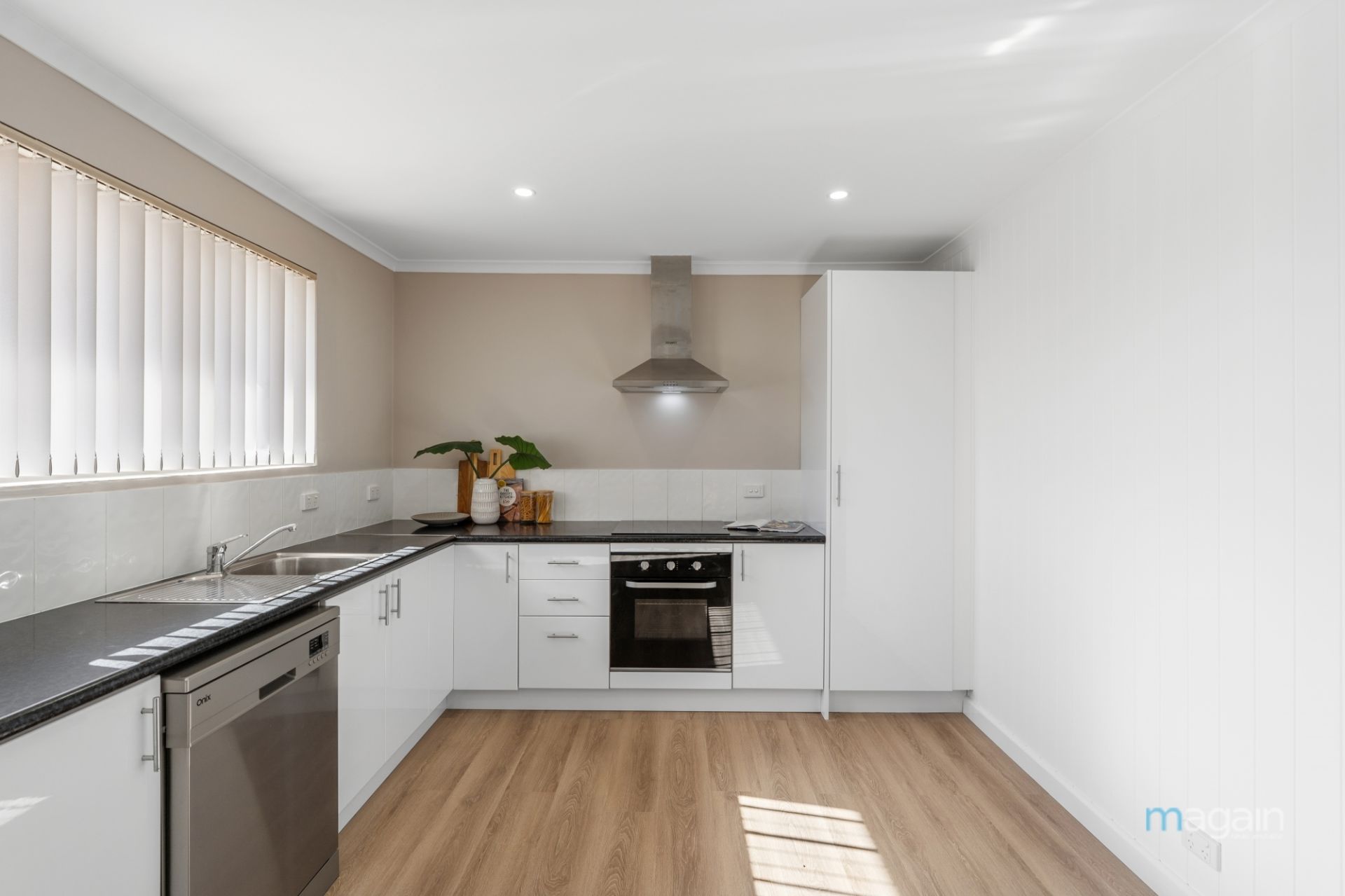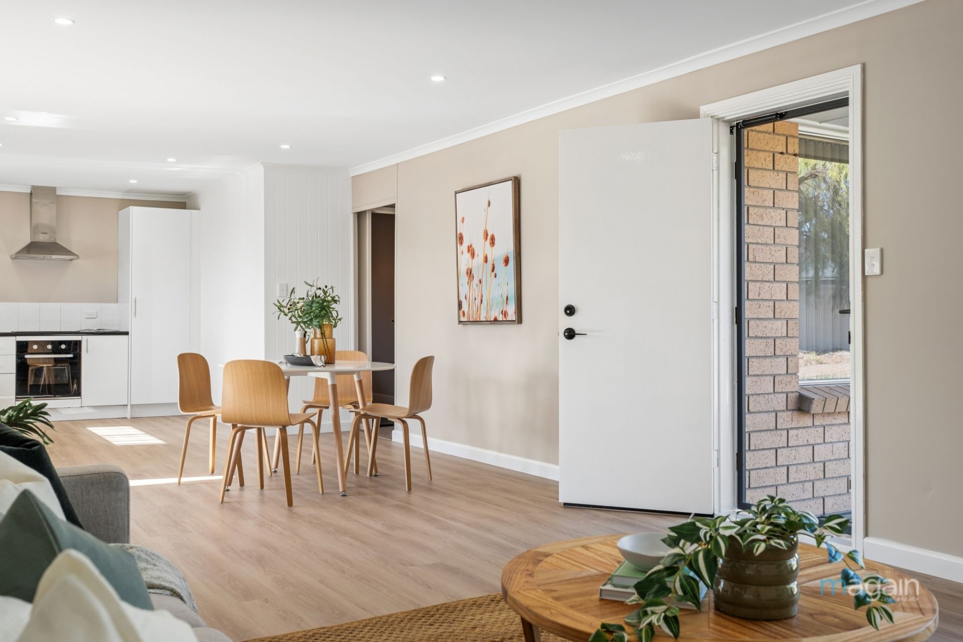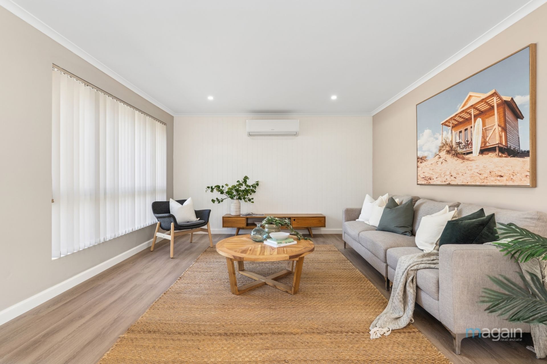 Step inside to find timber-look flooring throughout the main living areas, giving the home a neat and easy-care feel. The spacious lounge room features reverse-cycle split system air-conditioning for year-round comfort, while the functional kitchen offers plenty of bench space, a dishwasher, and an adjoining dining area for family meals. The main bedroom includes its own reverse-cycle split system for added comfort, and the home is serviced by a centrally located bathroom with a separate toilet and laundry.