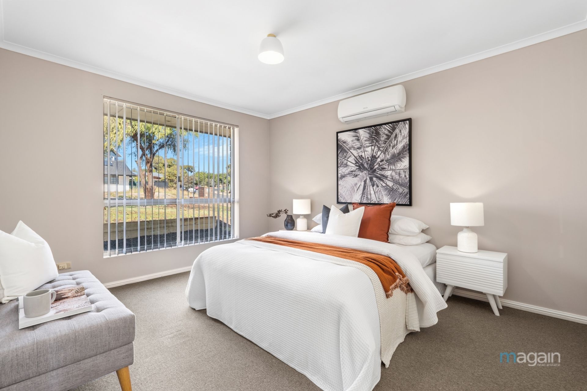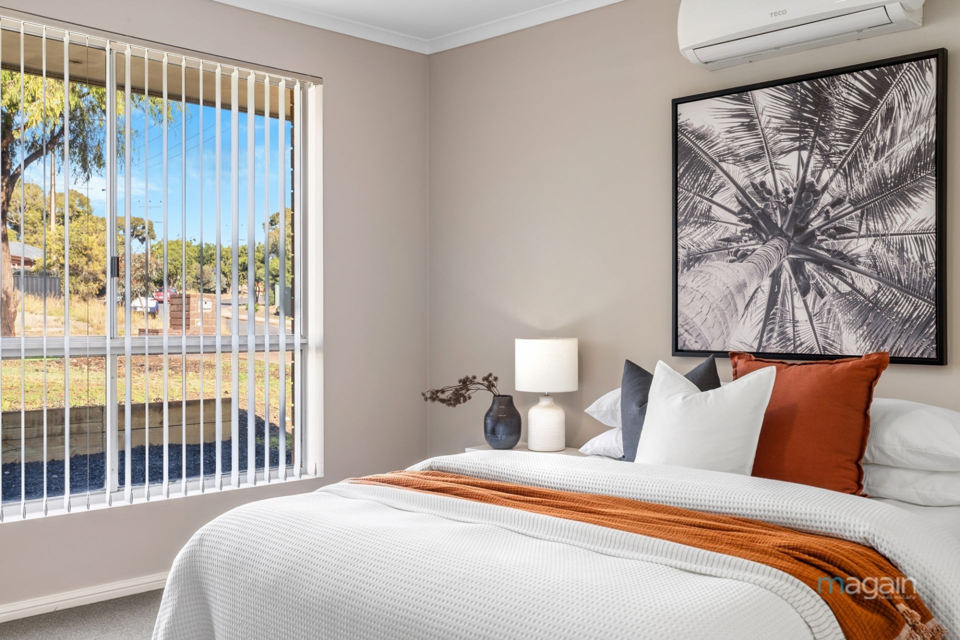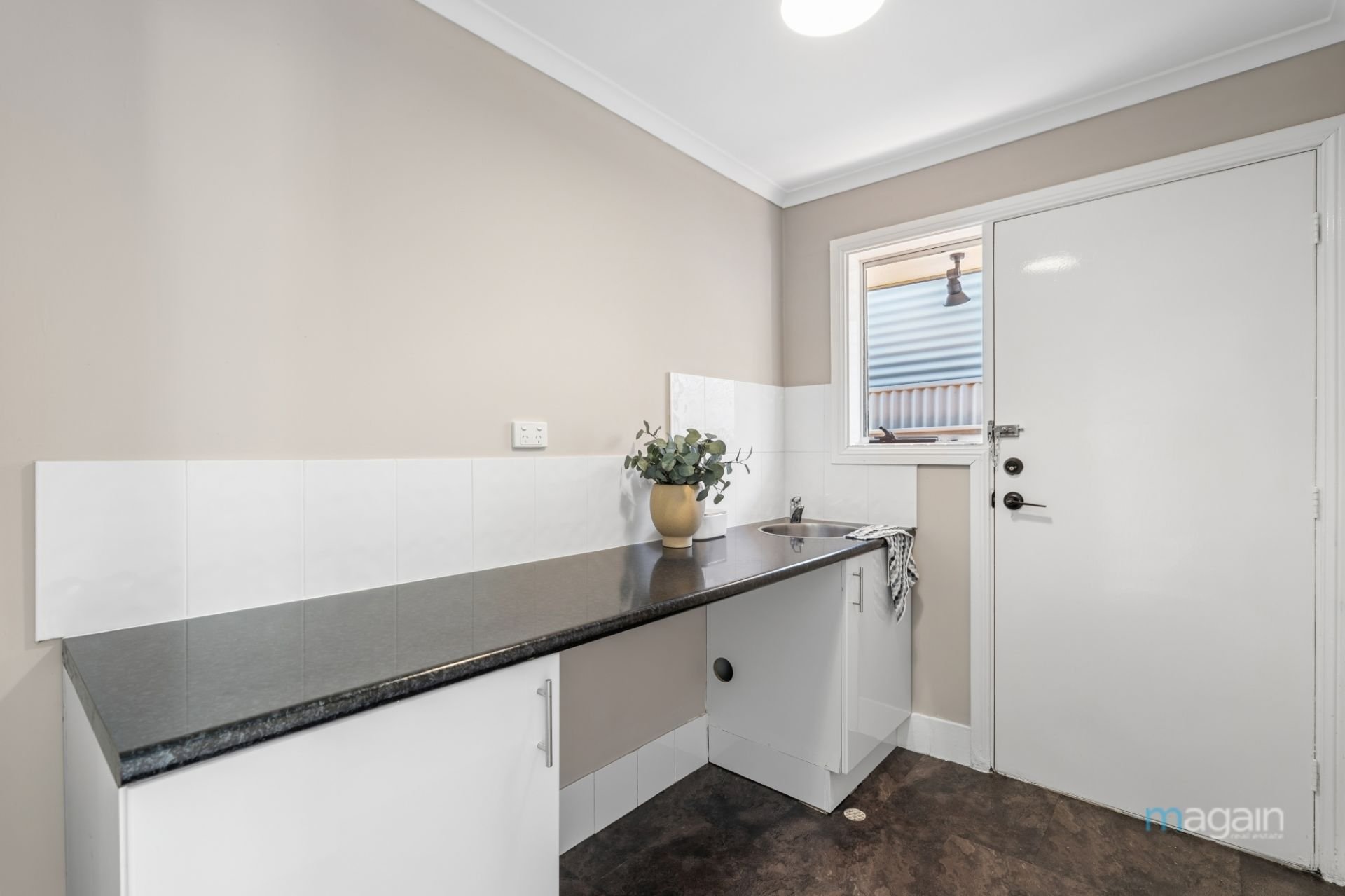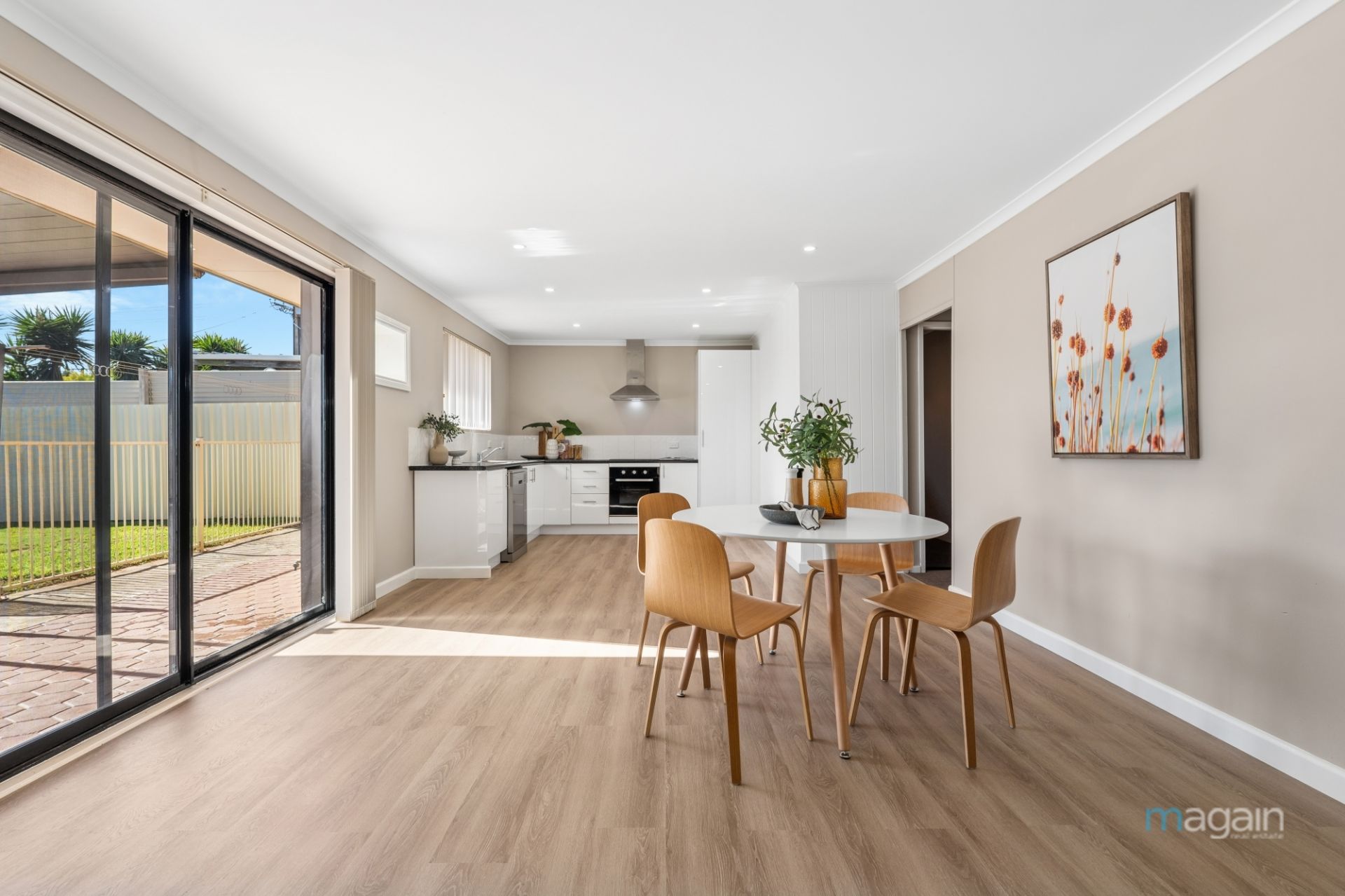 Step inside to find timber-look flooring throughout the main living areas, giving the home a neat and easy-care feel. The spacious lounge room features reverse-cycle split system air-conditioning for year-round comfort, while the functional kitchen offers plenty of bench space, a dishwasher, and an adjoining dining area for family meals. The main bedroom includes its own reverse-cycle split system for added comfort, and the home is serviced by a centrally located bathroom with a separate toilet and laundry.