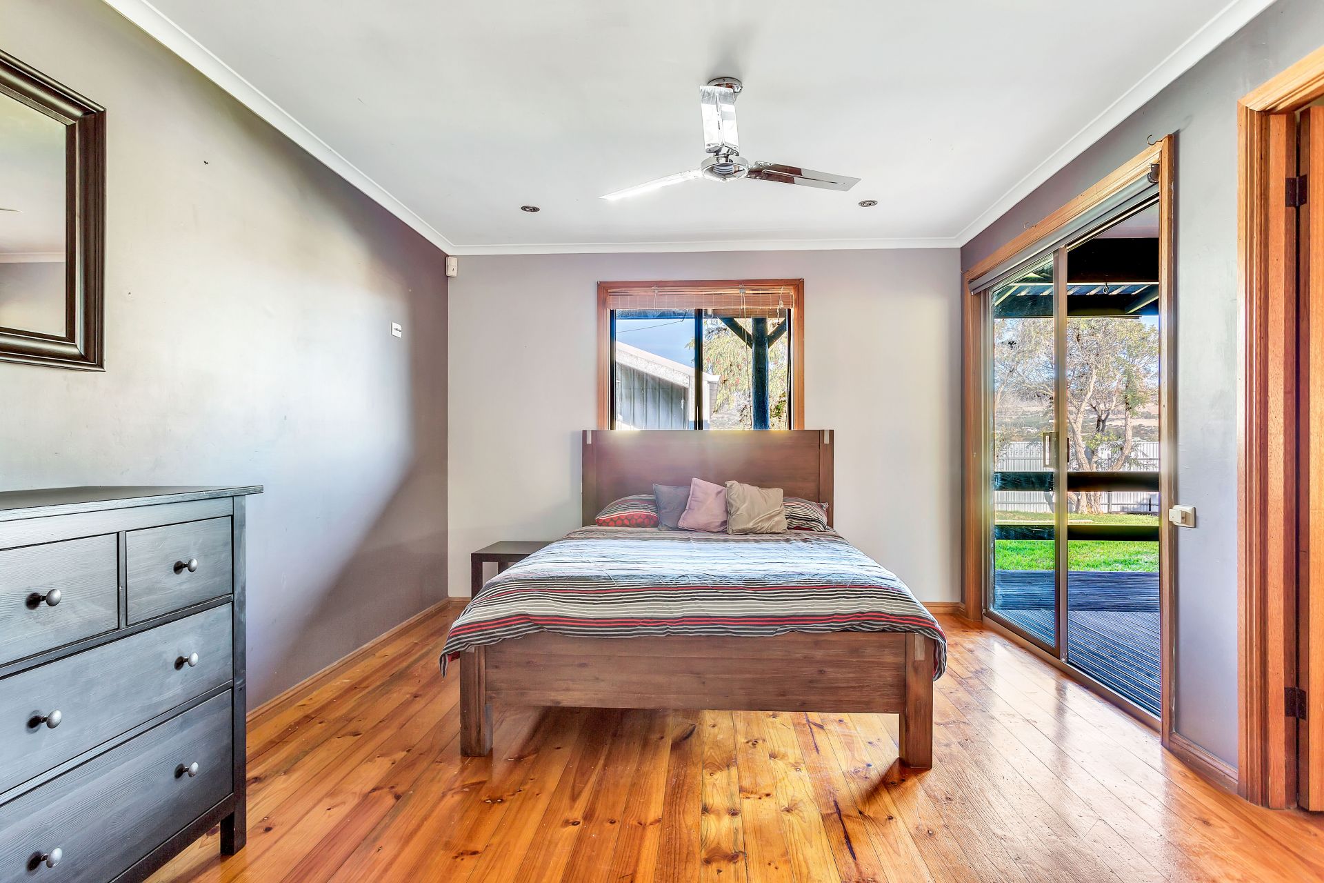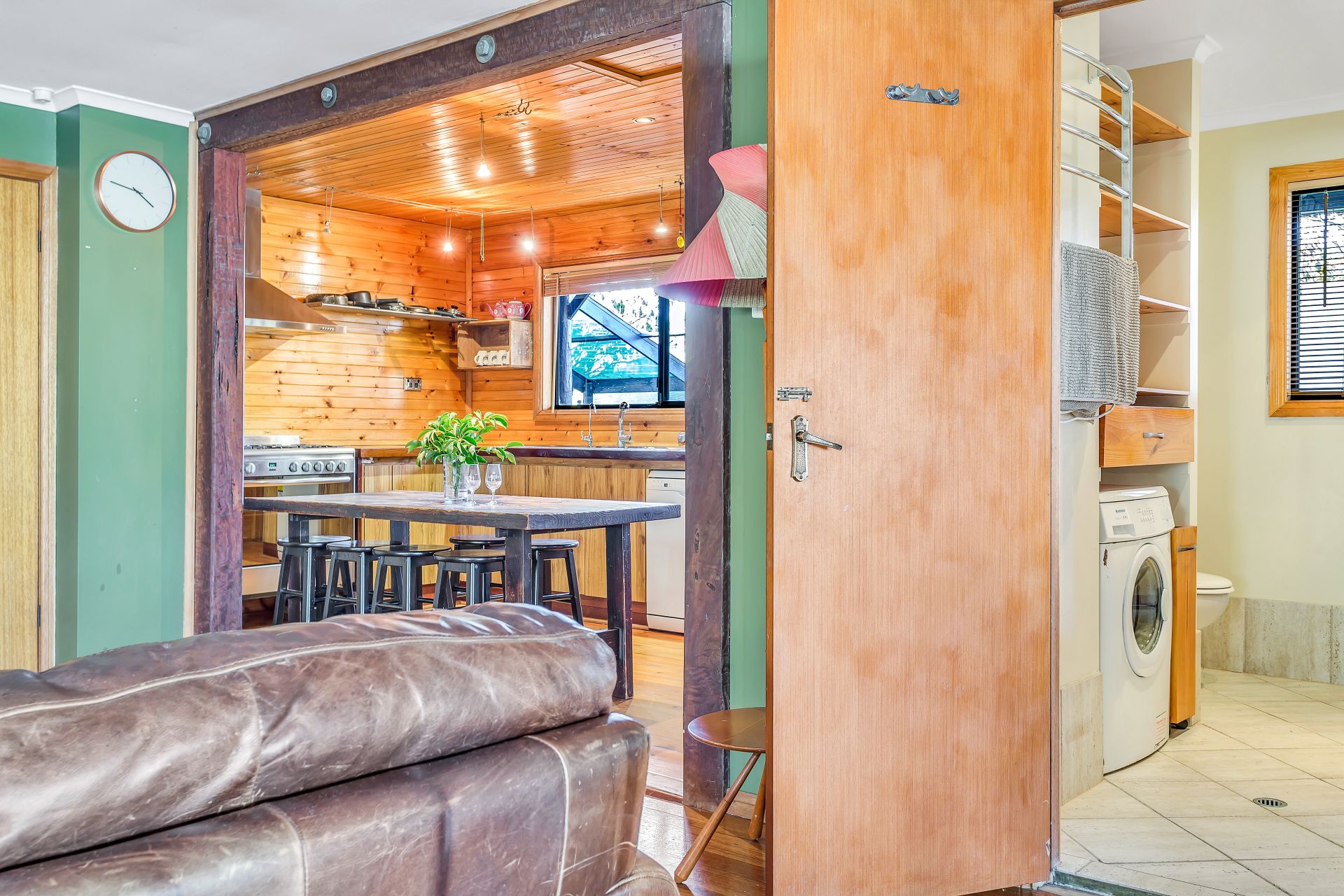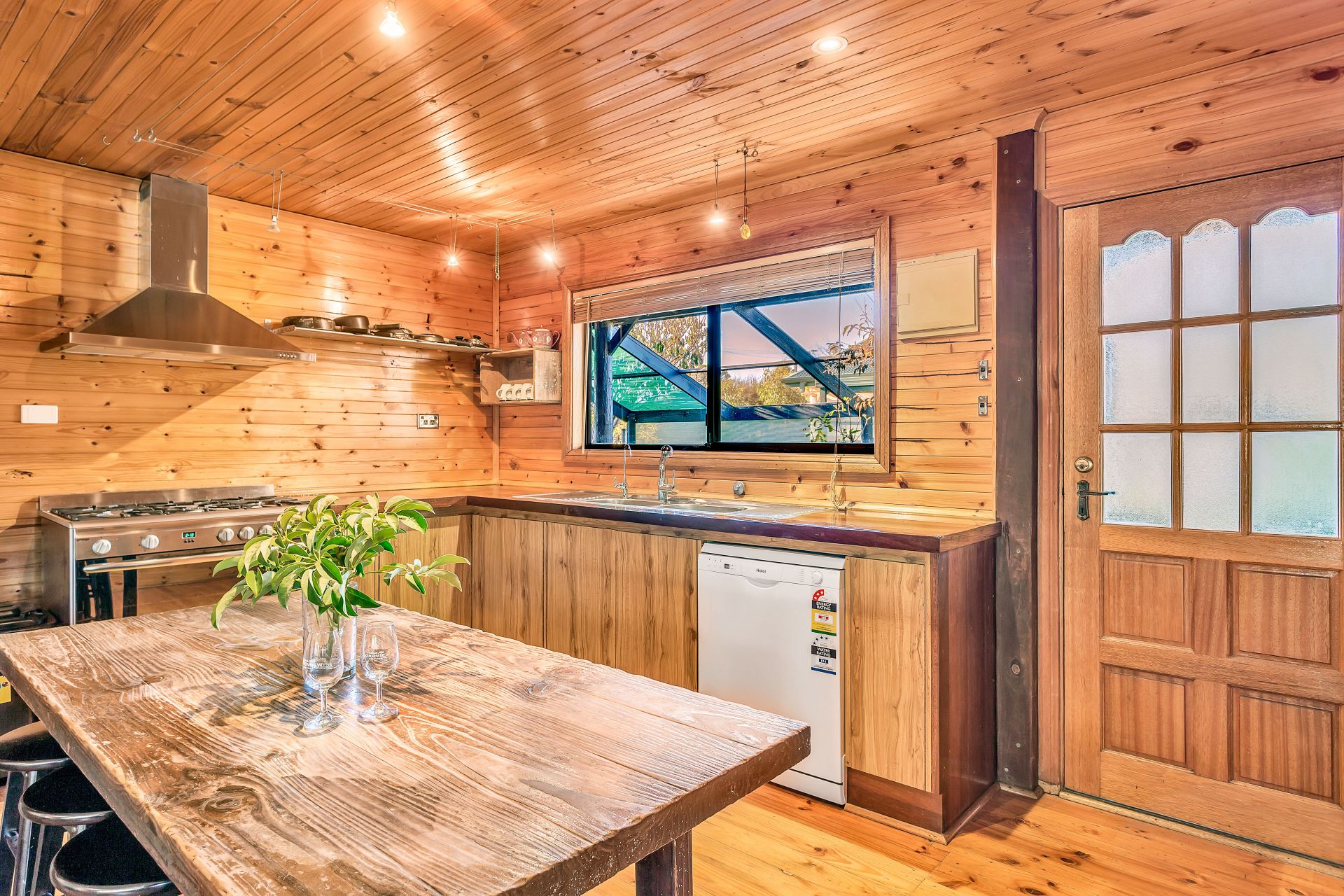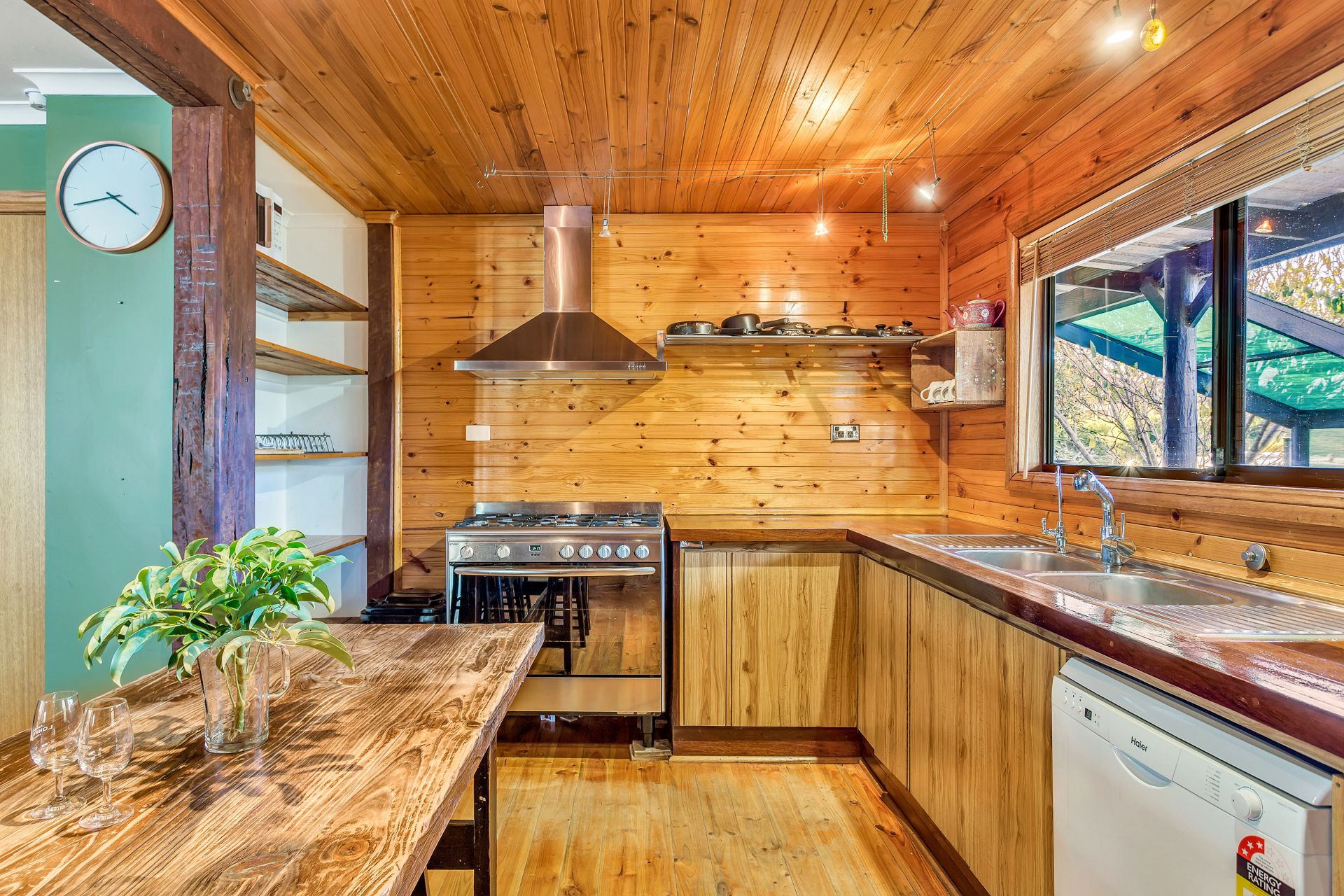 Boasting three generous sized bedrooms all with built in storage and an abundance of natural light. The stand out feature of this property is the stunning kitchen; with it's impressive free standing stainless steel gas cook top and oven, exquisite timber panelling and plenty of storage. The sumptuous bathroom will have you in awe with it's luxurious feel, twin shower heads and spa bath, with plenty of space to stash away the washing machine. The generous open plan living and dining will be sure to accommodate the whole family and the glass cafe doors leading out to the patio, frame the stunning view over the hills. This property also has an abundance of storage with two large workshops.