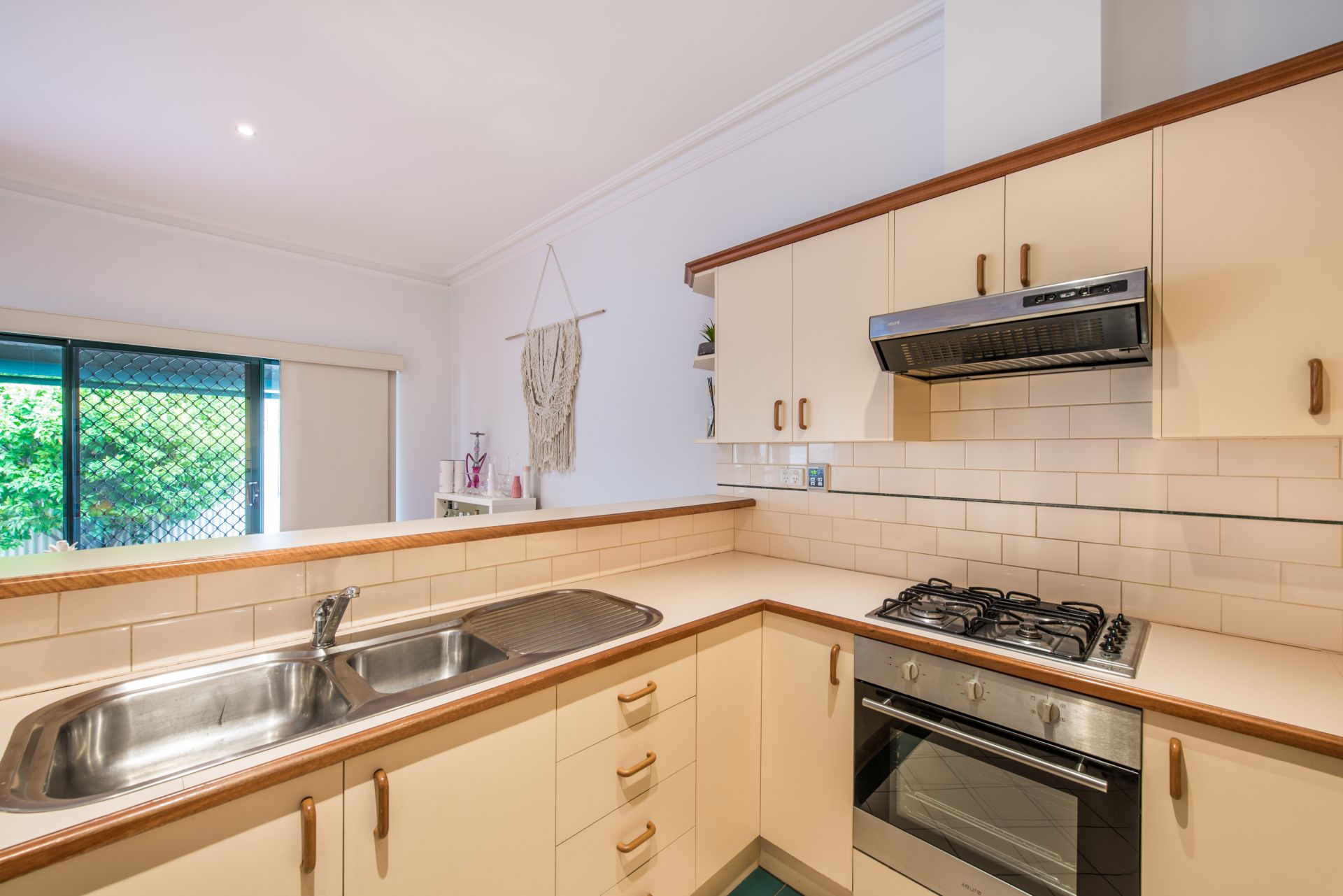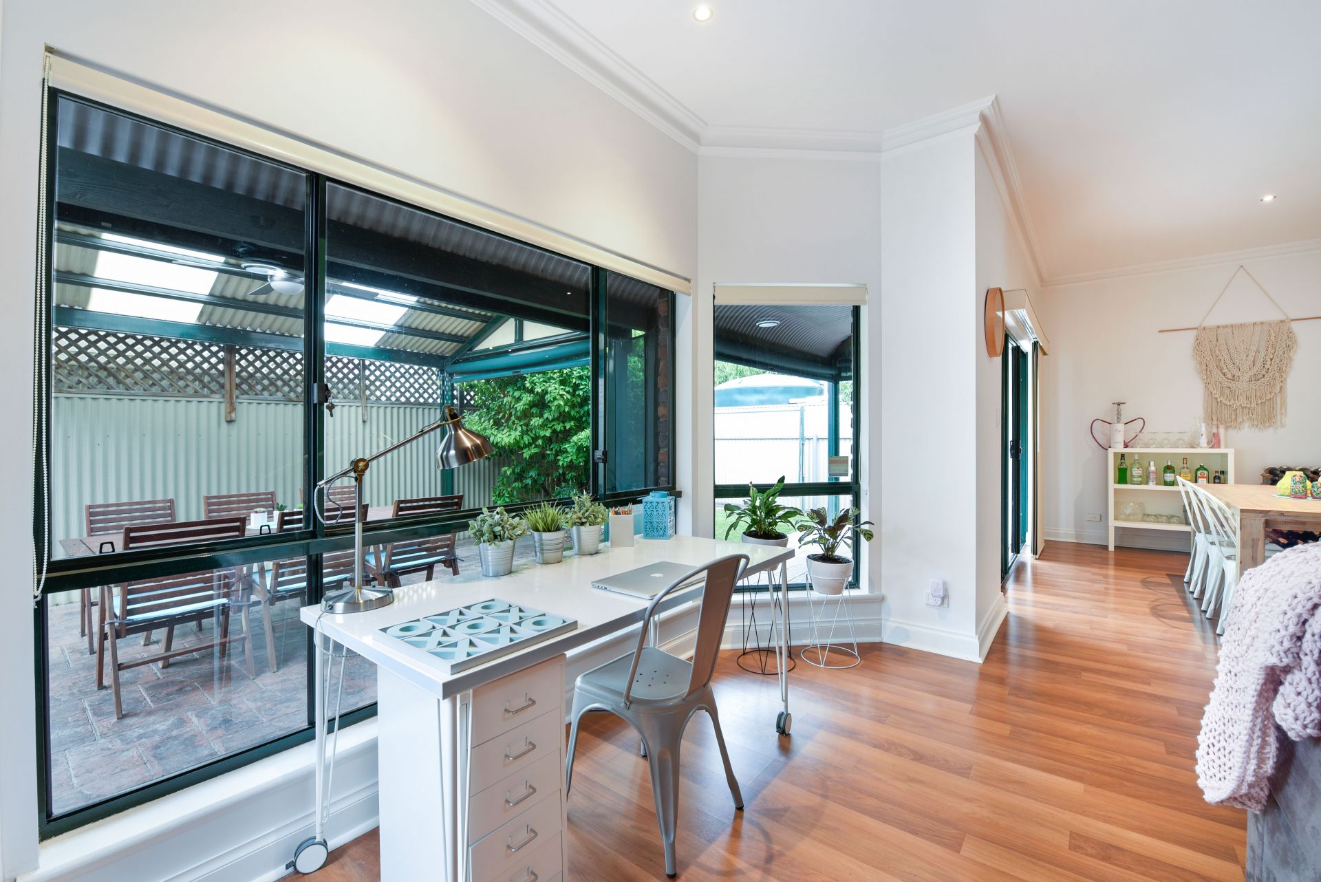 At the heart of the home is the kitchen, dining and living area. The kitchen has been well thought out, with plenty of bench and cupboard space for the chef of the home and boasts stainless steel appliances including gas cooktop and dishwasher. The kitchen overlooks the huge living and dining area, which is complete with a little study nook, a perfect place to set up the desk.