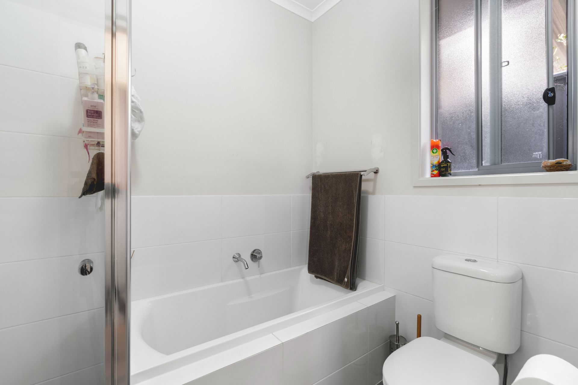 The master bedroom with walk in robe and ensuite is located at the rear of the home with rear access to the deck via sliding doors for those relaxed mornings. High ceilings, ducted reverse cycle air-conditioning, ample storage space, and quality tiling throughout. This one is sure to impress.