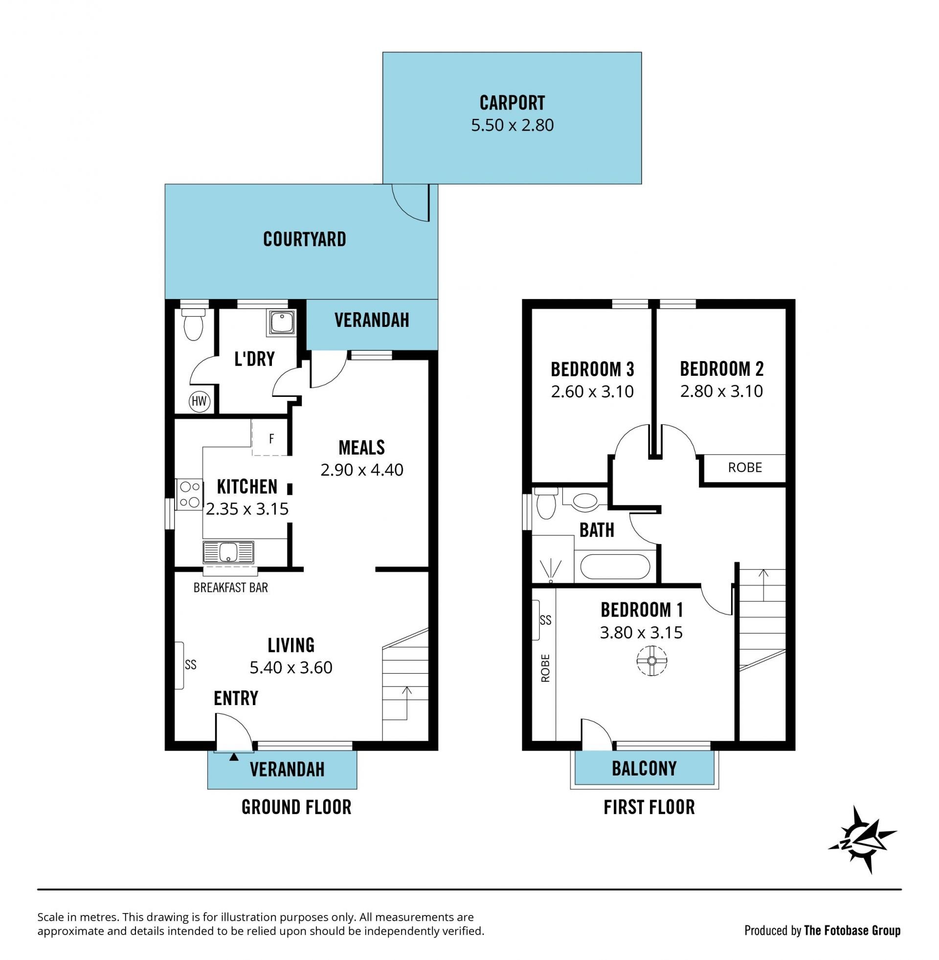 > carpeted bedrooms and floating timber floors on the ground floor.