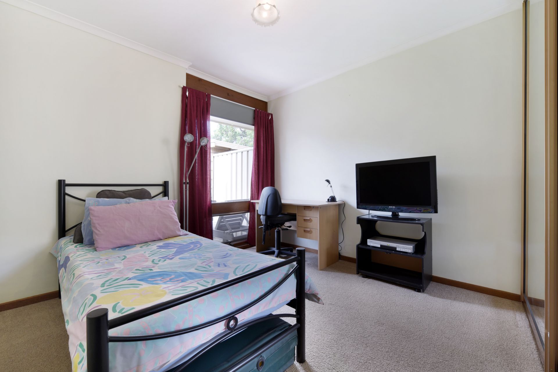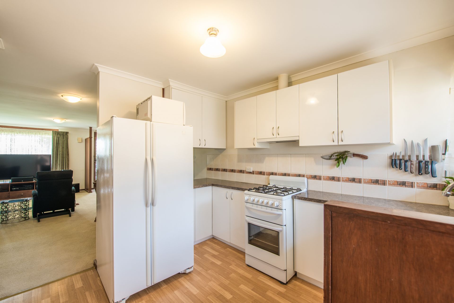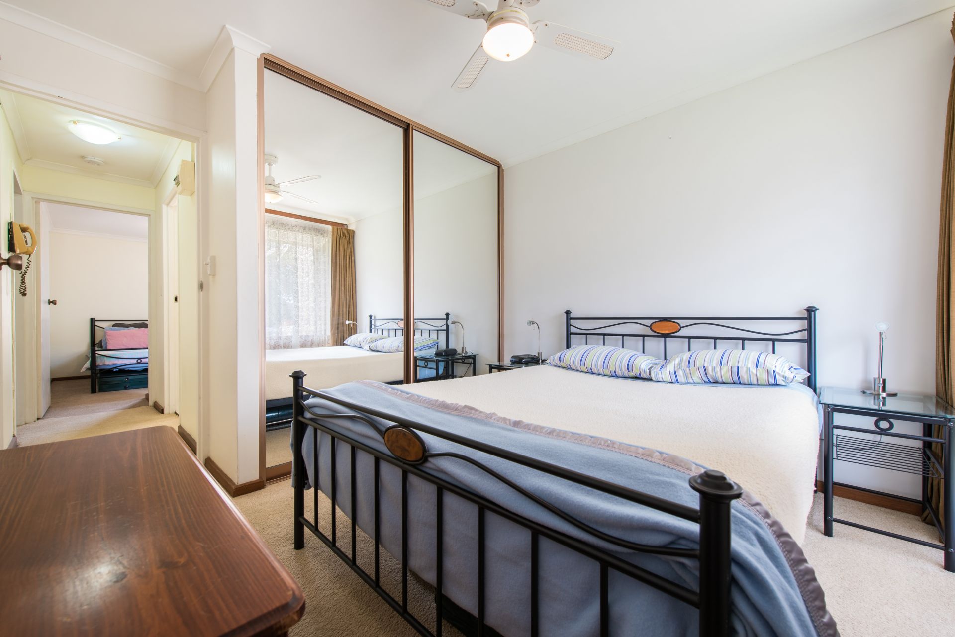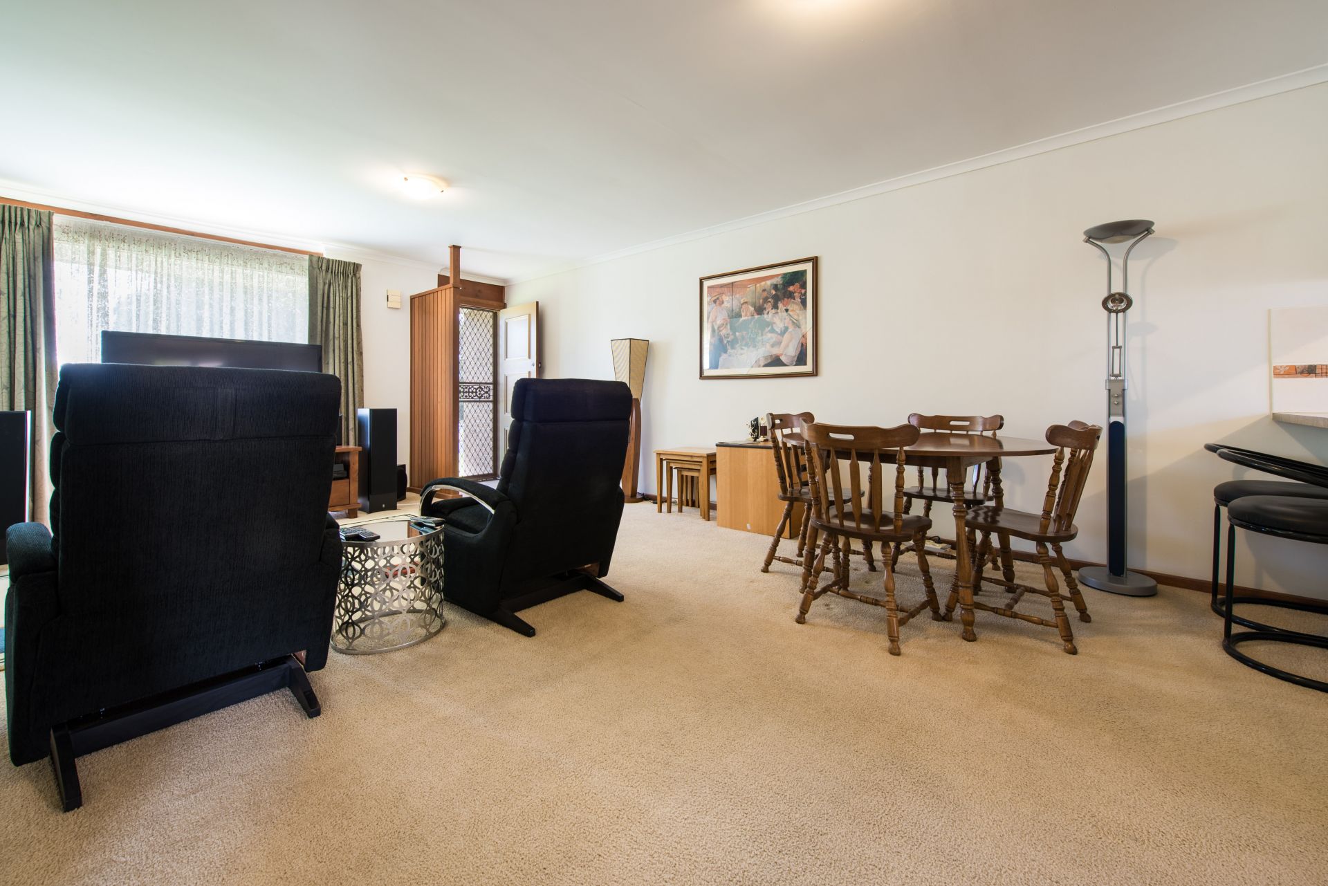 Stepping inside we walk into an open plan living area. The kitchen is slightly private from the main living room providing a quite space to relax after a long day away from the hustle and bustle of the kitchen. The kitchen offers plenty of bench and cupboard space. With the bench extending into the dining room there is room for bar stools to create a neat little breakfast bar. A split system air conditioner provides year-round comfort. There are 2 decent sized bedrooms, both with floor to ceiling mirrored built in robes and main with ceiling fan. The main bathroom is a great size with a generous vanity for storing all your products. Storage is abundant in this home with the laundry also offering a linen cupboard.