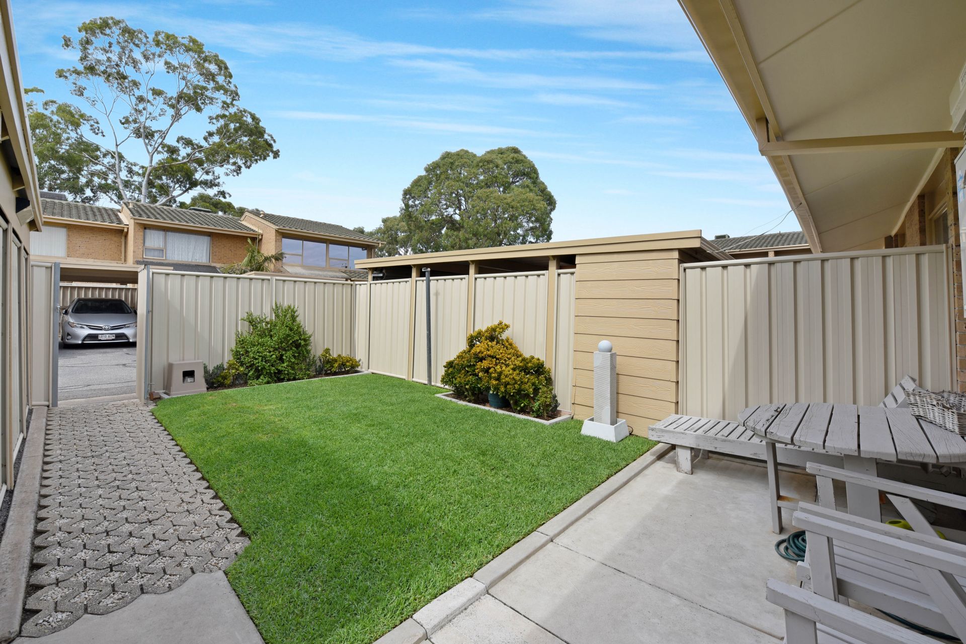 Moving outside is a well-manicured and beautifully presented court yard garden. Sit back with a cold one and enjoy the tranquillity of the trickling water from the water feature. Tucked around the communal driveway and at the rear of the property is your own private carport complete with a garden shed. With gate access to the courtyard this space feels private and secure. With all this to offer and more 3/13-17 Austral Terrace is a place to call home.