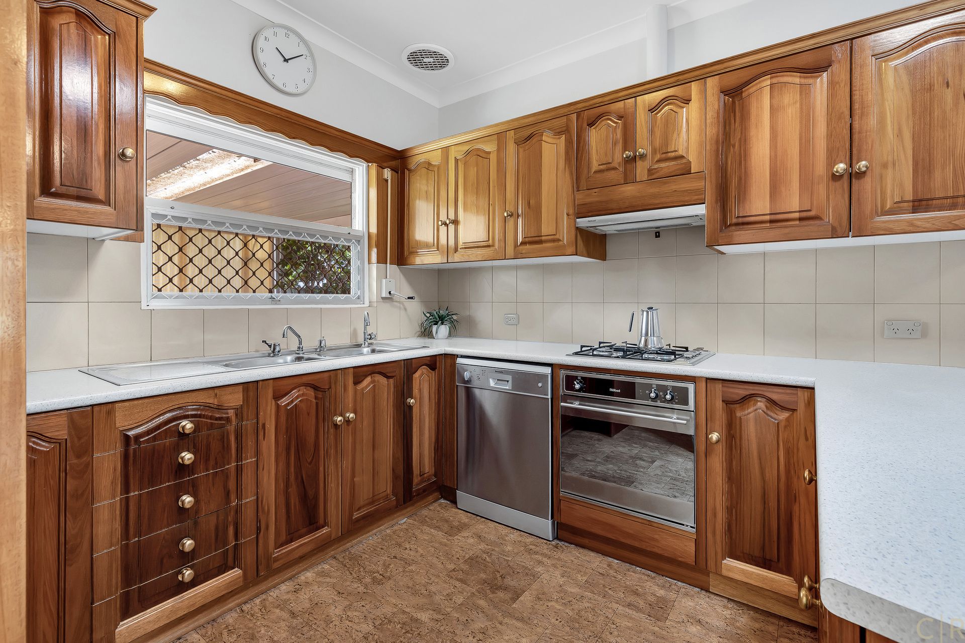 The blackwood timber kitchen and breakfast bar overlooks the meals area and includes ample built-in storage, quality stainless steel appliances, gas cooktop and dishwasher.