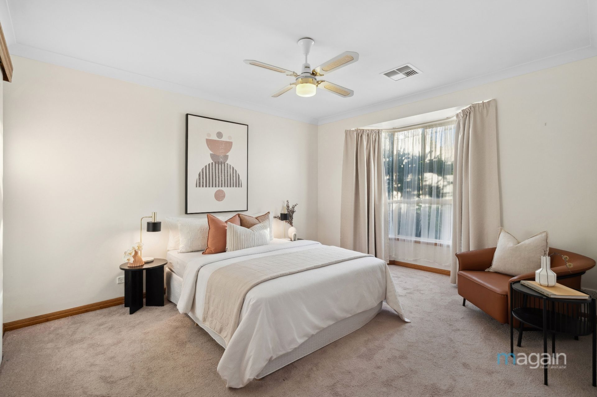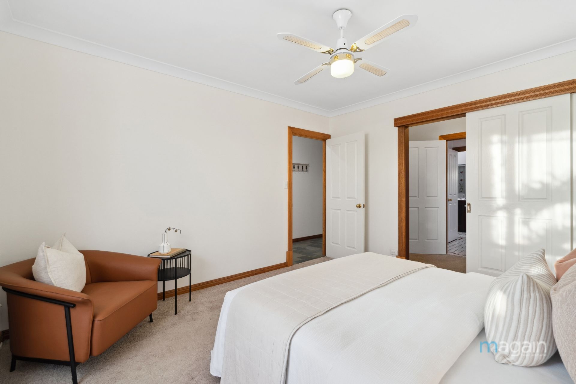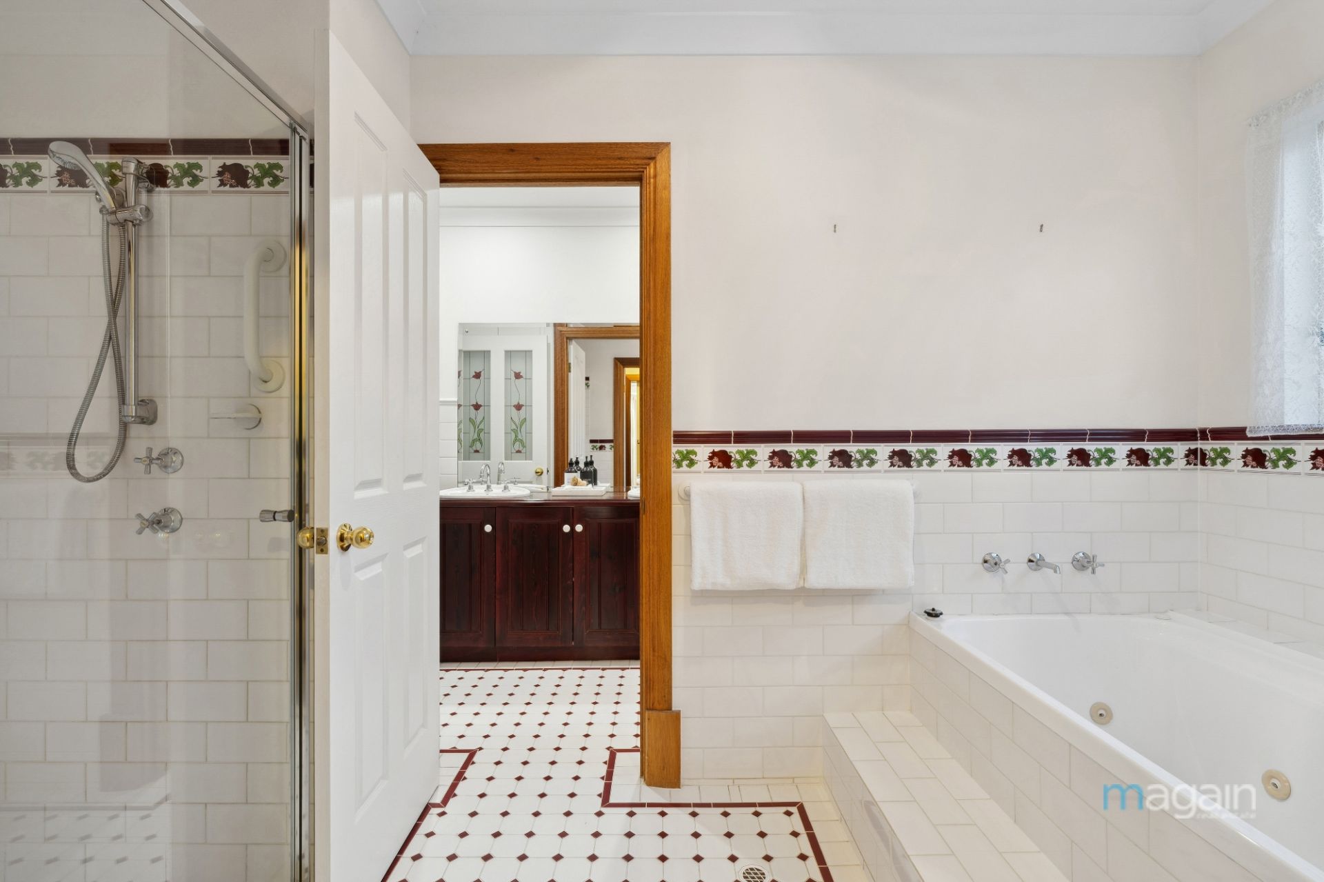 The main bedroom, located at the front of the home, is generously sized and features a charming bay window that floods the room with natural light. It also benefits from a walk-through double-sided robe leading into a private ensuite-style bathroom.