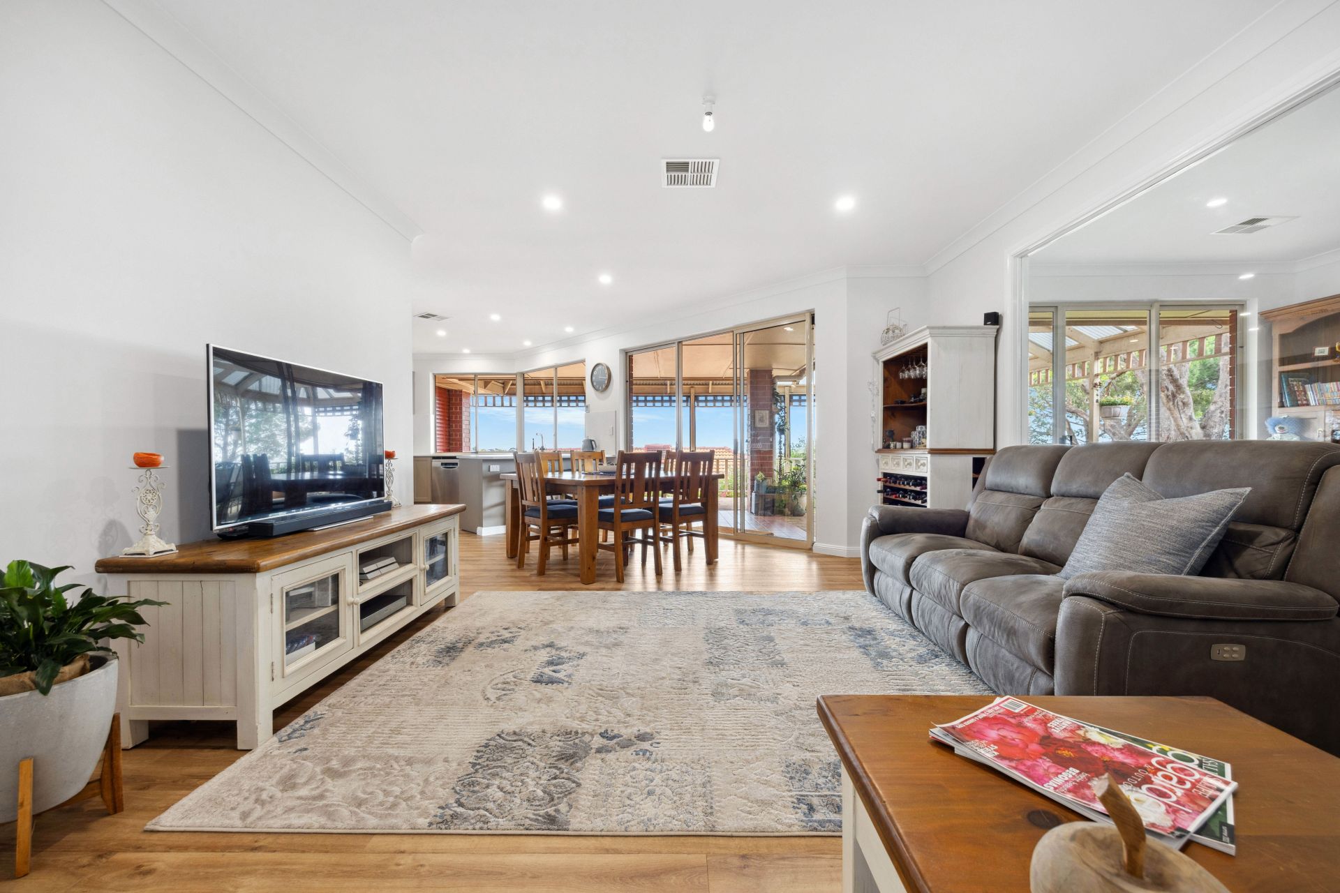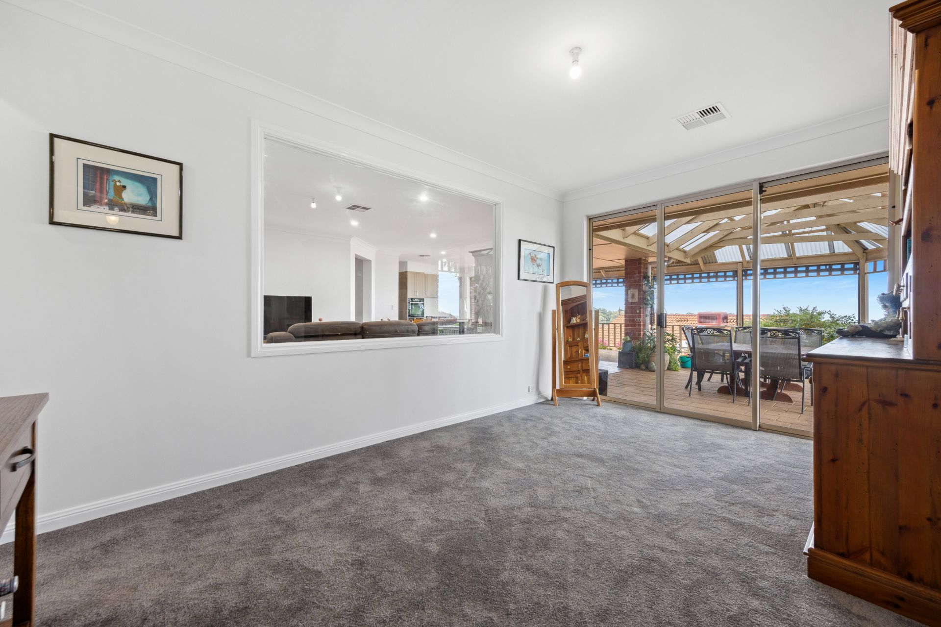 Constructed in 2000 by award winning builder Rossdale Homes, the home offers four bedrooms plus a study, multiple living areas, expansive outdoor entertaining with breathtaking views and a sparkling pool. Stepping inside, you're welcomed into the light-filled foyer with direct access into the formal living and dining room. From here you can move into the open-plan kitchen, meals and family room with easy-care timber look vinyl flooring, while a glass sliding door offers a seamless transition out to the alfresco area for indoor/outdoor living and entertaining. The family room is the ideal space for spending some quality family time – heat up the popcorn, take a seat on the lounge and watch a movie together or allow the kids to go entertain themselves in the adjoining rumpus room where you are able to keep an eye on them through the window situated between these two rooms.