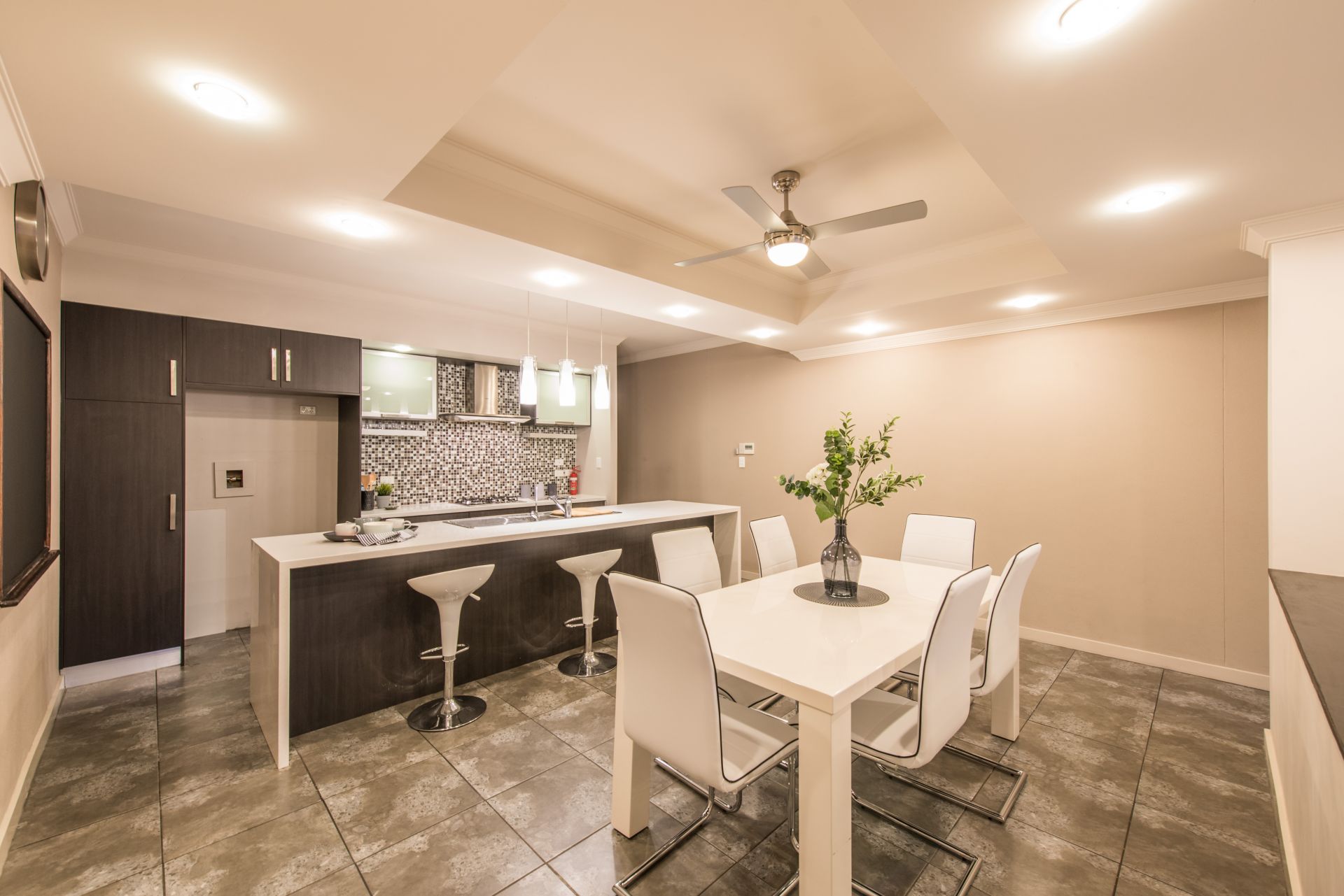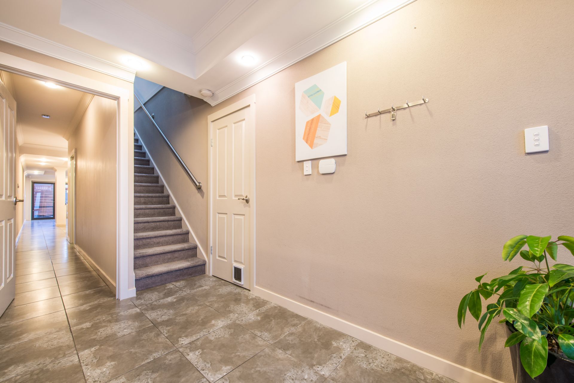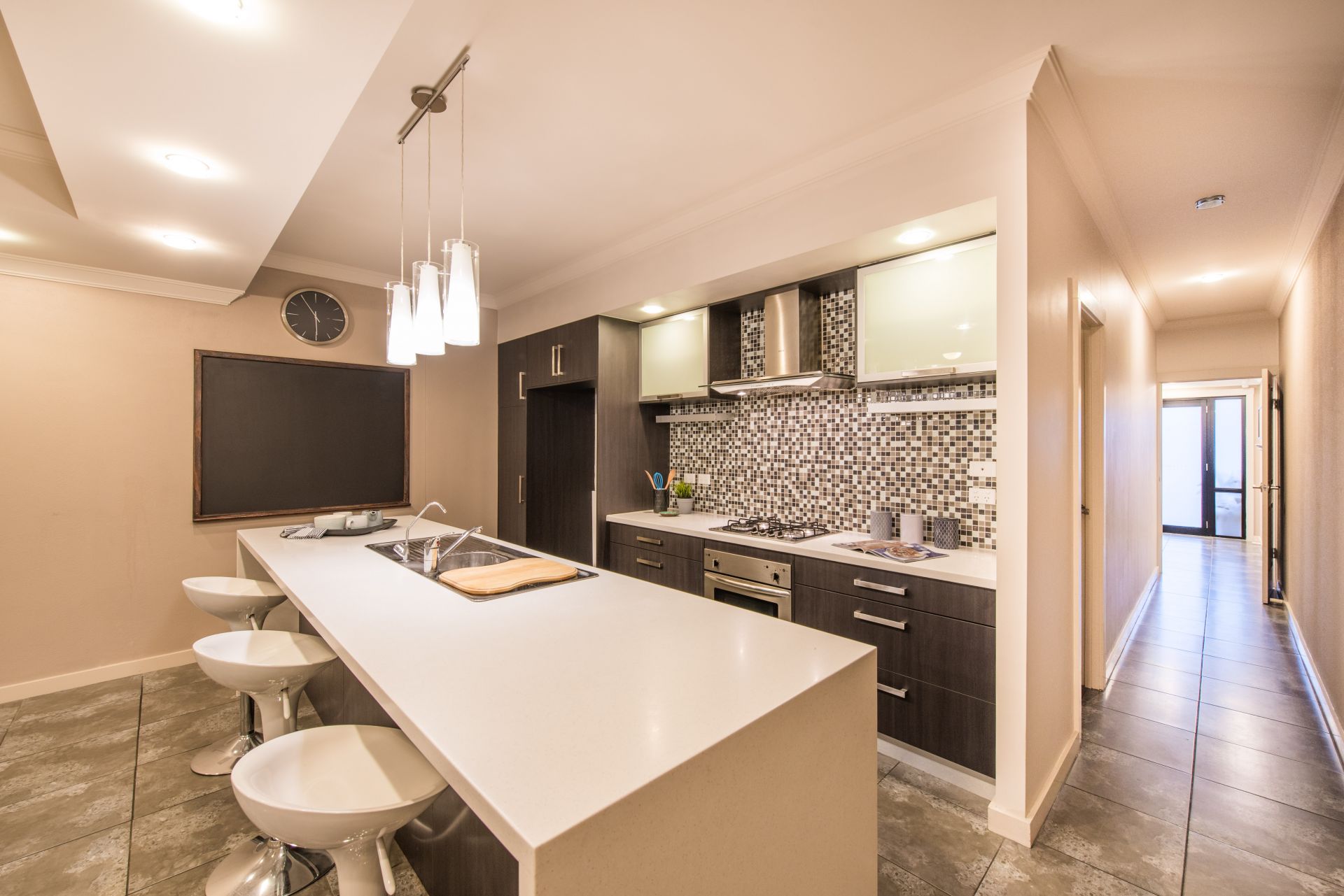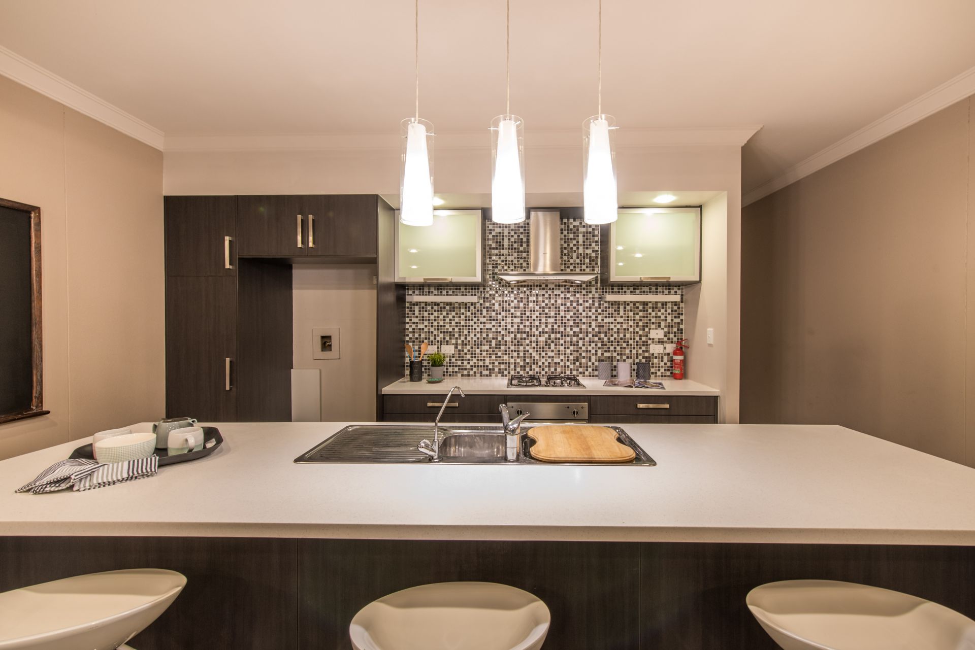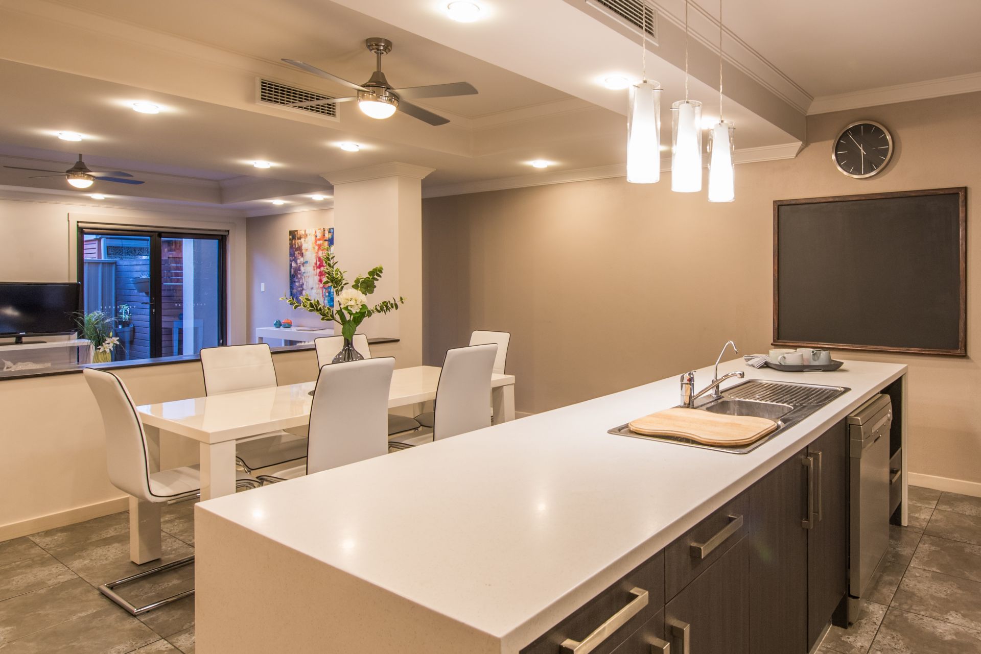 Stepping into the property the entrance foyer and downstairs area are tiled throughout, with bulk head ceilings as you walk in the sense of space is well captured. The living area is located downstairs with a half bath for added convenience. As you walk down the corridor you step into the open kitchen/living/dining area. The kitchen is equipped with stainless steel appliances and ample cupboard space. The island bench is generous in size and provides an extra seating area for busy breakfasts in the morning. The living and dining area is privately divided by a half wall but still open enough for when you are entertaining with guests.