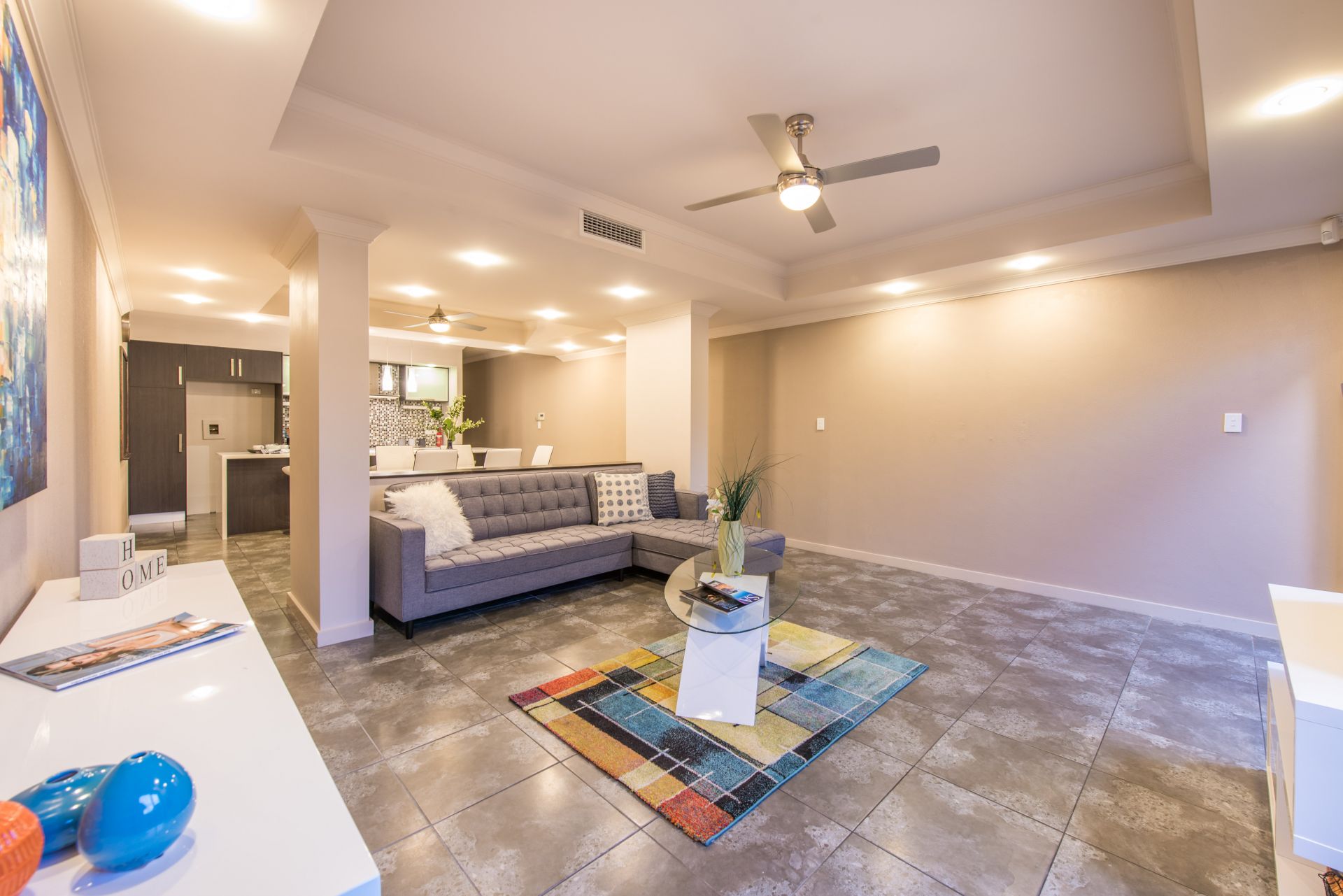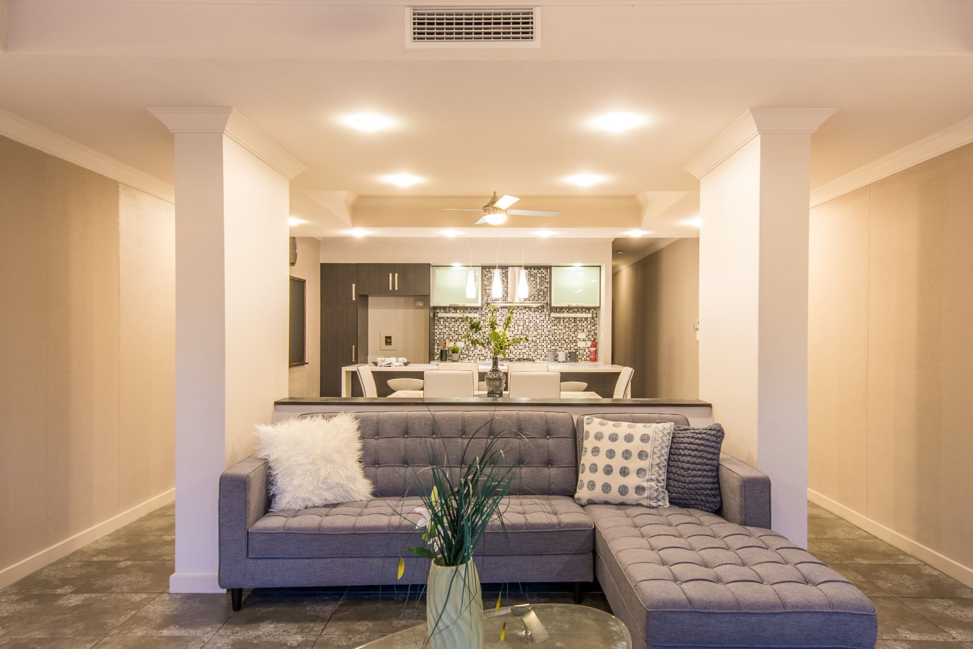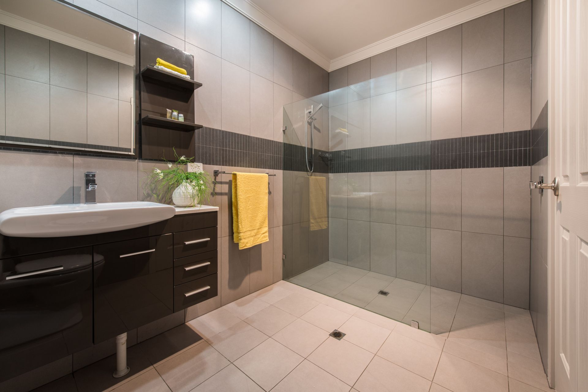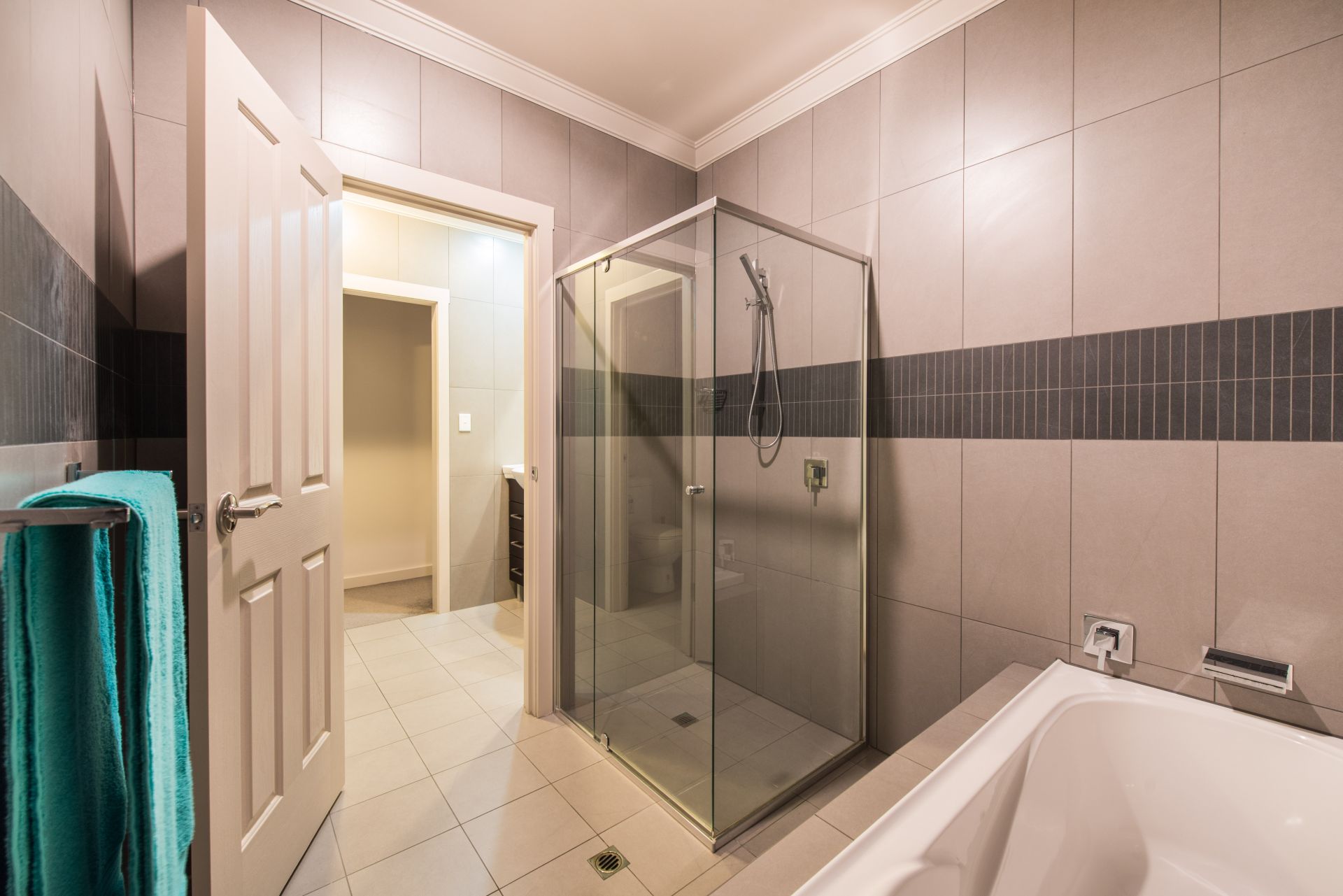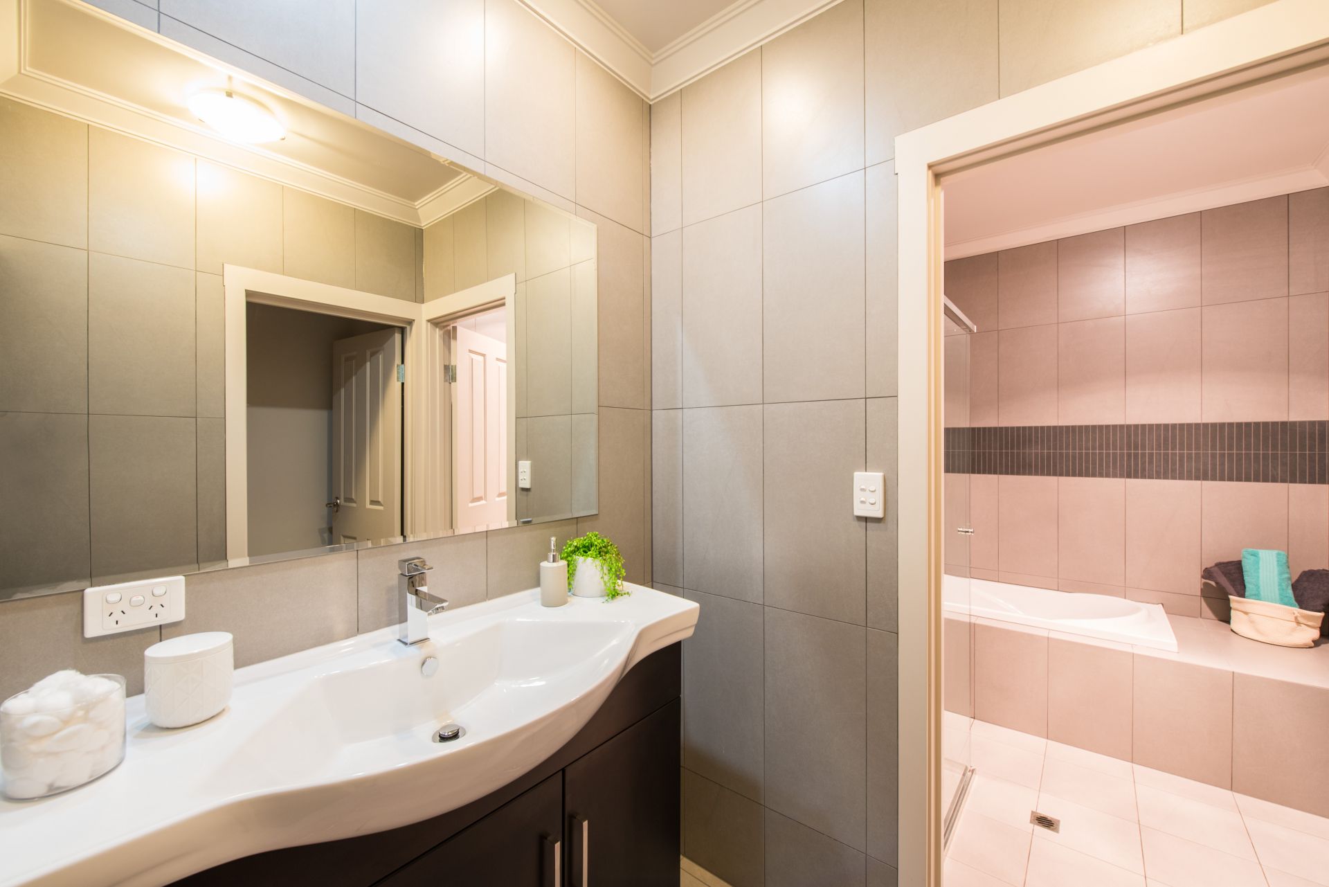 Stepping into the property the entrance foyer and downstairs area are tiled throughout, with bulk head ceilings as you walk in the sense of space is well captured. The living area is located downstairs with a half bath for added convenience. As you walk down the corridor you step into the open kitchen/living/dining area. The kitchen is equipped with stainless steel appliances and ample cupboard space. The island bench is generous in size and provides an extra seating area for busy breakfasts in the morning. The living and dining area is privately divided by a half wall but still open enough for when you are entertaining with guests.