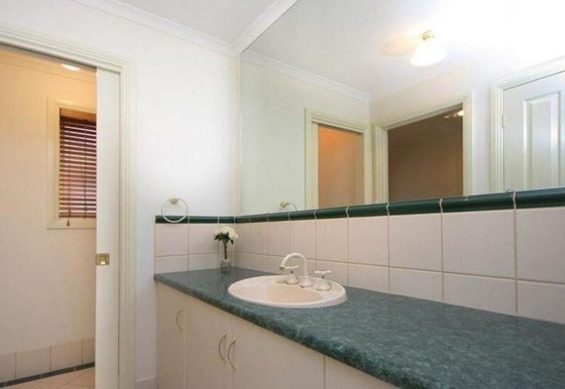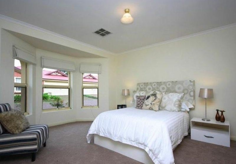 The master bedroom, strategically located at the front of the home, exudes charm with its picturesque bay window offering views of the front garden. Convenience is key with direct access through a walk-in robe to the main bathroom, complete with a separate toilet and vanity. Built-in cupboards in the bathroom and hallway provide additional storage options.