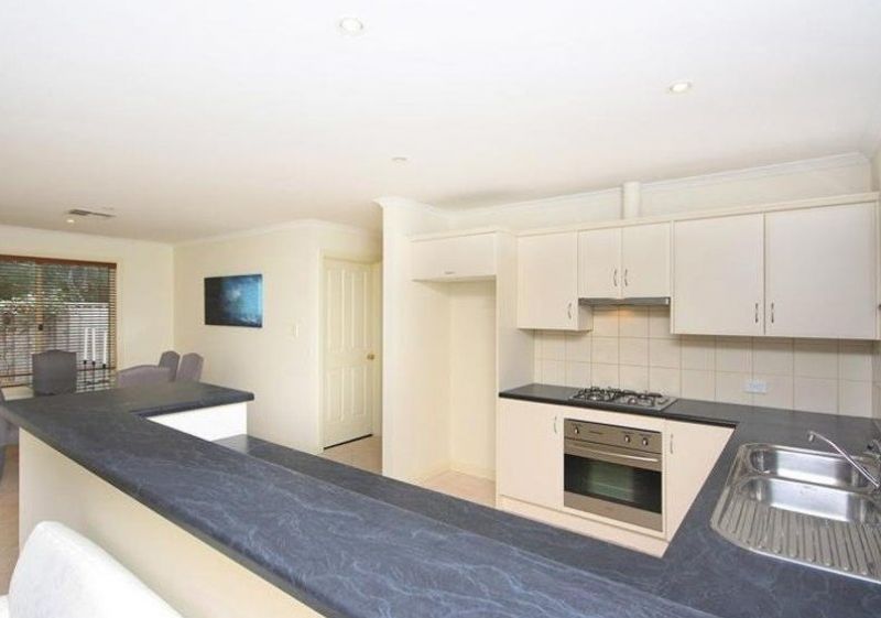 Upon entry, a pristine hallway unfolds, seamlessly guiding you towards the heart of the home, a spacious open-plan kitchen, living, and meals area. The well-appointed kitchen boasts ample cupboard and bench space, complemented by high-quality appliances, including a gas cooktop and Miele dishwasher. A breakfast bar not only enhances the kitchen's functionality but also serves as a stylish divider between the kitchen and the dining space.