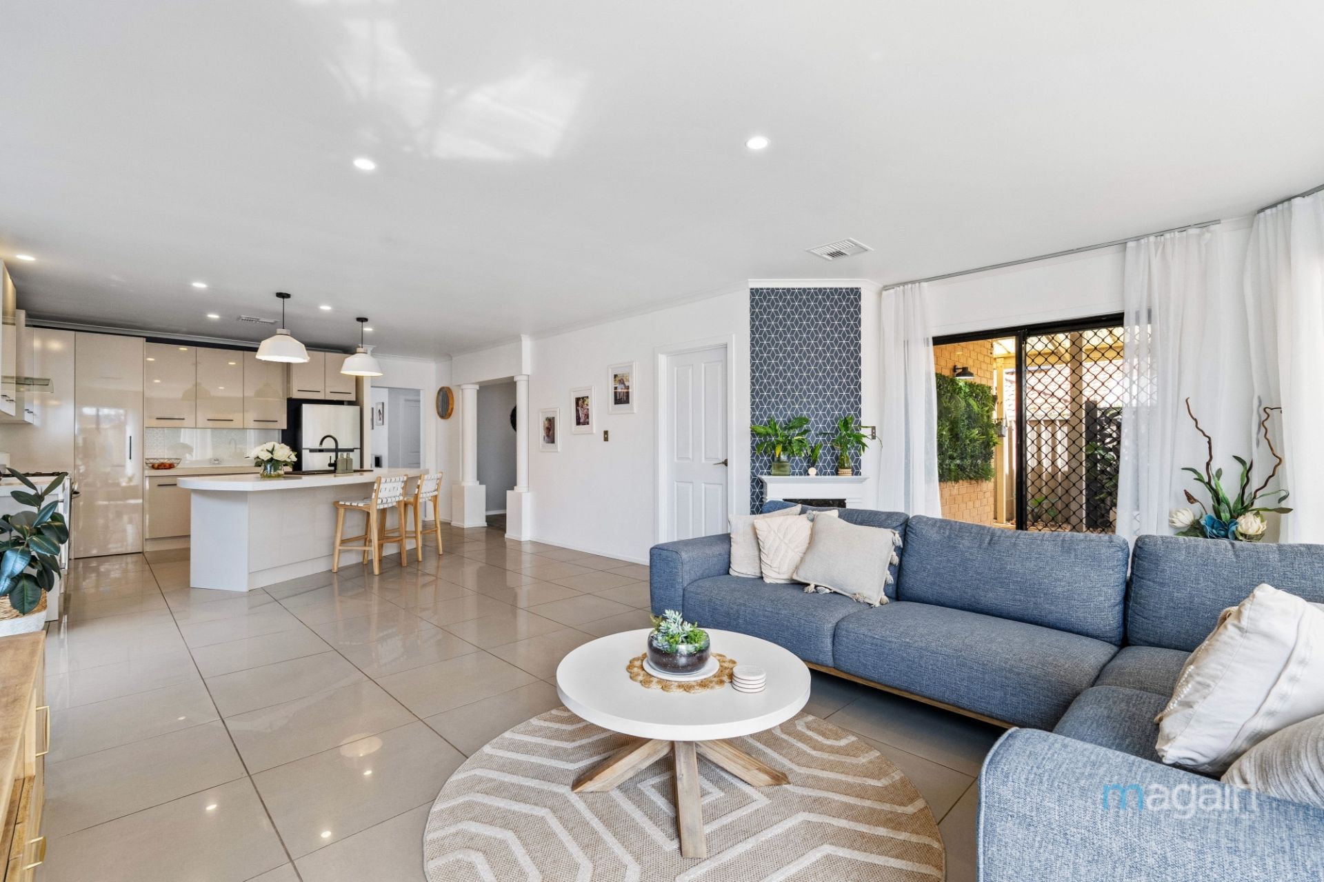 Sliding doors from the open-plan living area lead you to a low-maintenance fully paved yard, featuring an undercover entertaining area and an elevated decked alfresco space, perfect for outdoor gatherings and enjoying the pleasant South Australian climate.