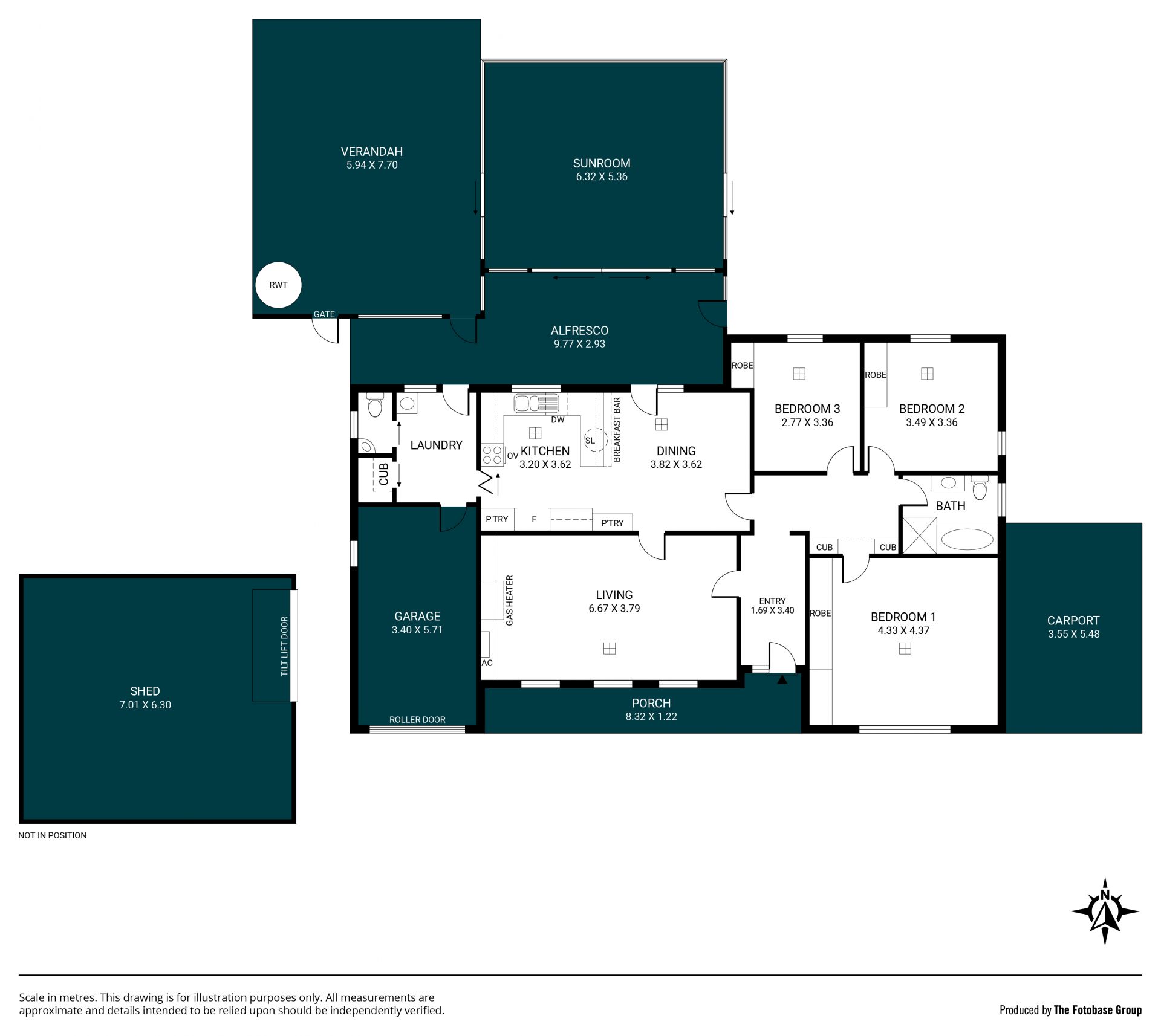 Additional features include ducted reverse-cycle air conditioning throughout, a spacious shed for tool and garden storage, solar panels for improved energy efficiency, and a rainwater tank plumbed to both the laundry and kitchen.