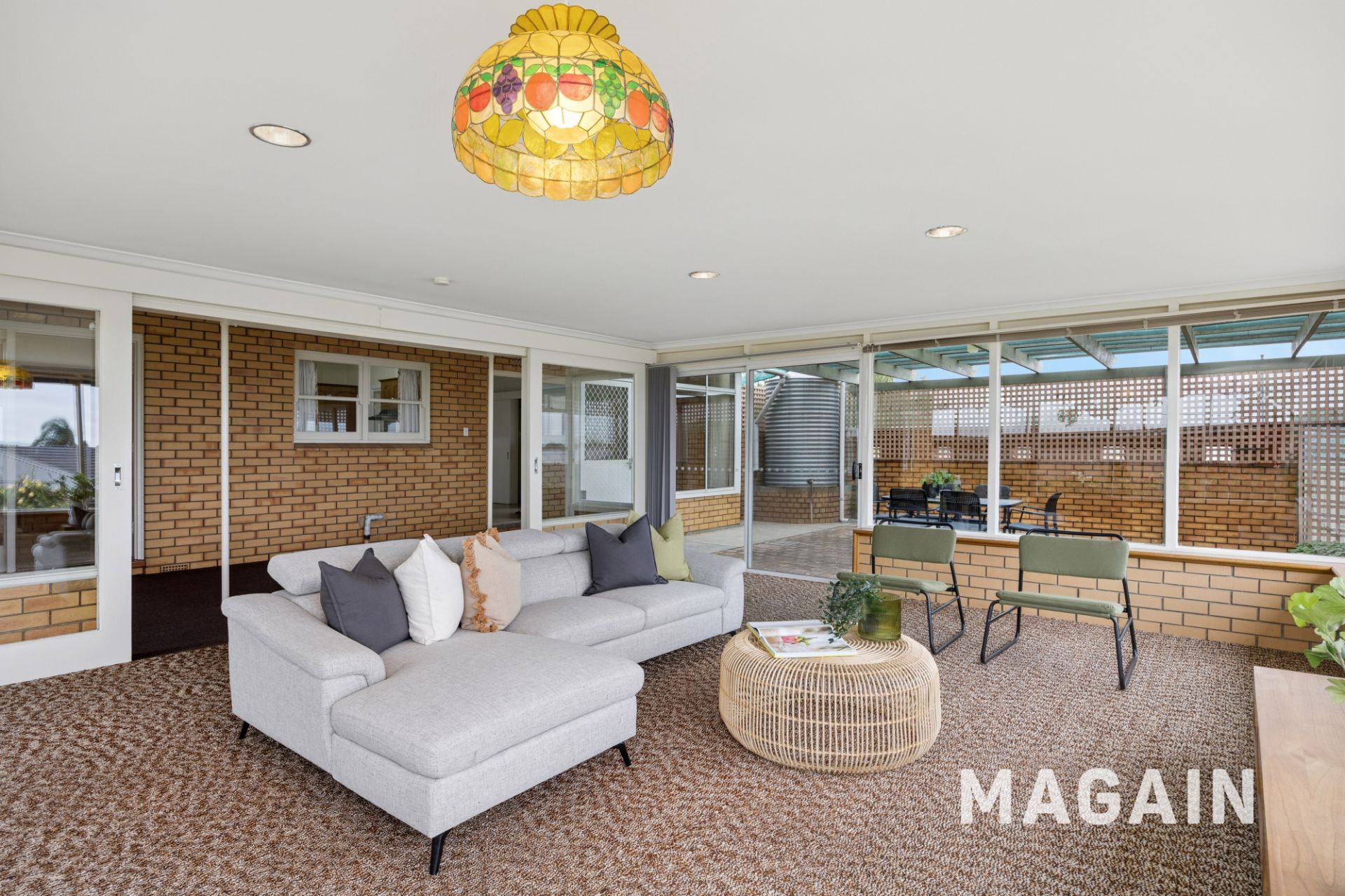 If you're not already impressed, step outside and prepare to fall in love. The front of the home is beautifully maintained, with vibrant flowers and mature shrubs adding both colour and privacy. At the rear, a spacious sunroom featuring wraparound glass windows provides stunning views across the garden, a true standout of this property. The backyard mirrors the charm of the front with blooming plants and established trees, while the undercover verandah offers the perfect setting for dinner parties, weekend gatherings, or a peaceful morning coffee during the warmer months.
