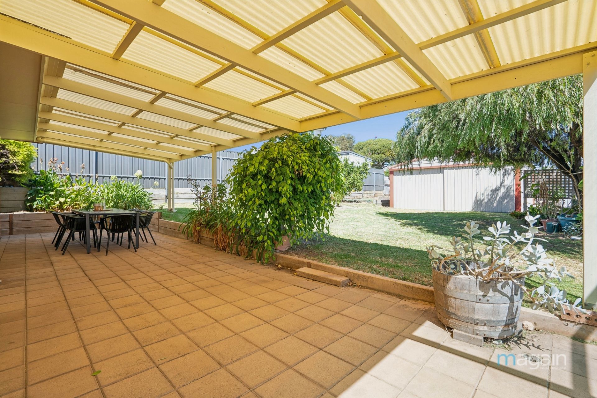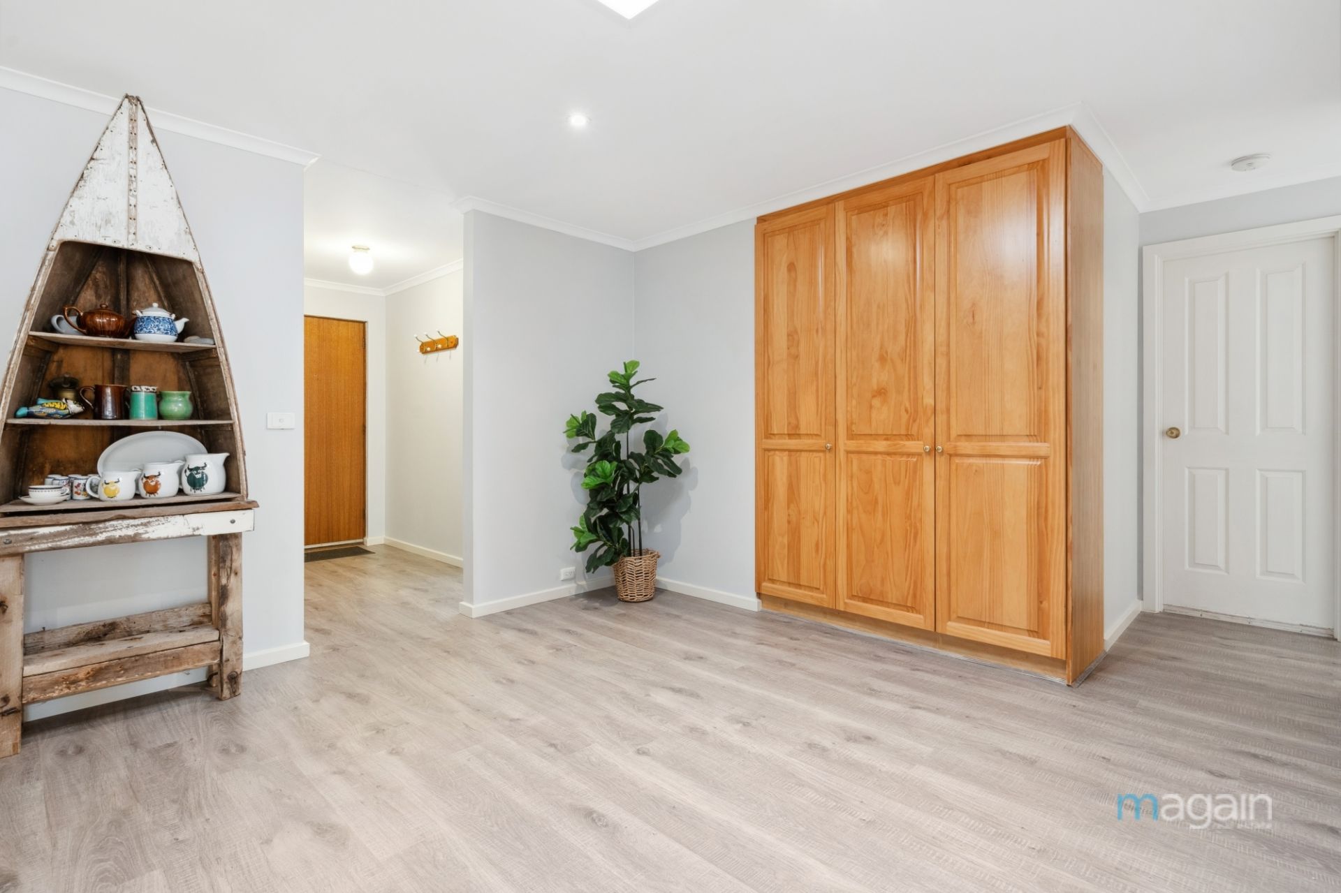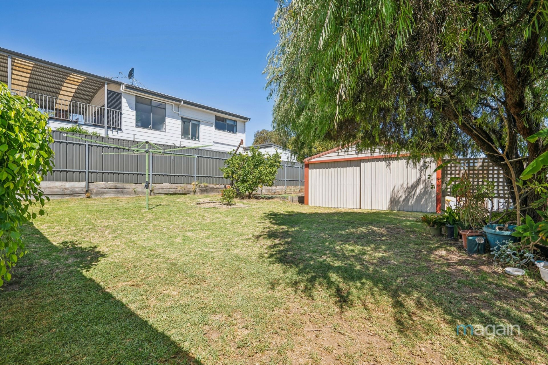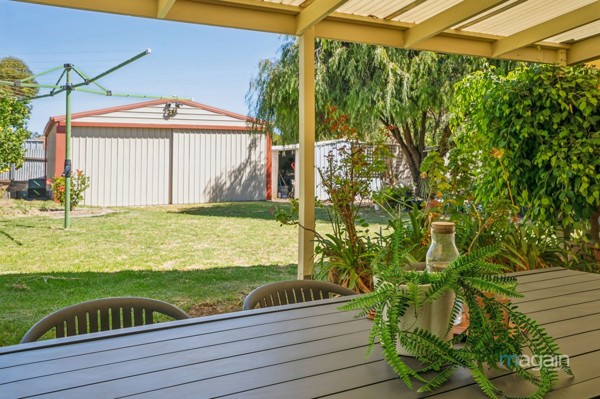 Ceiling fans are dotted around the home, with two split systems to keep you comfy all year round, whilst solar panels on the roof work to reduce your energy bills and environmental impact. Storage throughout is great, with a fabulous walk-in-robe to the master, plus extensive built in cabinetry to bedroom 2, a big linen press with sliding doors, and large built-in robes to bedroom 3. The larger than average third bedroom has a pleasant outlook of the back garden, with sliding glass doors leading directly outside. There's plenty of room undercover for birthday parties and barbeques, along with space for your shade loving plants to thrive. The abundant lemon tree is currently bursting with fruit, and there's plenty of room for more fruit trees, veggies and herbs. A large garden shed is there to stool all your garden tools, bits and bobs. There's even a couple of small rainwater tanks to help with watering.