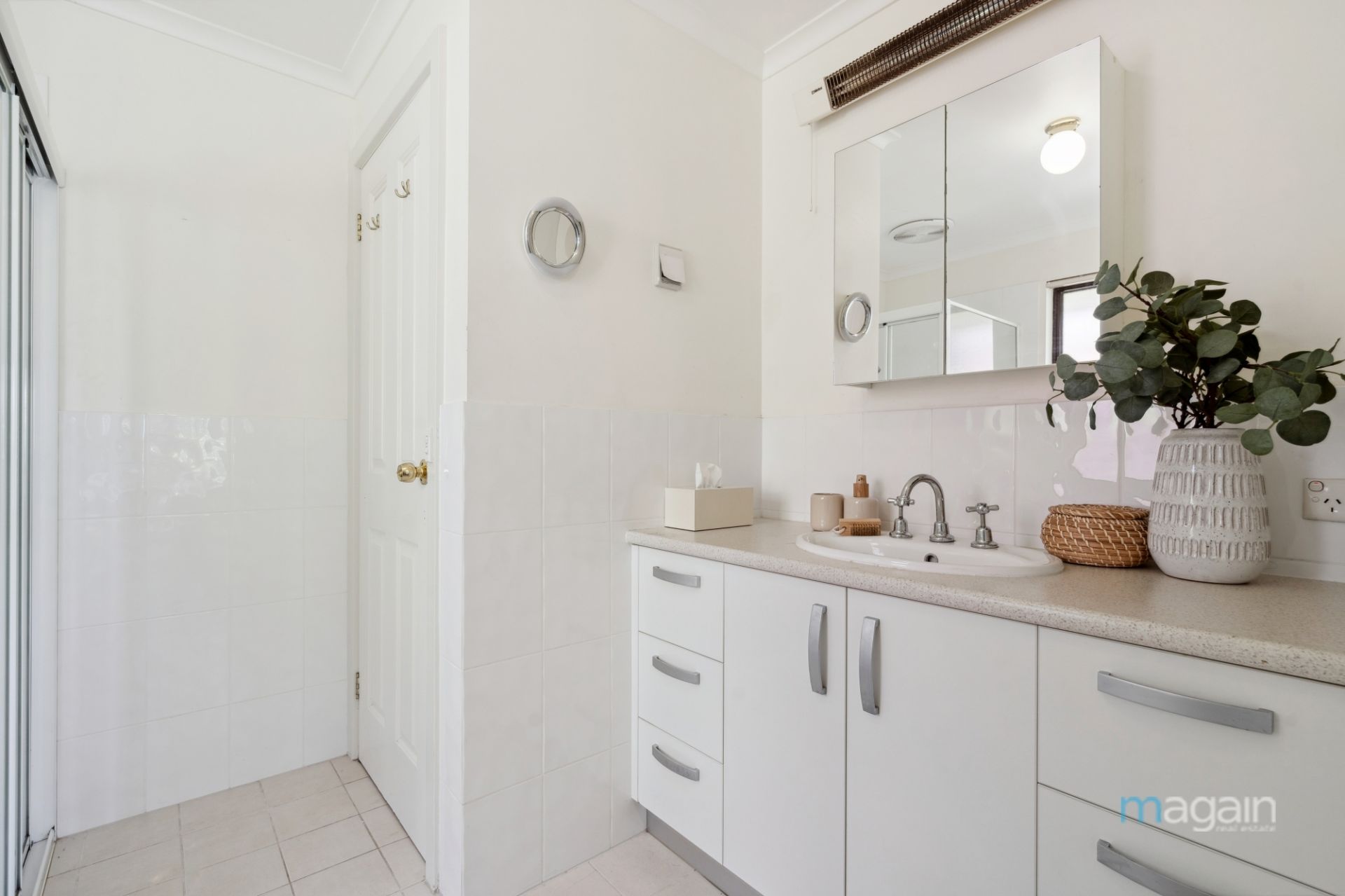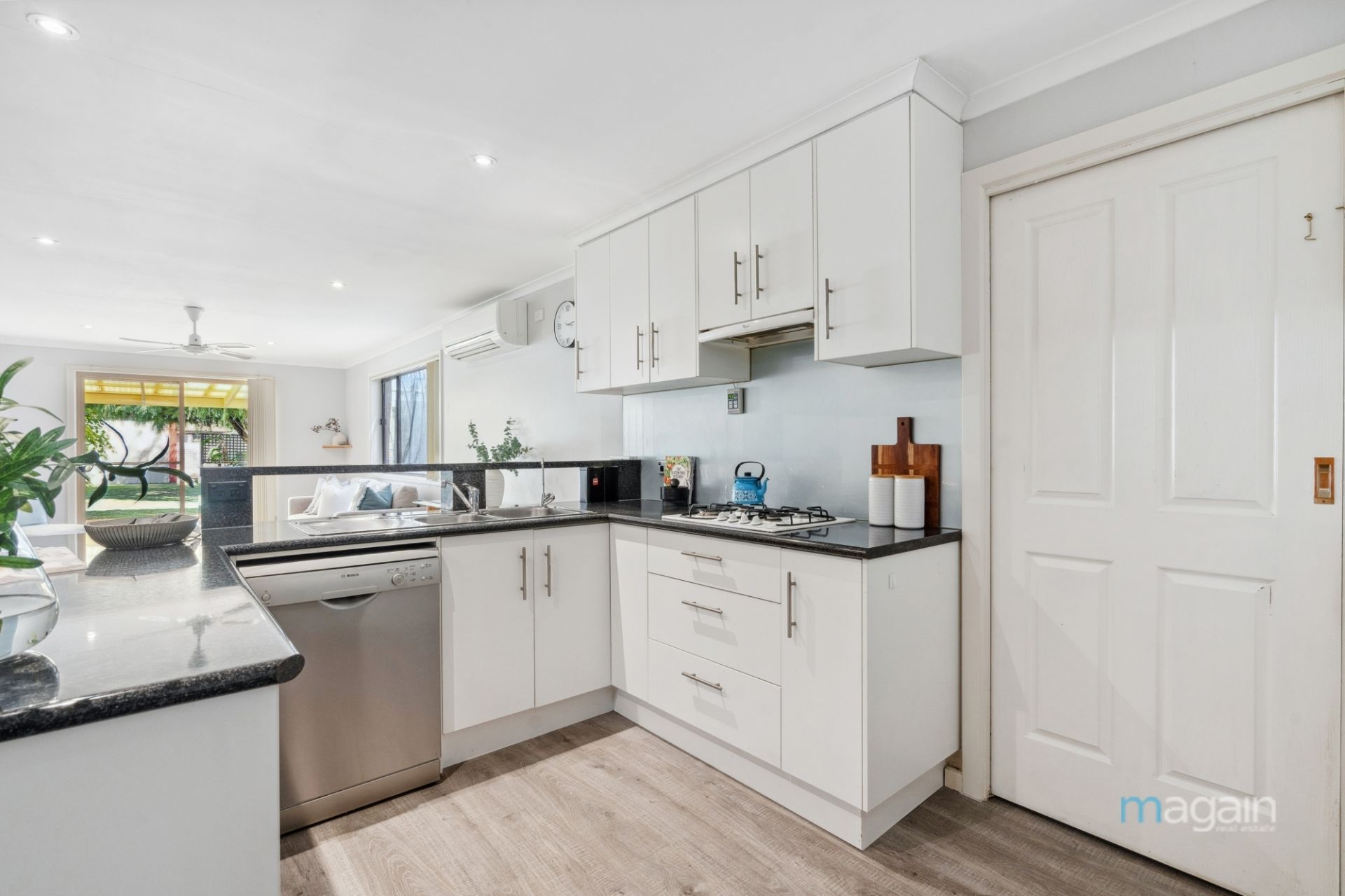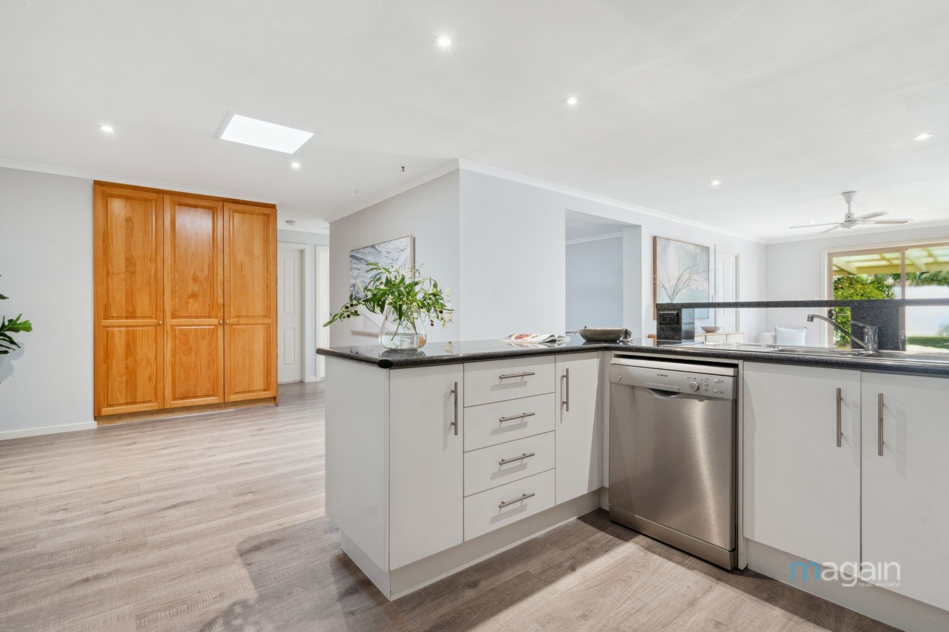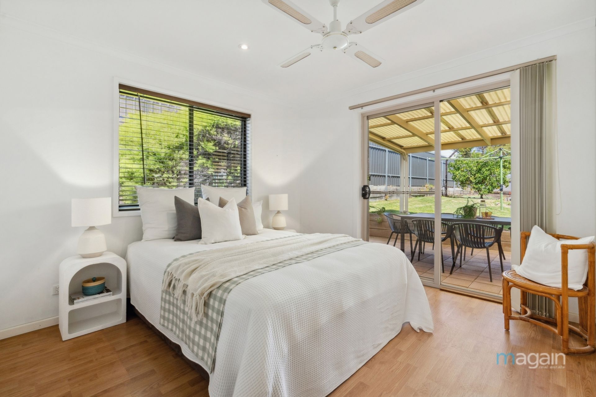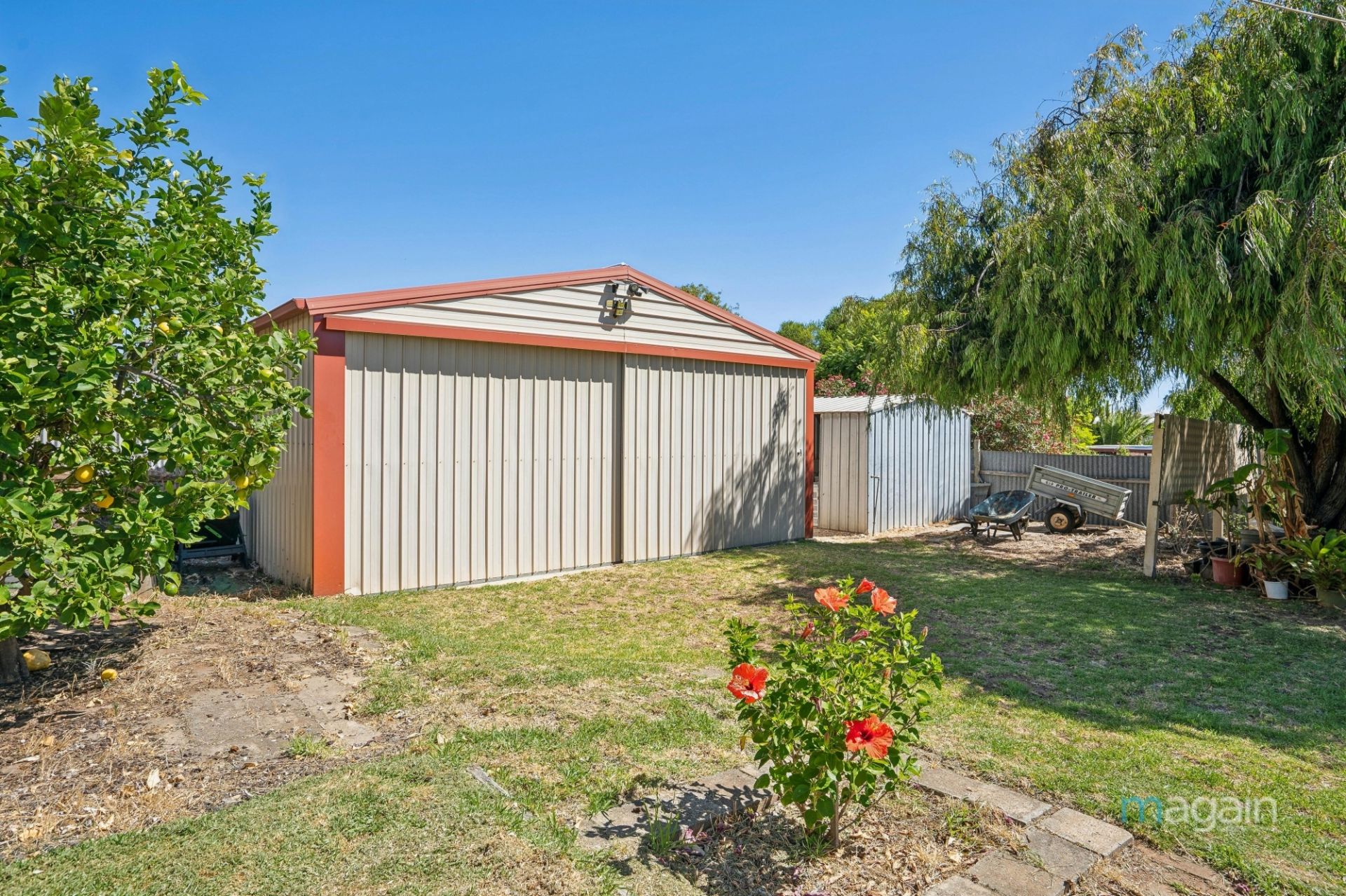 Ceiling fans are dotted around the home, with two split systems to keep you comfy all year round, whilst solar panels on the roof work to reduce your energy bills and environmental impact. Storage throughout is great, with a fabulous walk-in-robe to the master, plus extensive built in cabinetry to bedroom 2, a big linen press with sliding doors, and large built-in robes to bedroom 3. The larger than average third bedroom has a pleasant outlook of the back garden, with sliding glass doors leading directly outside. There's plenty of room undercover for birthday parties and barbeques, along with space for your shade loving plants to thrive. The abundant lemon tree is currently bursting with fruit, and there's plenty of room for more fruit trees, veggies and herbs. A large garden shed is there to stool all your garden tools, bits and bobs. There's even a couple of small rainwater tanks to help with watering.