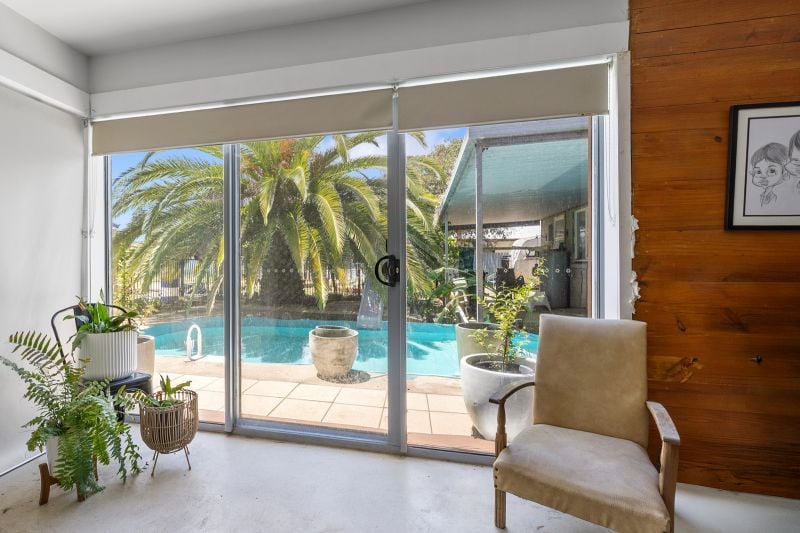Sliding doors take you out to the undercover veranda and the huge yard and pool area.