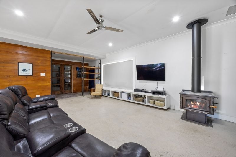 The home has an impressive open plan kitchen, dining and lounge area with ceiling fans, ideal for families, and/or entertainers to enjoy. The polished concrete floor makes cleaning a breeze.