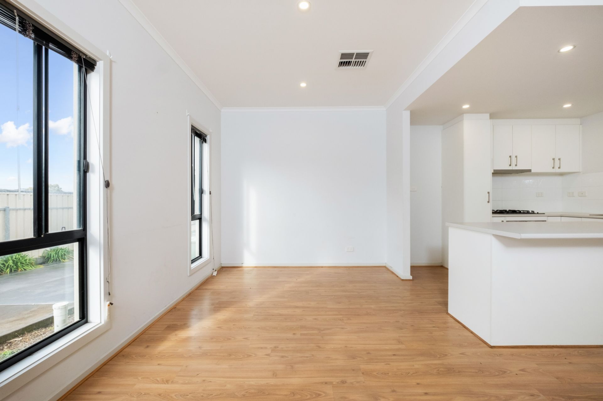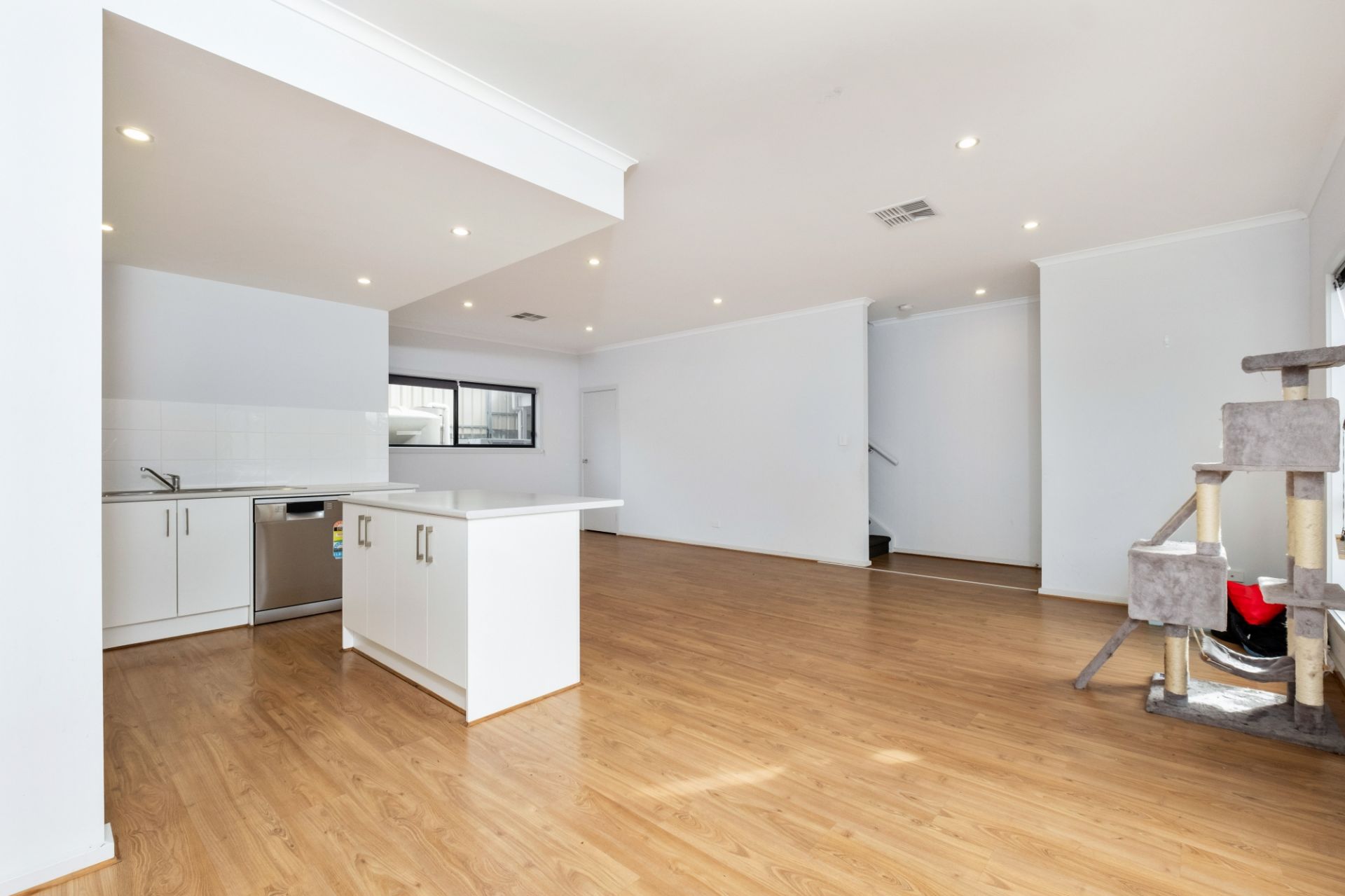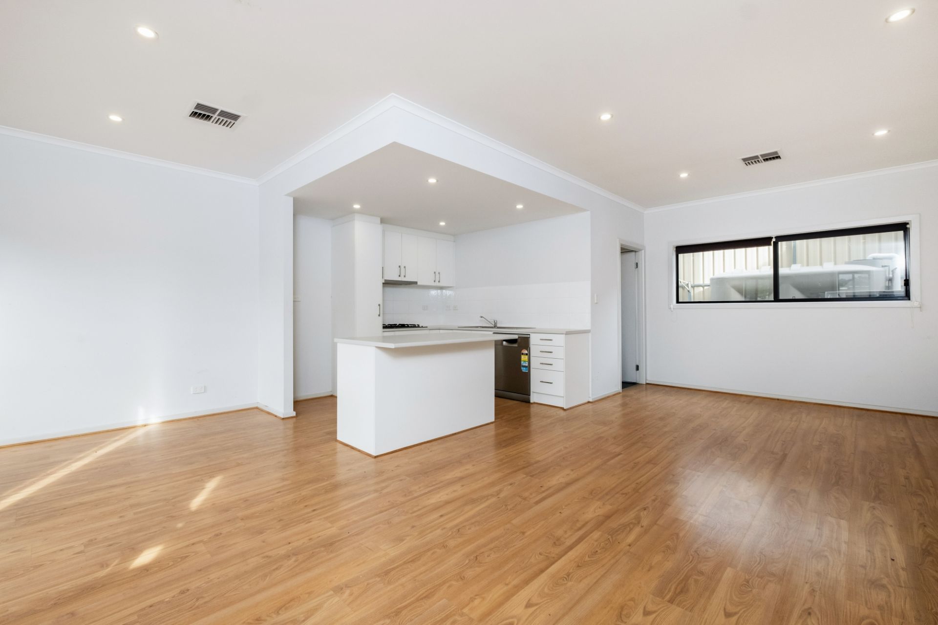 > open plan lounge, dining and kitchen with gas cooking and dishwasher