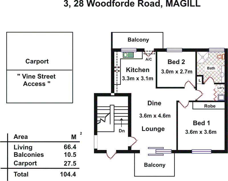 Superbly located just a short stroll from Magill Campus this beautifully presented, secure upstairs apartment is ideal for 1st home buyers and investors with a potential rental of approximately $290 - $300 per week. Comprising lock up entry foyer, 2 bedrooms, main with built in robes, open living with attractive floating floors, split system reverse cycle air conditioning, as new kitchen with stainless steel appliances including dishwasher, upgraded bathroom and laundry, front and rear balconies providing private outdoor space and secure double carport with automatic gate.