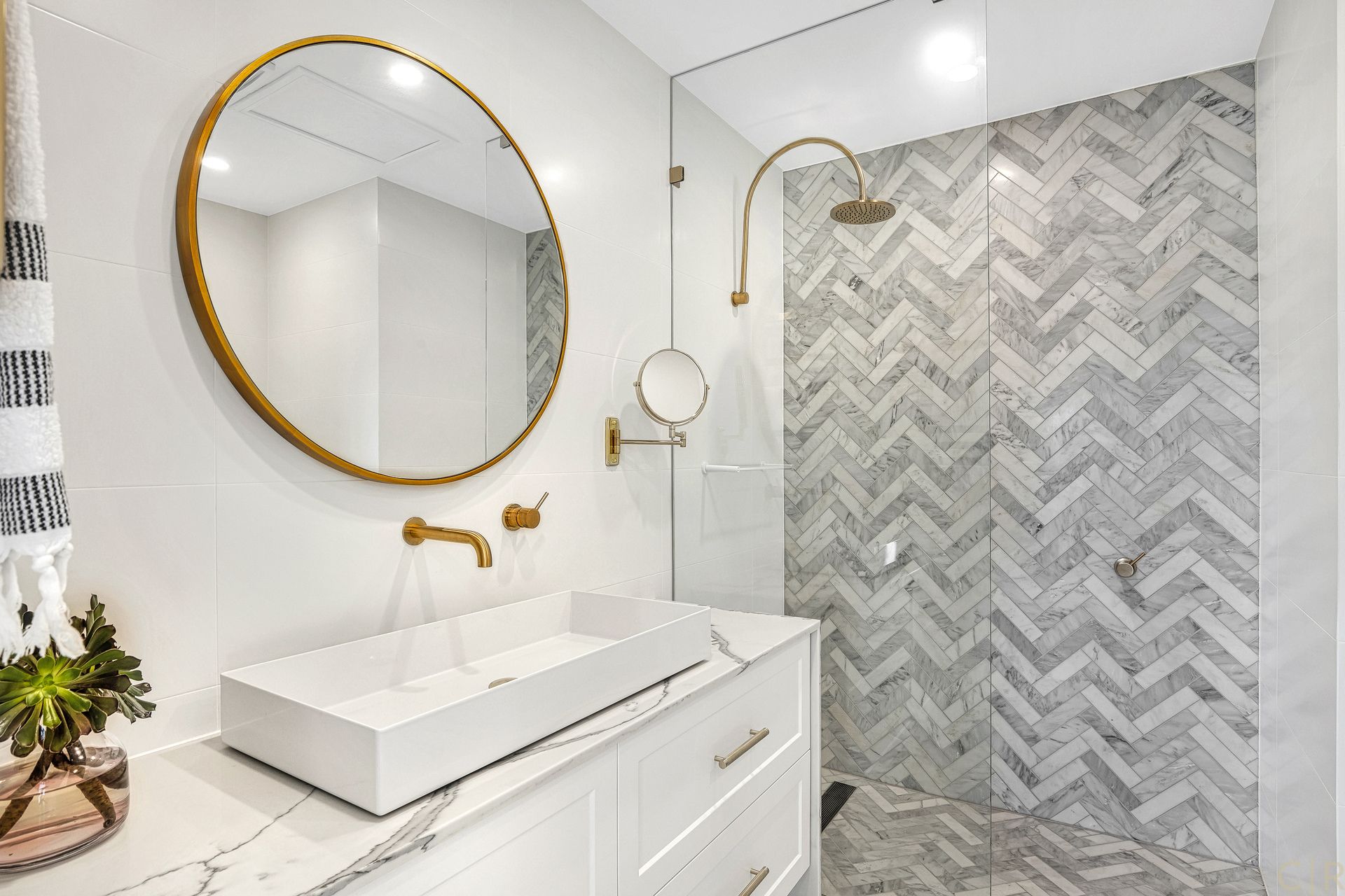 * High quality custom Carrara Marble kitchen and bathroom benchtops.