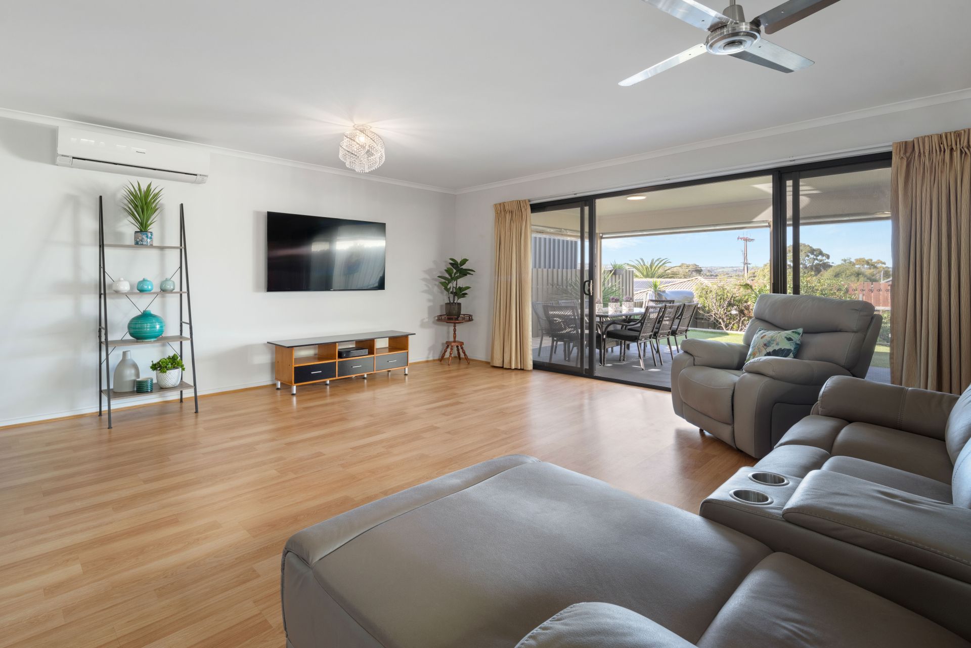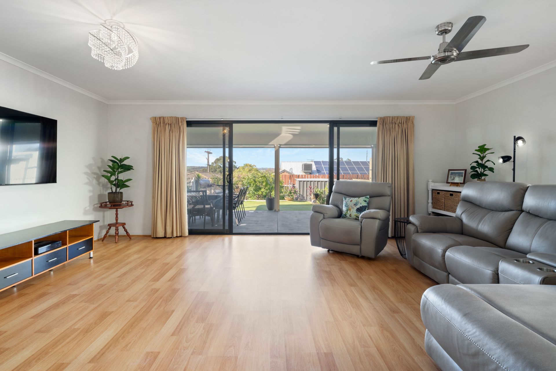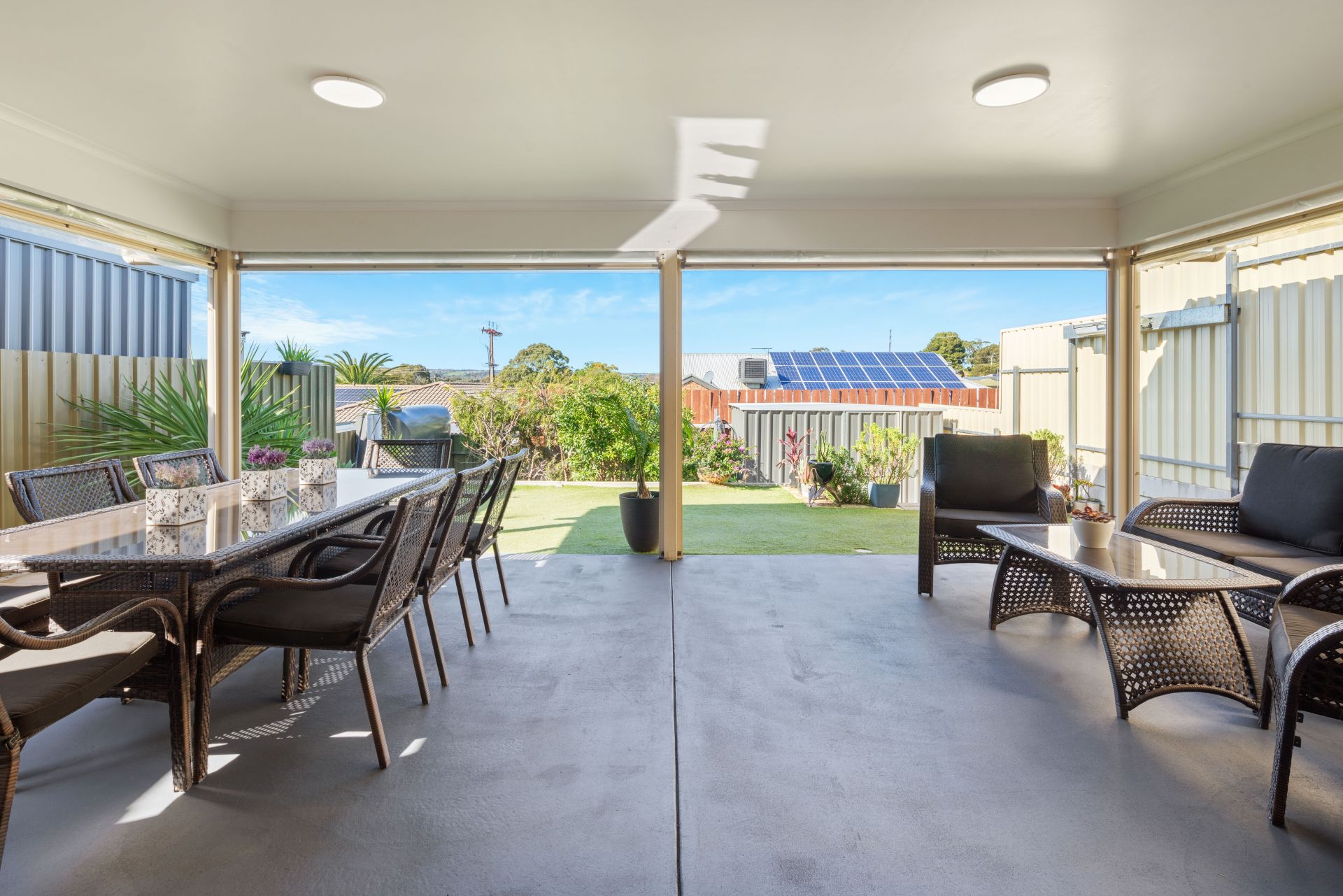 The three bedrooms are all set off the hallway for convenience including the master, overlooking the front yard through the lovely bay window it boasts a walk-in robe, a powder room and a split system air conditioner. All bedrooms have ceiling fans and are serviced by the central bathroom/laundry with a bath, shower and a separate toilet. Additional features include easy-care floating flooring throughout, a 4kW solar system, a large built-in storage cupboard in the dining area plus a ceiling fan in the living area.