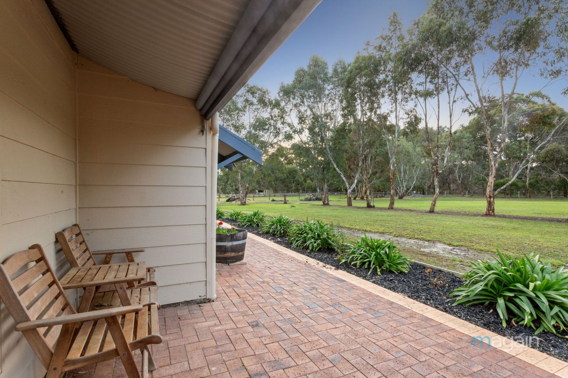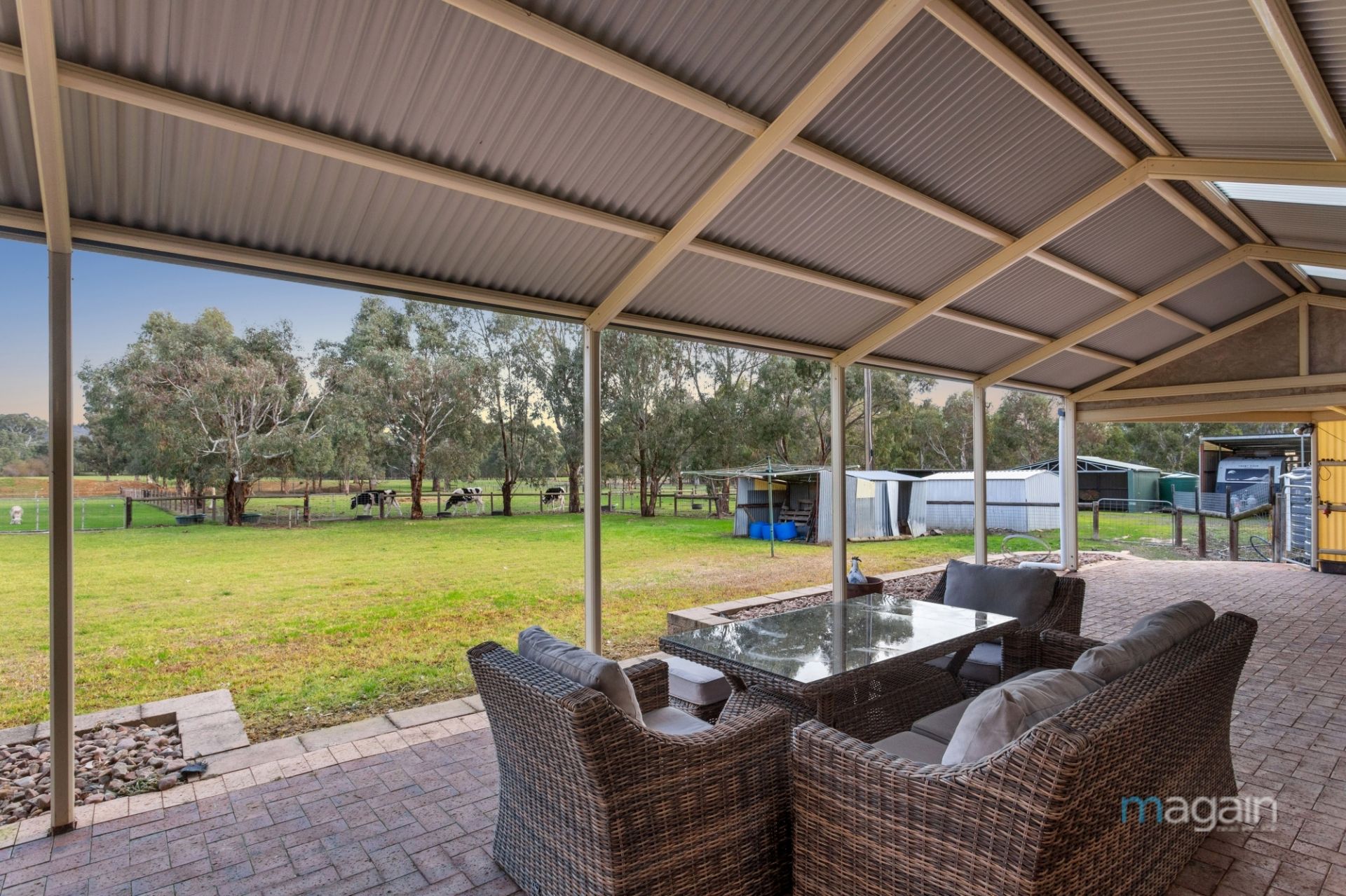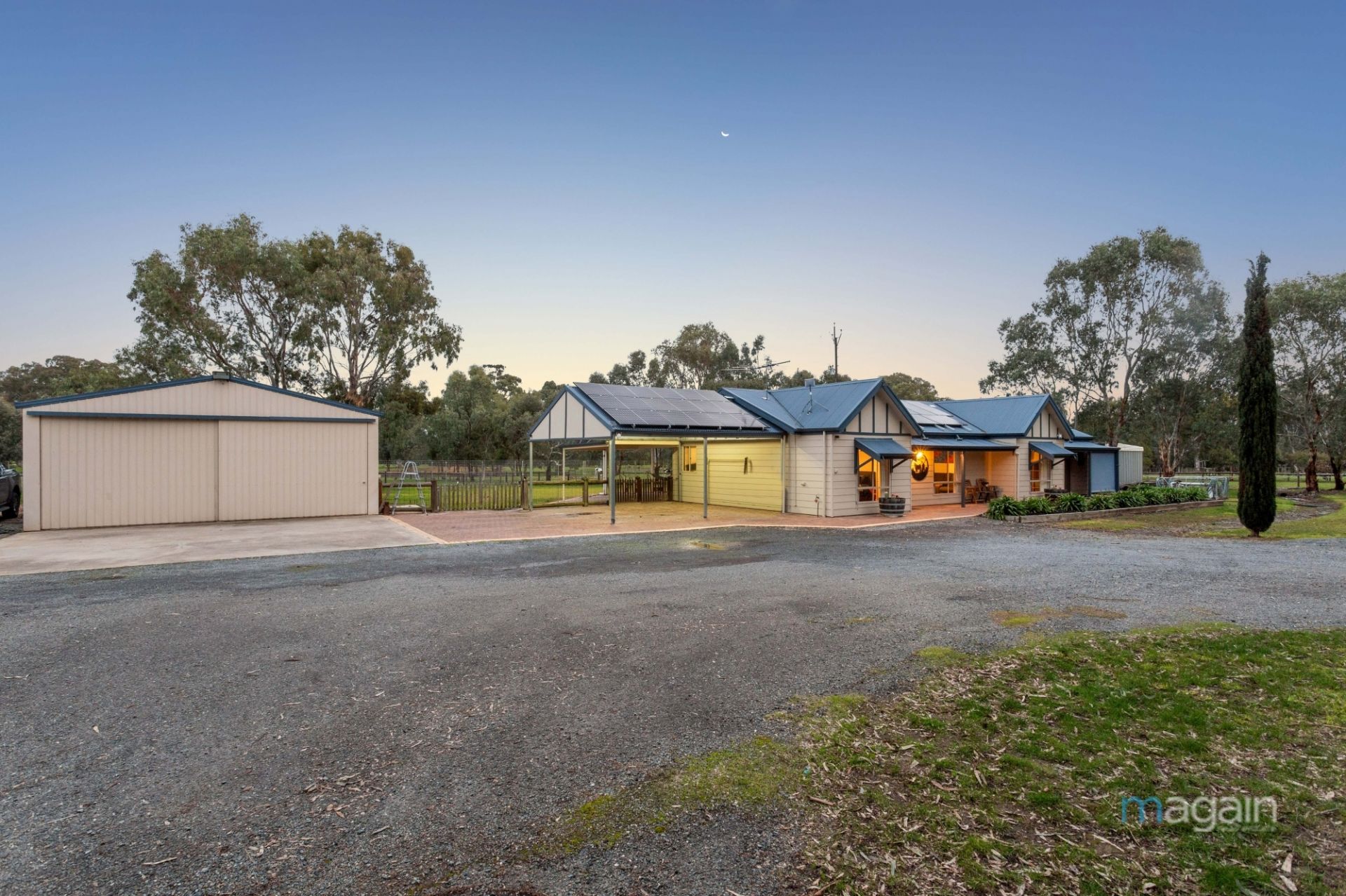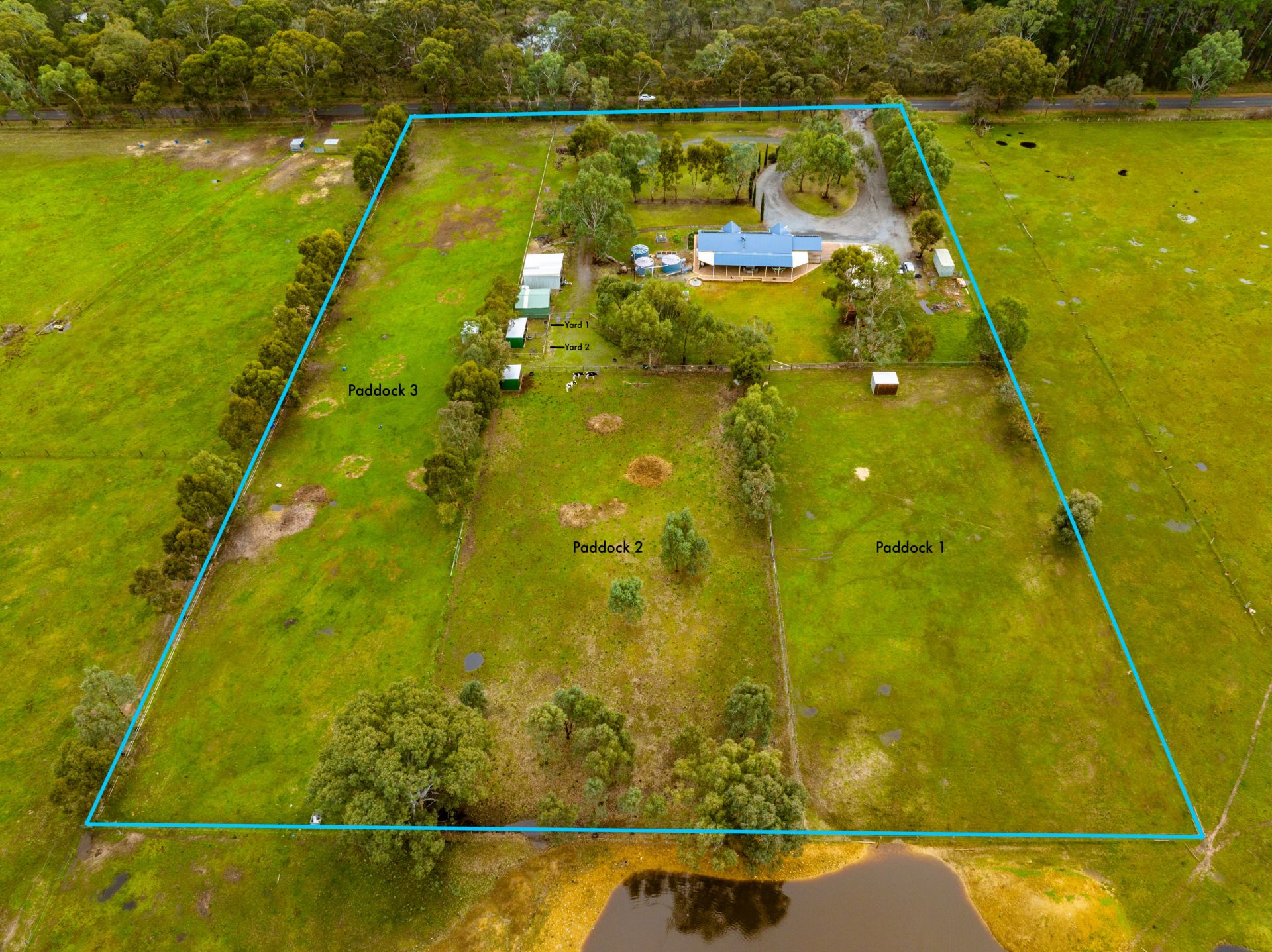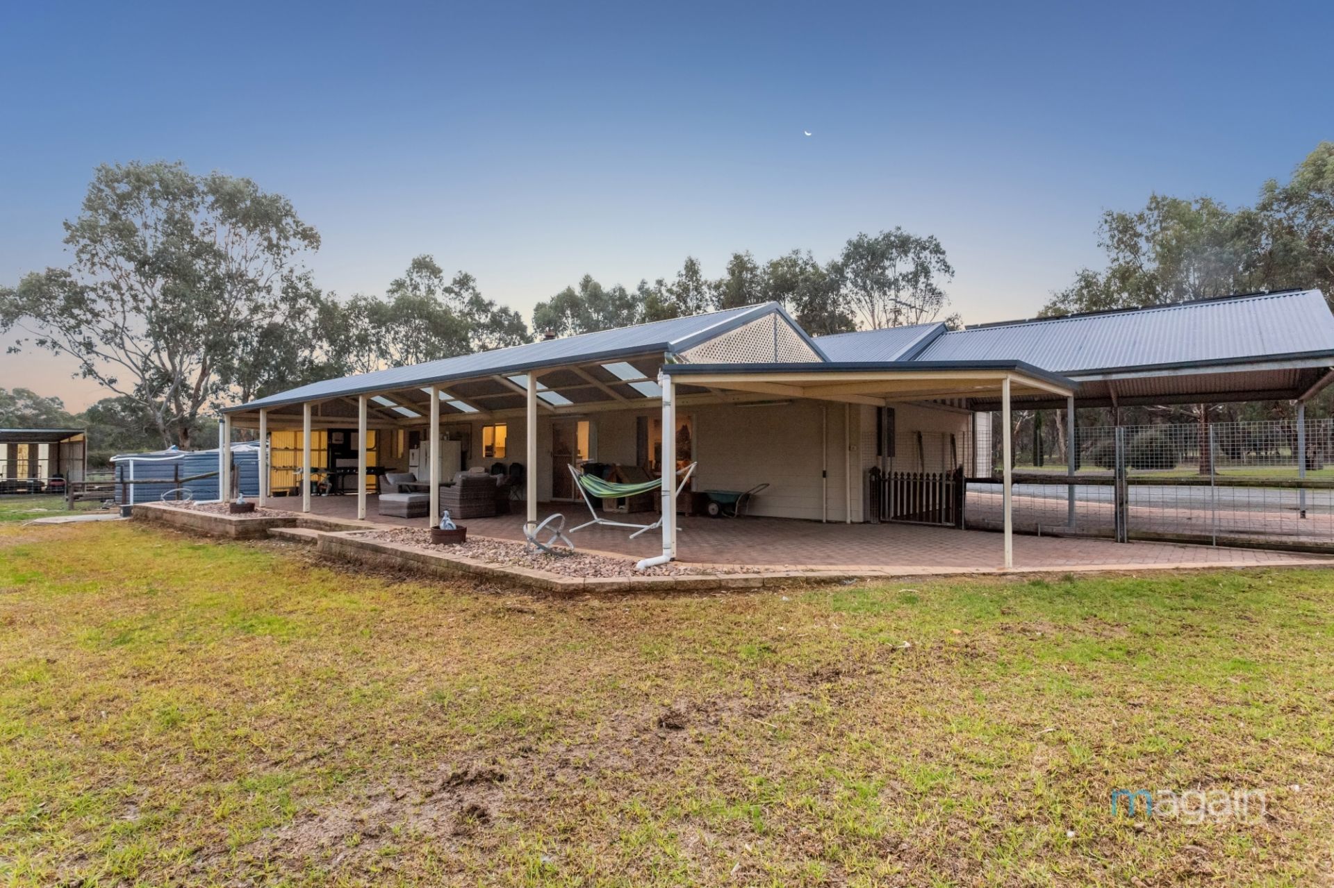 The exterior of the property is a haven of natural beauty, featuring beautifully landscaped gardens filled with plants and mature trees. The spacious outdoor entertainment areas, including a covered patio, are perfect for alfresco dining and entertaining guests. Multiple sheds and carports offer ample storage for all vehicles and workshop space. Each of the three larger paddocks, are equipped with shelters to ensure that the animals have ample protection from the elements. In addition to the larger paddocks, the two smaller yards are also complete with shelters.