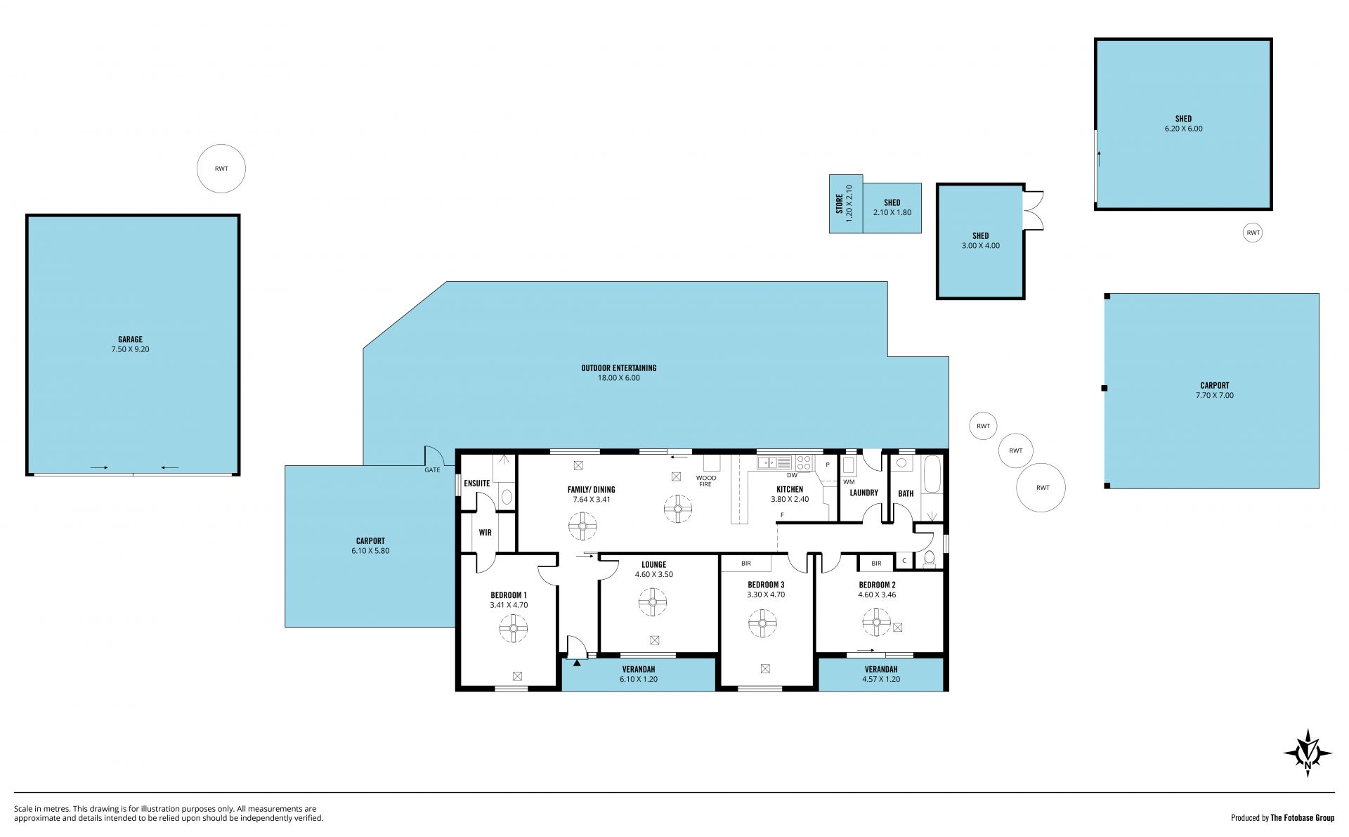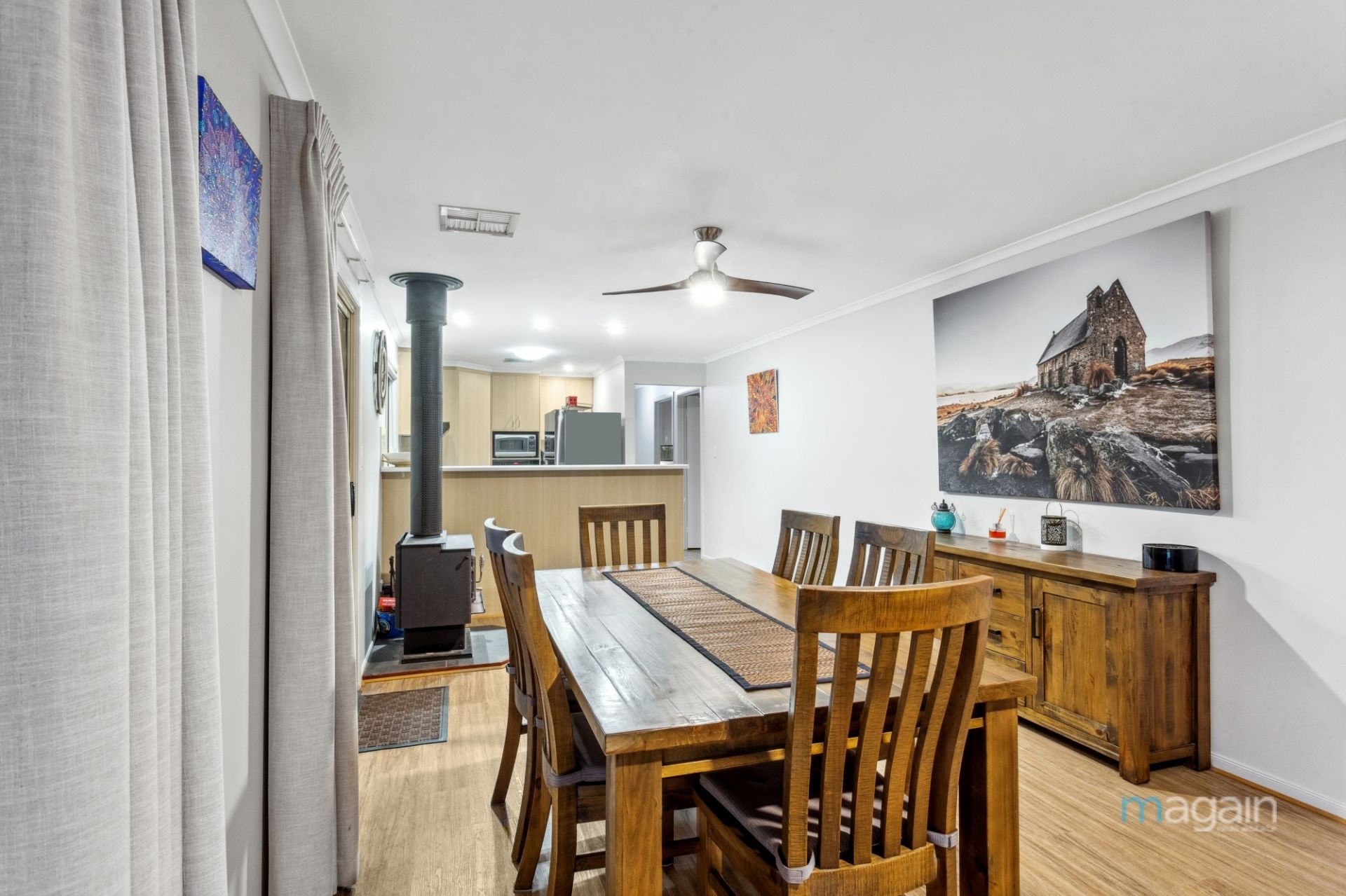 The home offers three generously sized bedrooms, the main bedroom complete with walk in robe and ensuite bathroom for your own privacy, bedrooms two and three complete with built-in wardrobes providing ample storage space, while well-appointed main bathroom and separate toilet offer conveniency. Reverse cycle air conditioning throughout and a cozy wood heater provide year-round comfort.