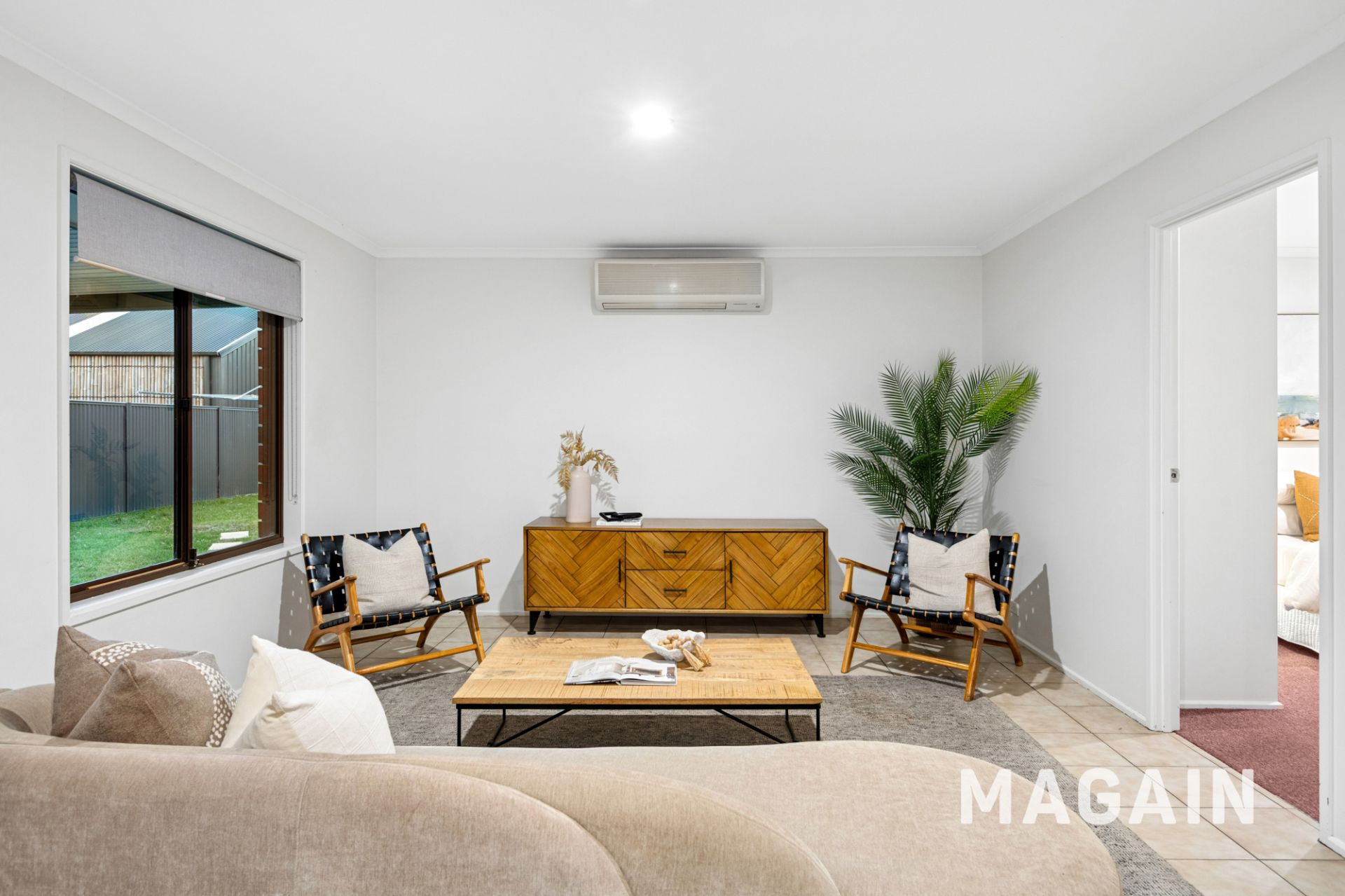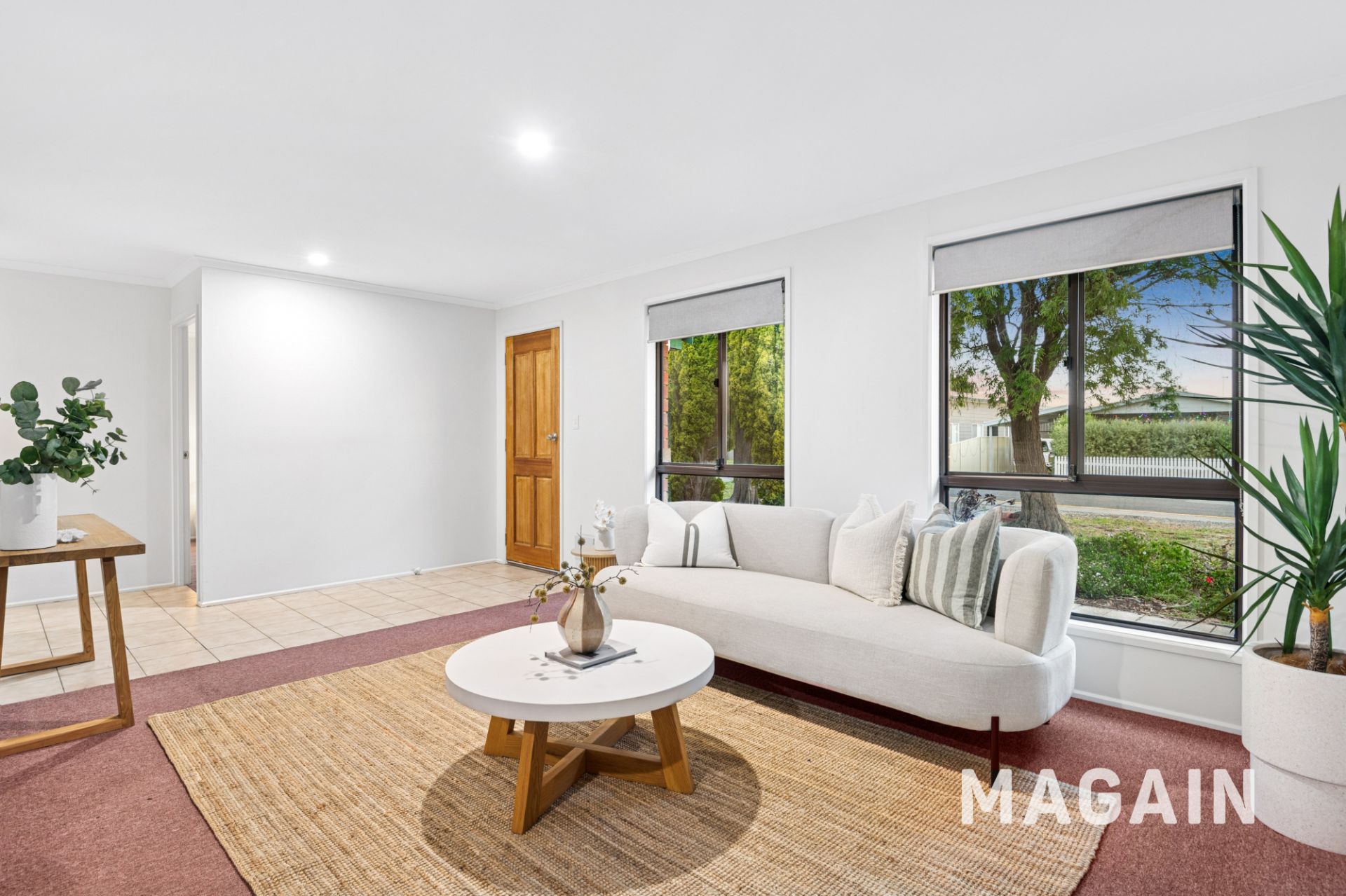 Step inside to a tiled entry foyer that opens into the comfortable, carpeted L-shaped lounge and dining area. The main bedroom sits at the front of the home and features a built-in robe along with ensuite-style access to the thoughtfully designed two-way bathroom.