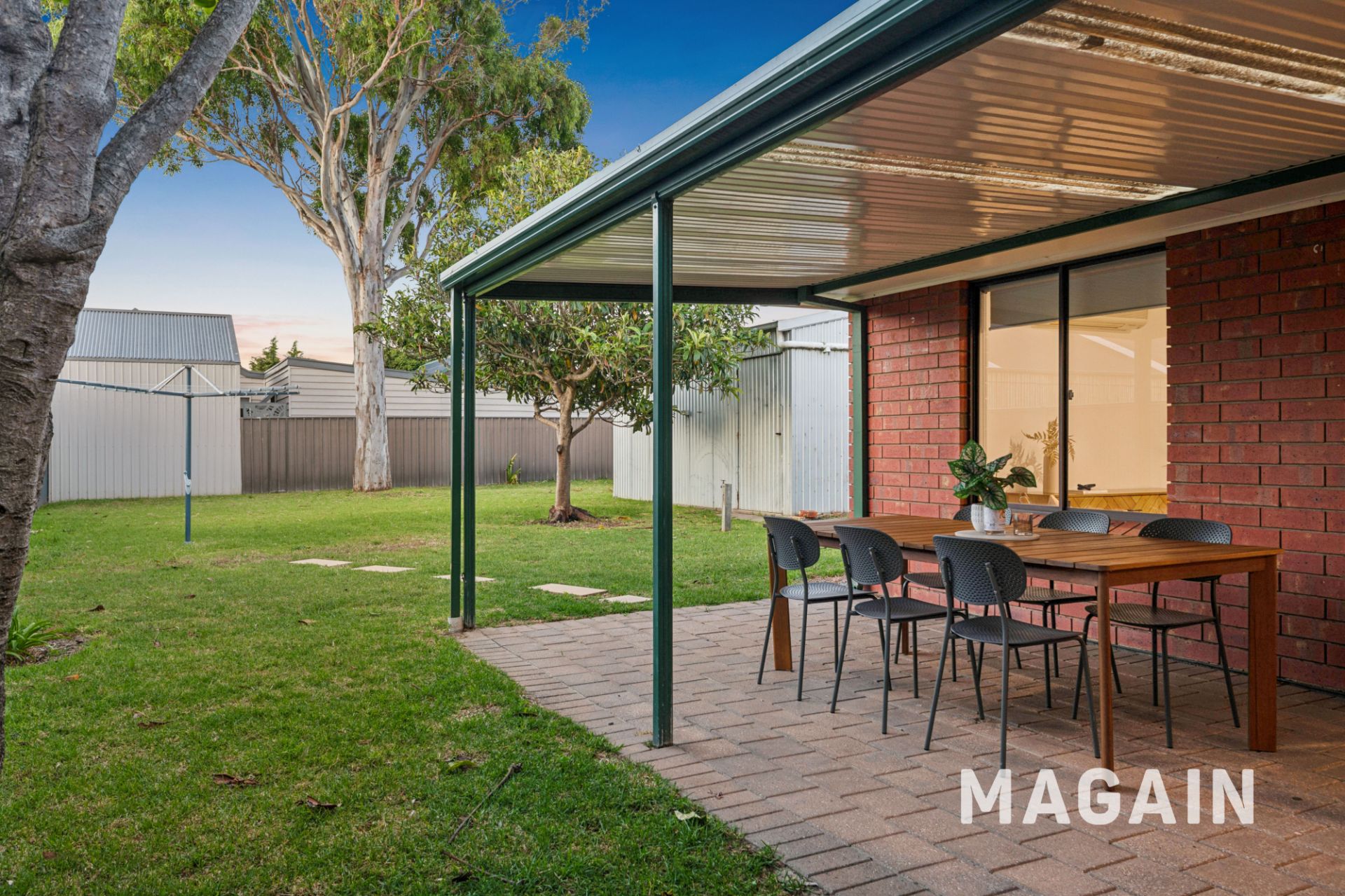 the secure carport with roller door and rear access for added convenience.