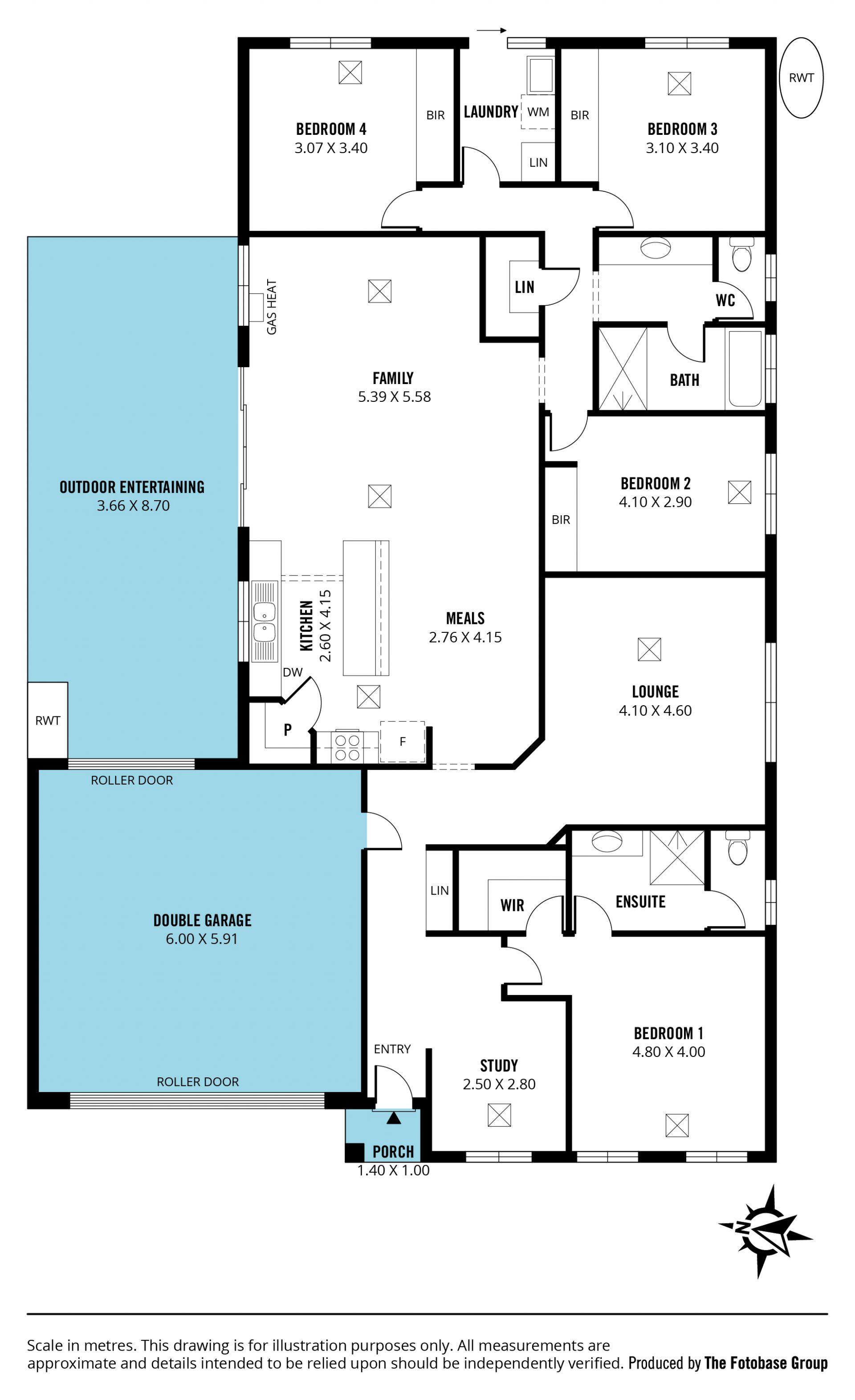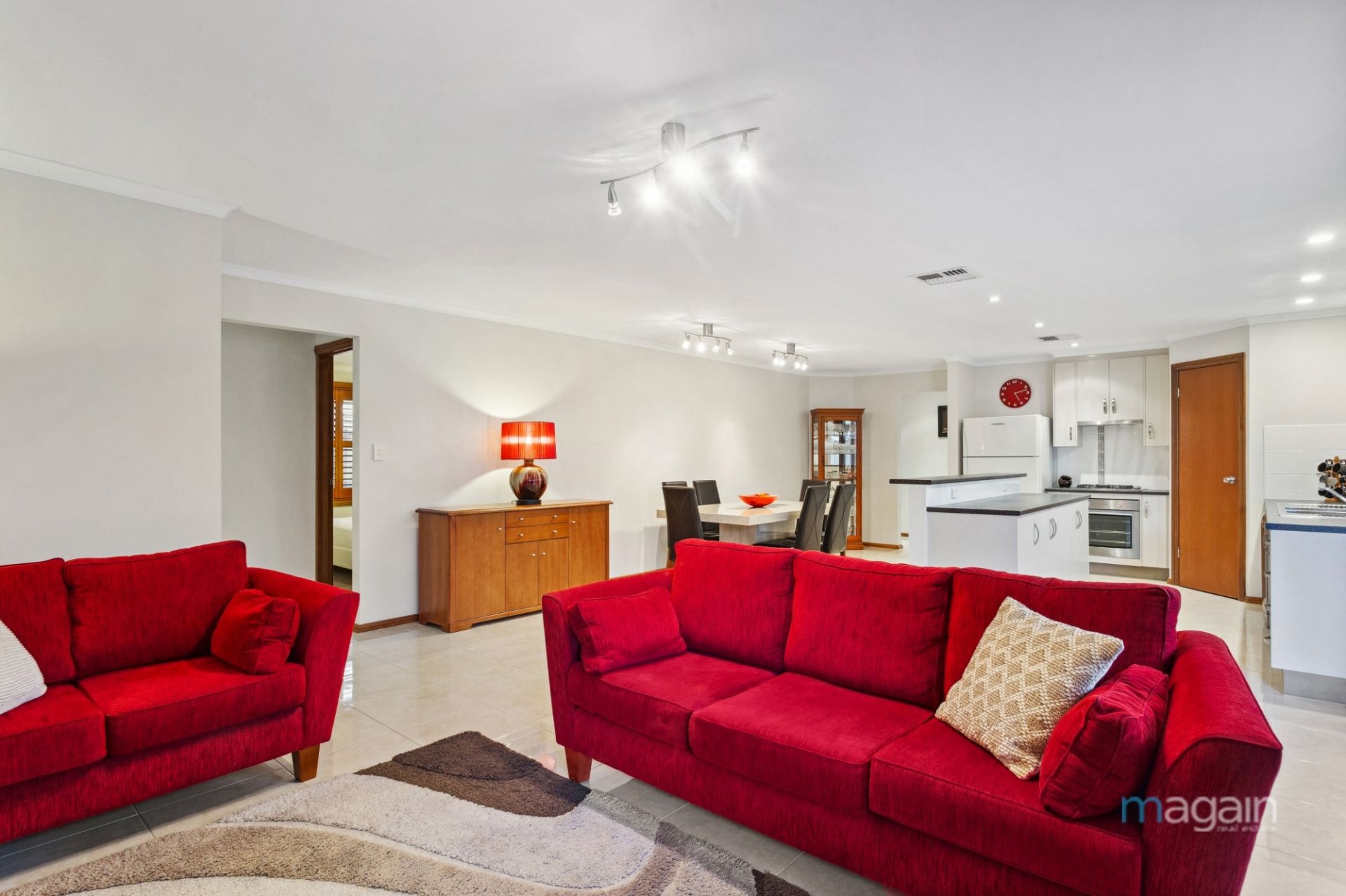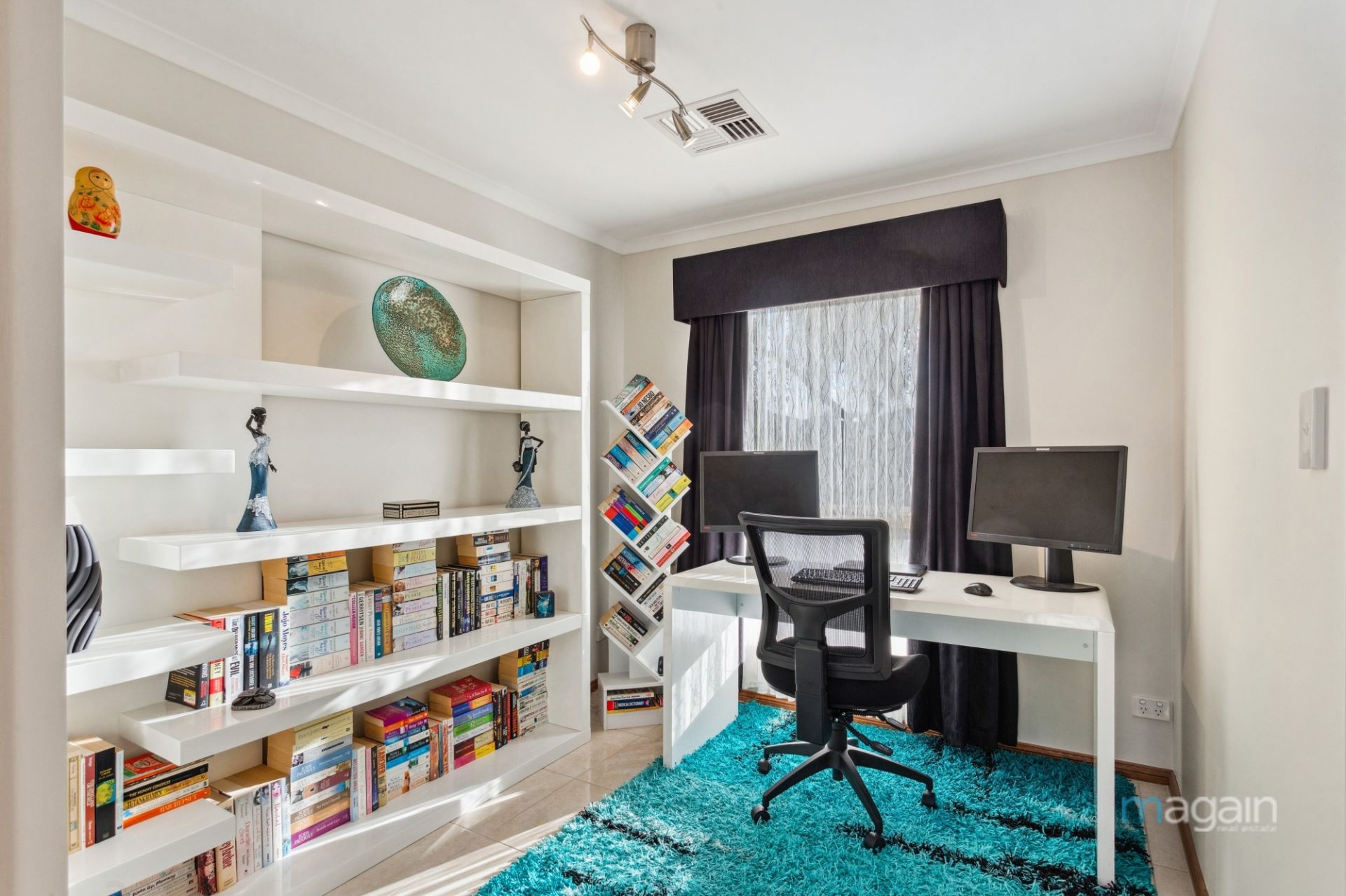 Inside, the home boasts a welcoming, long hallway that leads to the spacious main bedroom situated at the front. This main bedroom is complete with a generously sized en-suite bathroom and a walk-in wardrobe, offering both comfort and privacy. To the right of the entrance, you'll find a cosy study nook and a sizable separate lounge room-perfect for use as a second living area, theatre room, playroom, or games room, depending on your family's needs. Bedrooms 2, 3, and 4 are all generously proportioned, each featuring built-in wardrobes for ample storage. The tidy main bathroom, accompanied by an adjacent separate toilet, conveniently serves these three bedrooms.